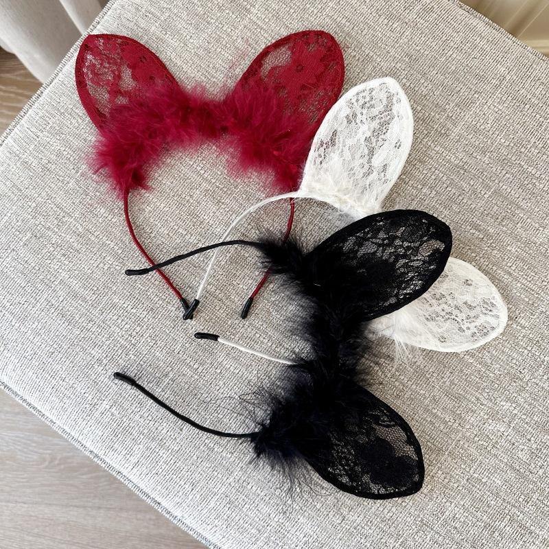 Diadema con orejas de gato de encaje para mujer, accesorio para el cabello con orejas de conejo, ideal para maquillaje, 4099