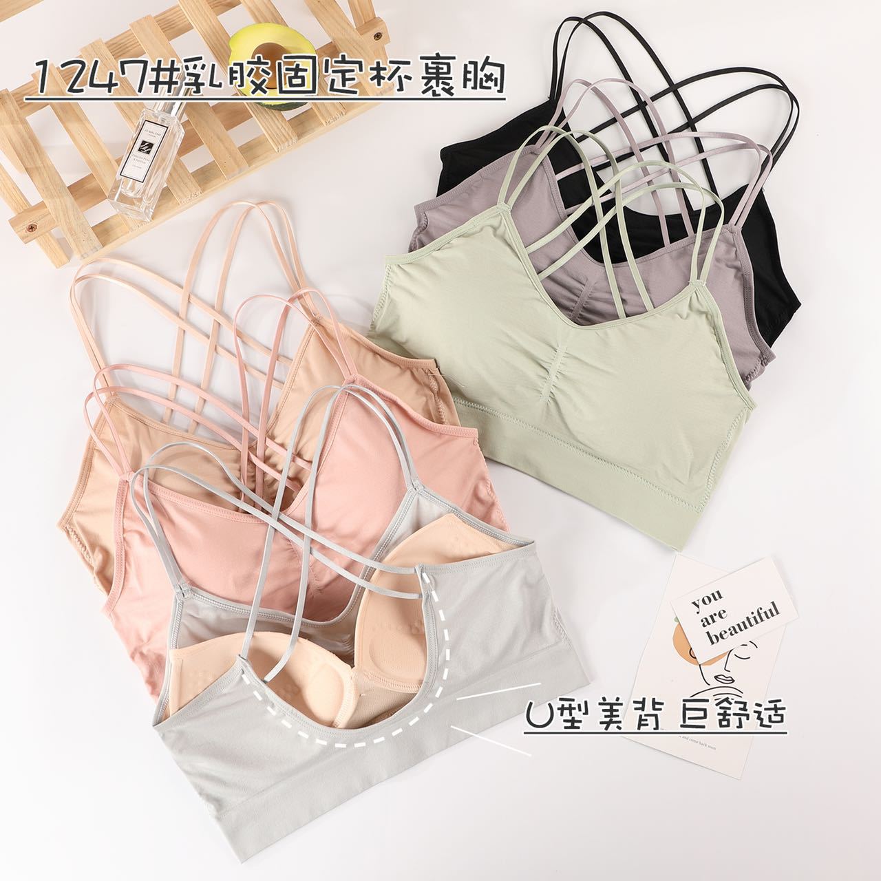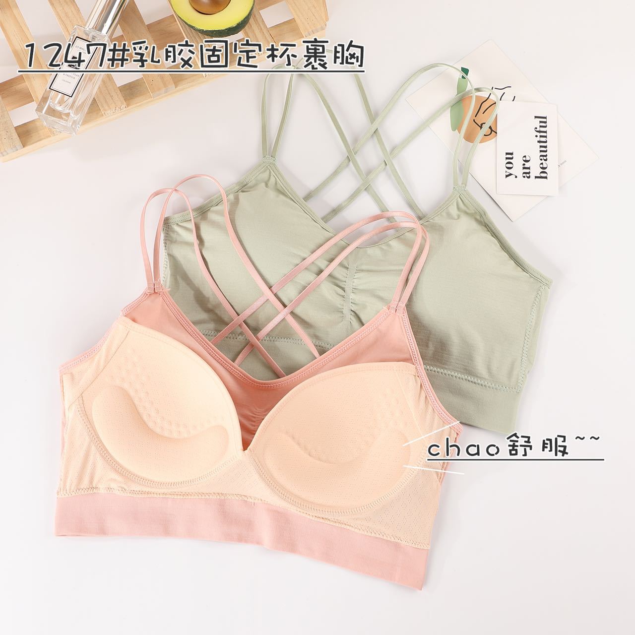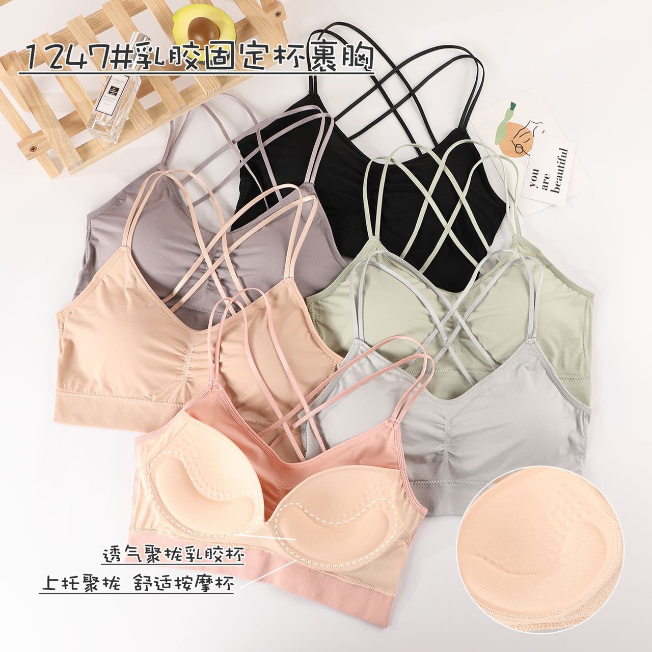 Nueva ropa interior con copa fija cruzada y envuelta en el pecho para mujer, sin aro de acero, espalda en forma de U, top de tubo fruncido sin costuras, venta al por mayor