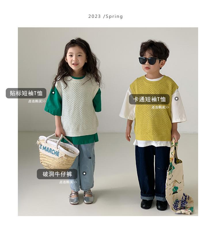 Chaleco para niños, primavera 2023, nuevo chaleco de punto para niñas, chaleco de lana para niños, suéter hueco
