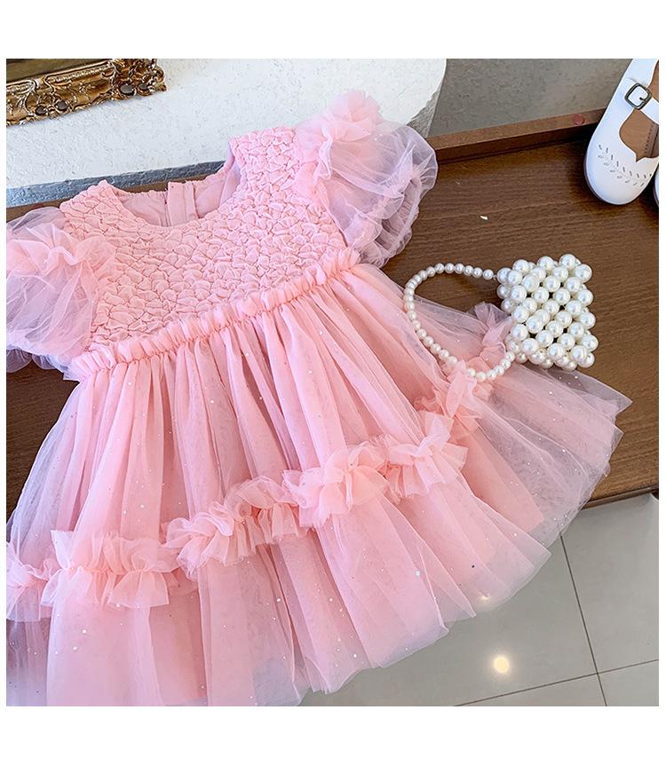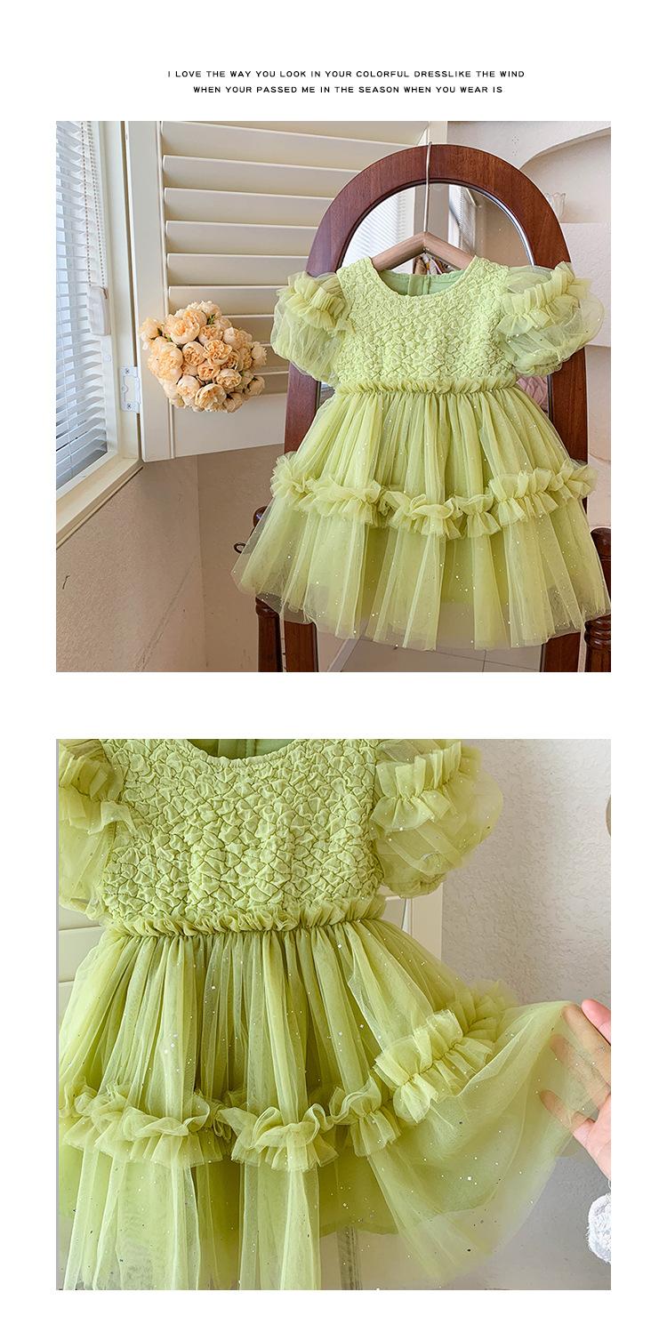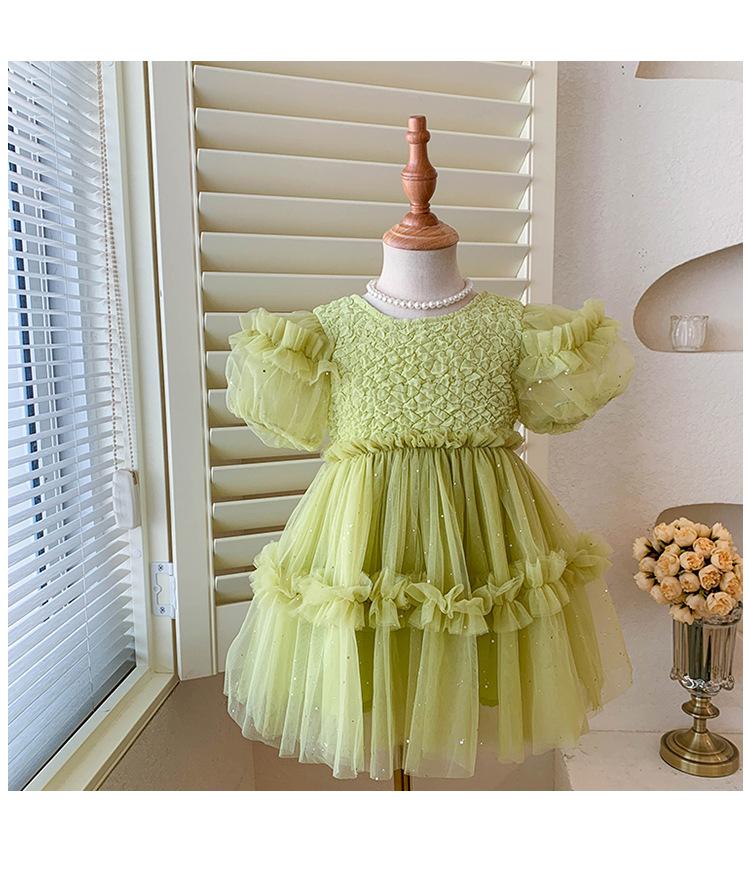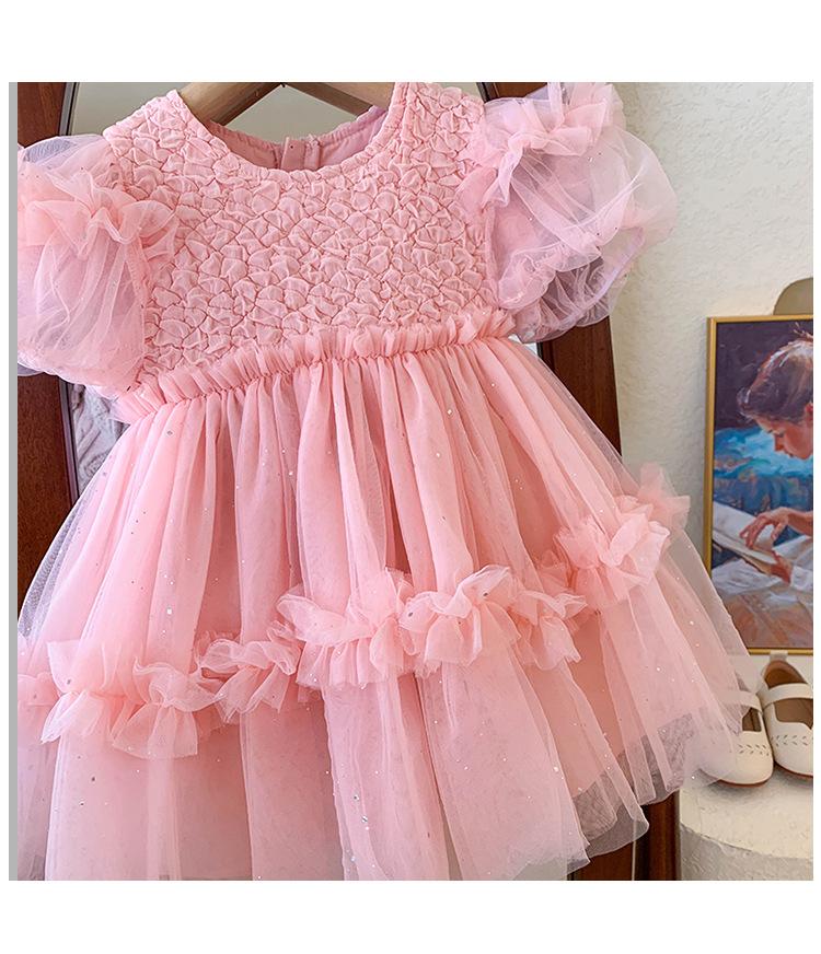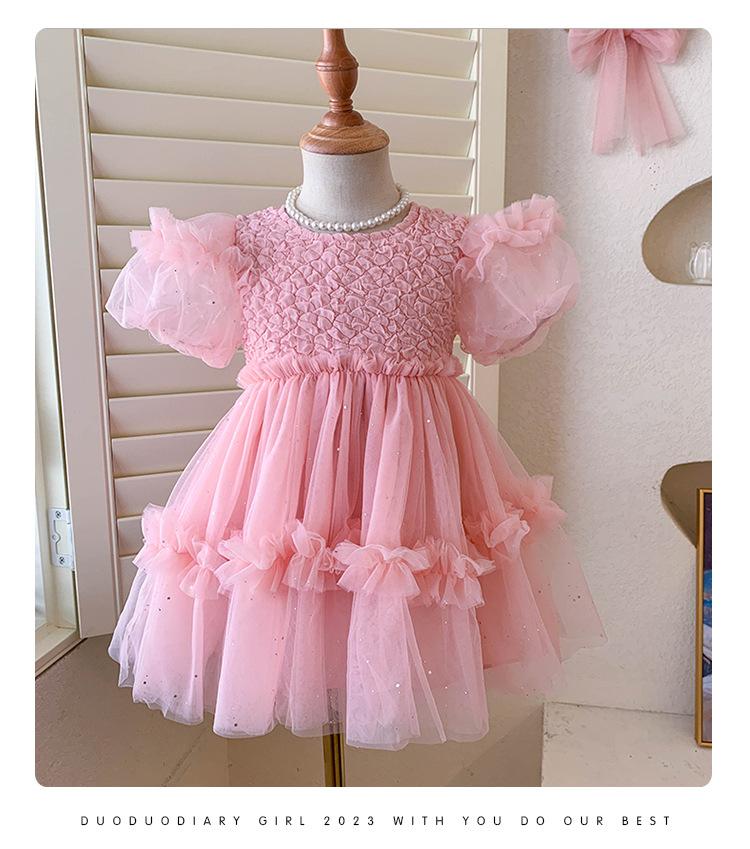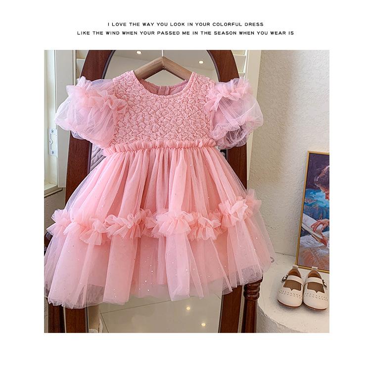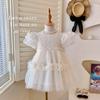 Vestido Infantil Estilo Coreano para Niñas Manga Abullonada Falda de Malla Abullonada Verano 2025 Nuevo Estilo Dulce Vestido de Princesa para Bebé