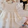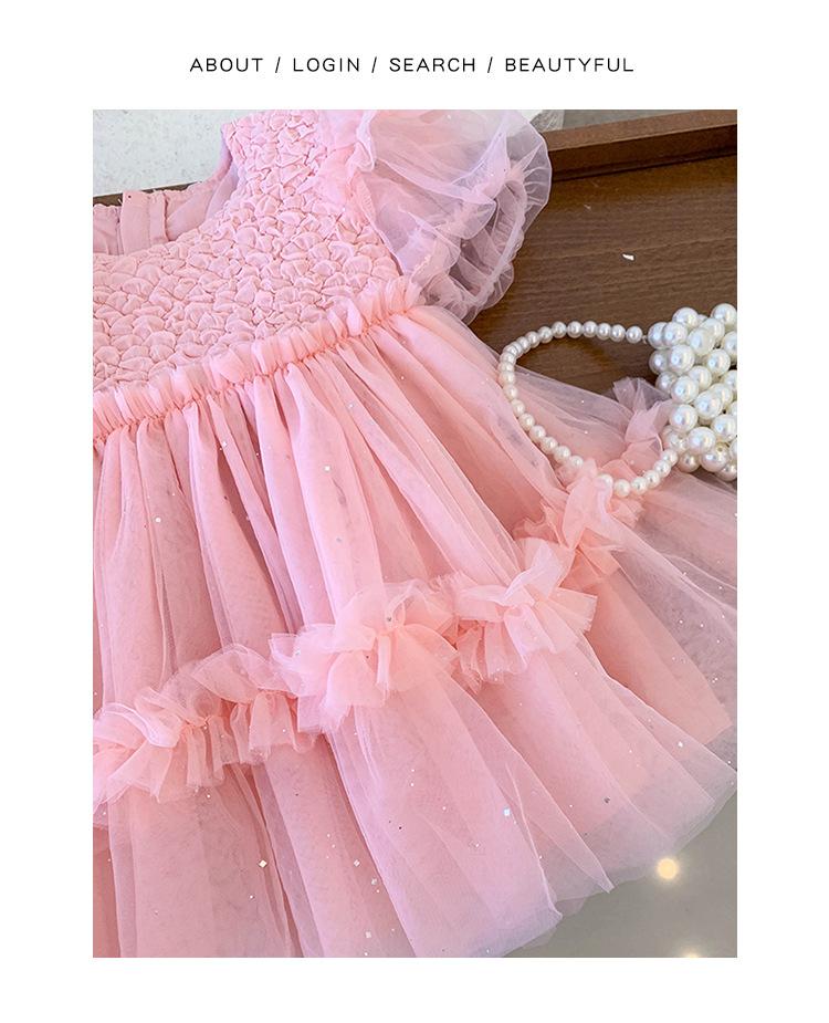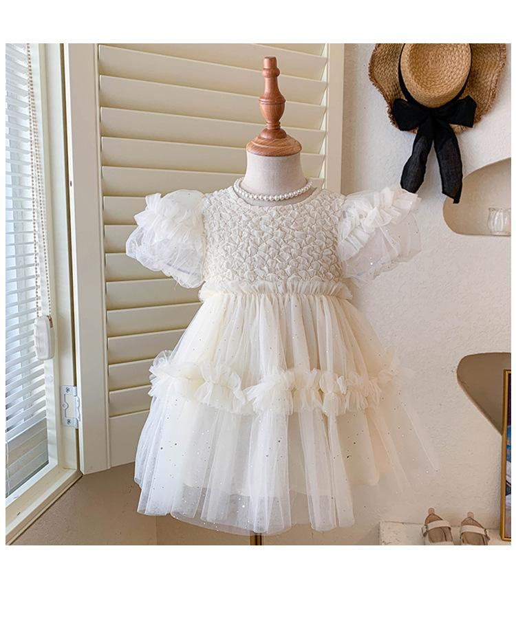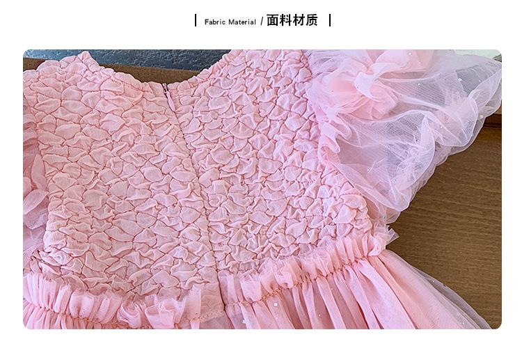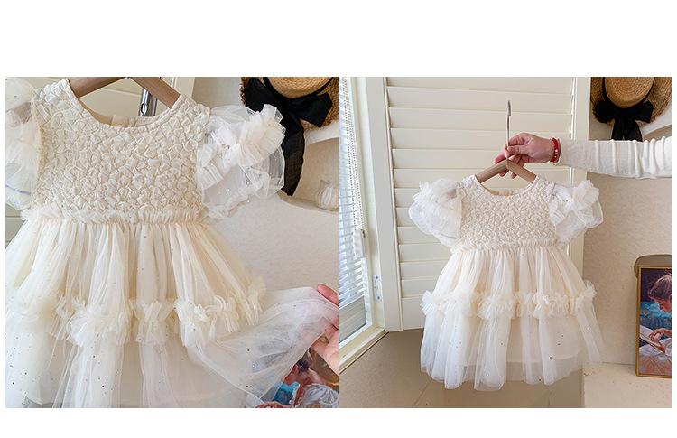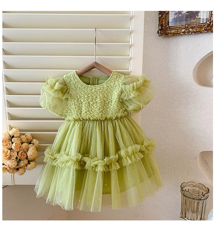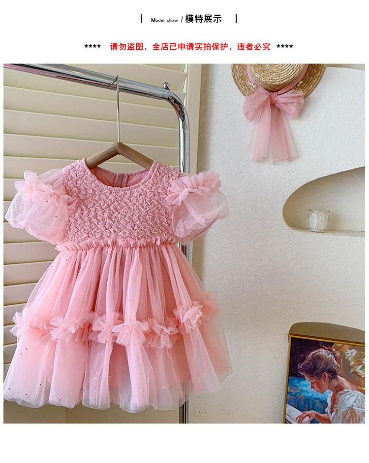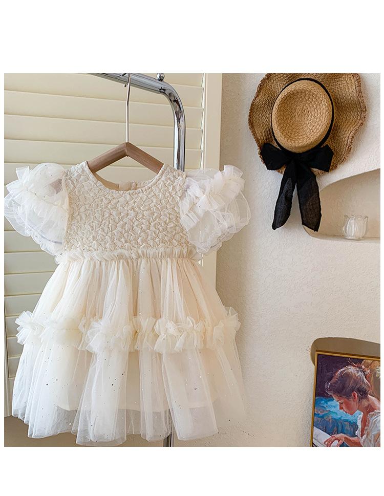 Vestido Infantil Estilo Coreano para Niñas Manga Abullonada Falda de Malla Abullonada Verano 2025 Nuevo Estilo Dulce Vestido de Princesa para Bebé