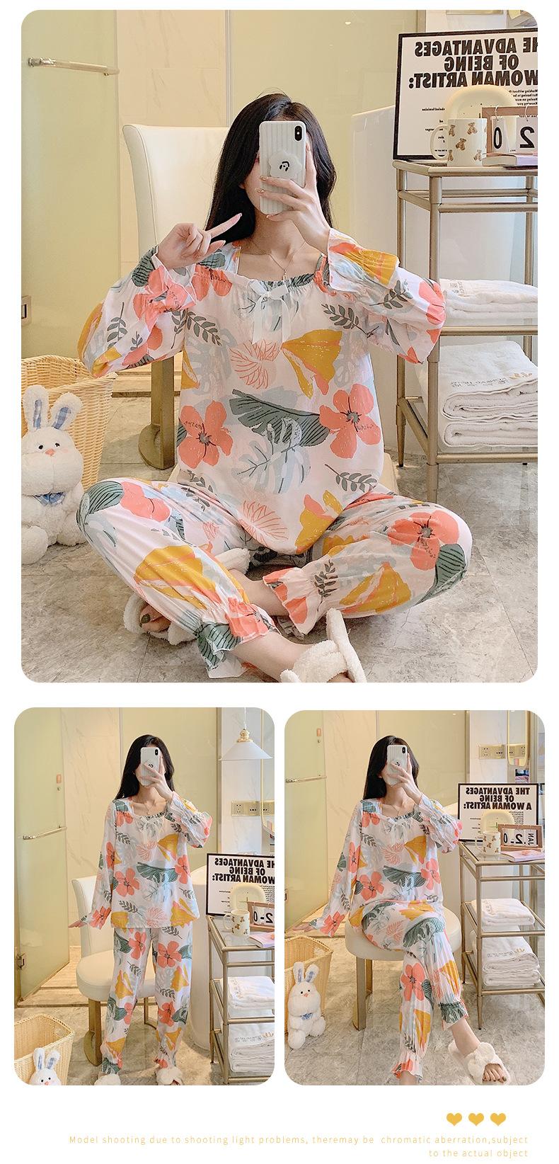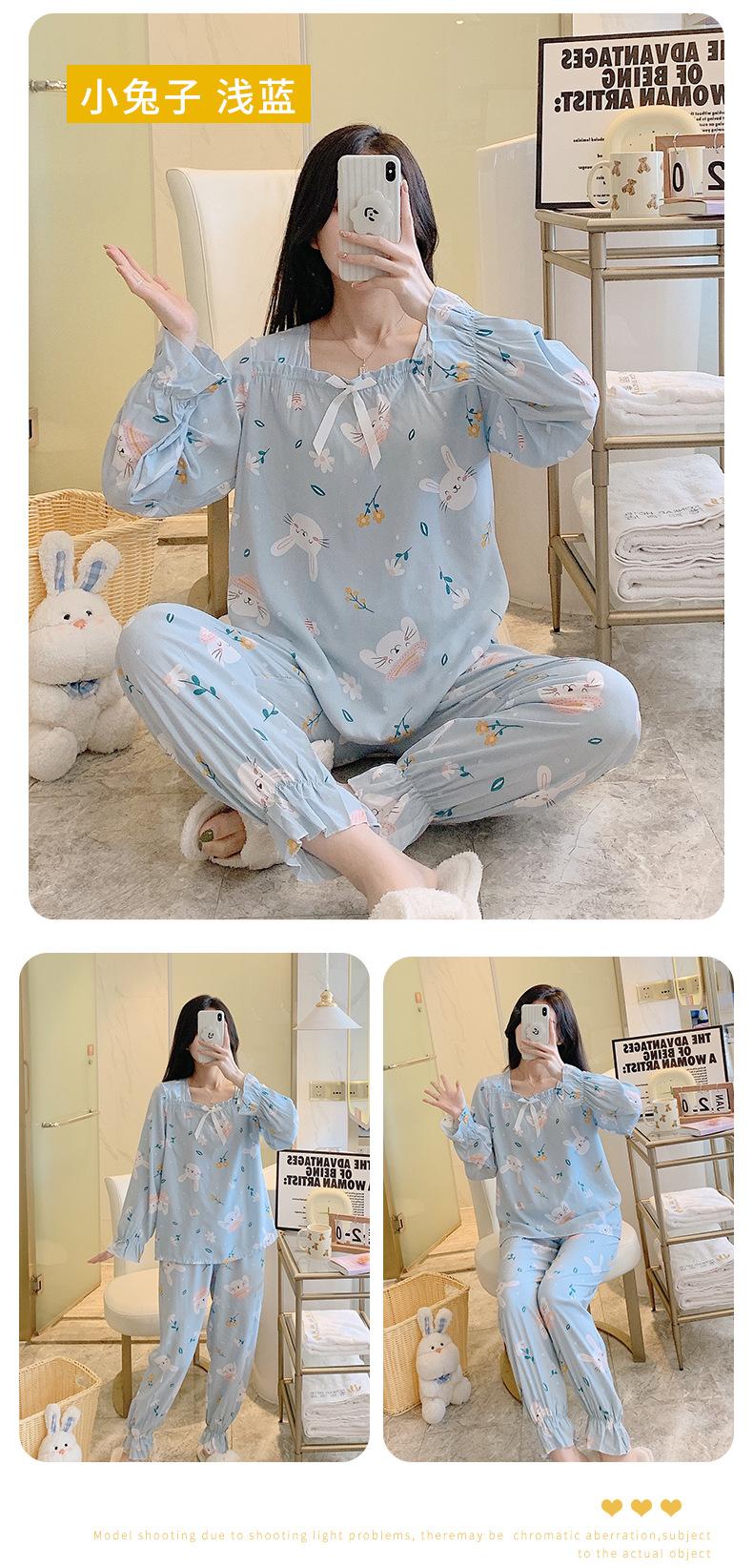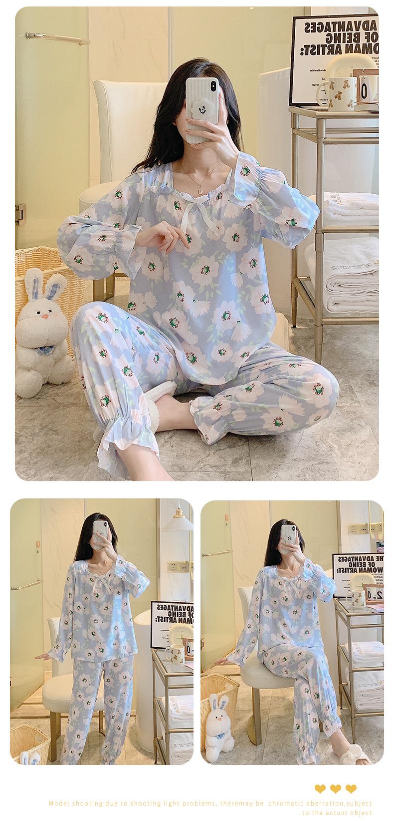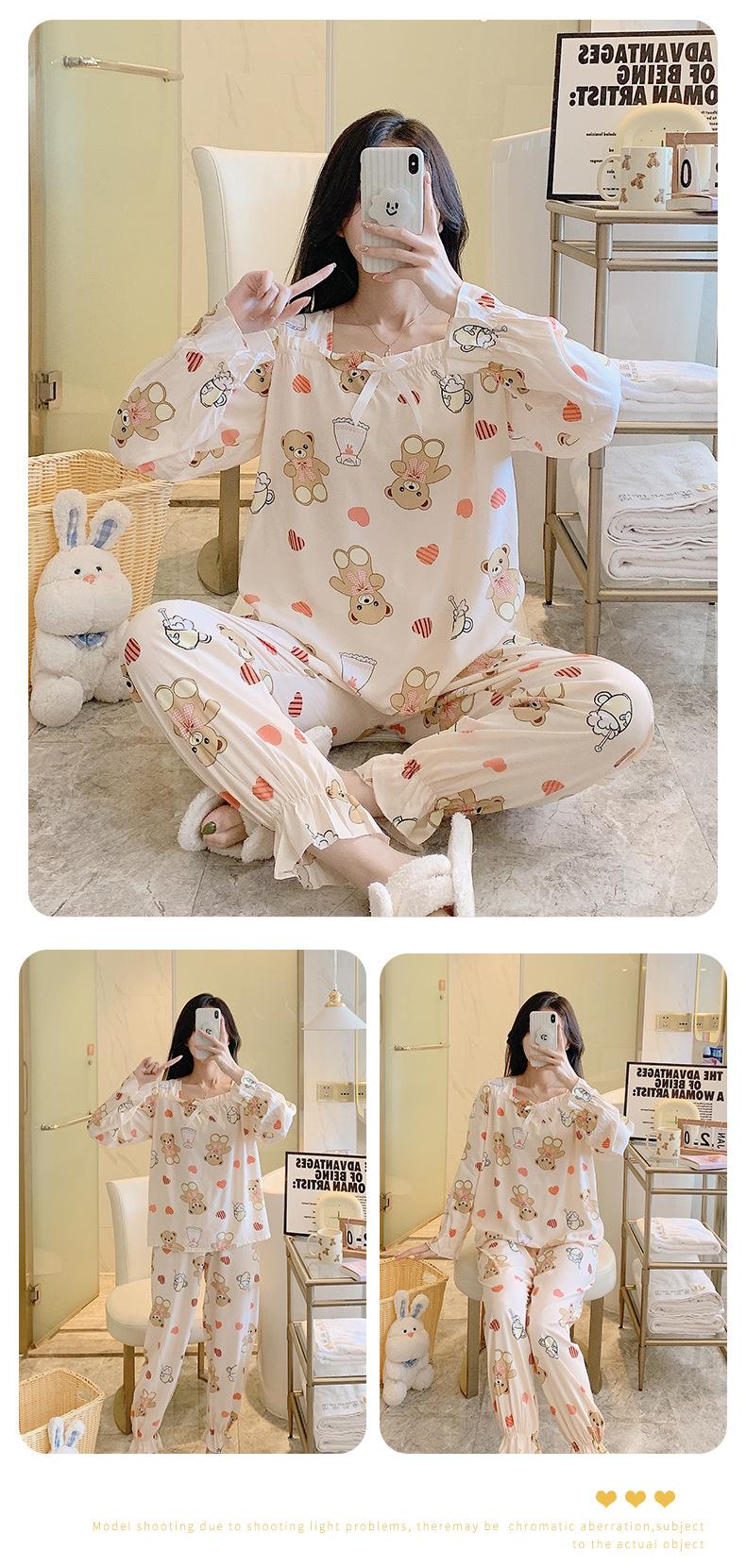 Pijama de Algodón Seda para Día de Primavera y Otoño para Mujer de Manga Larga Delgada Algodón Seda Traje Estilo Coreano Algodón Artificial Suelto Ropa para el Hogar Talla Grande