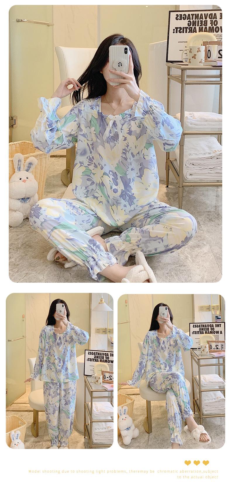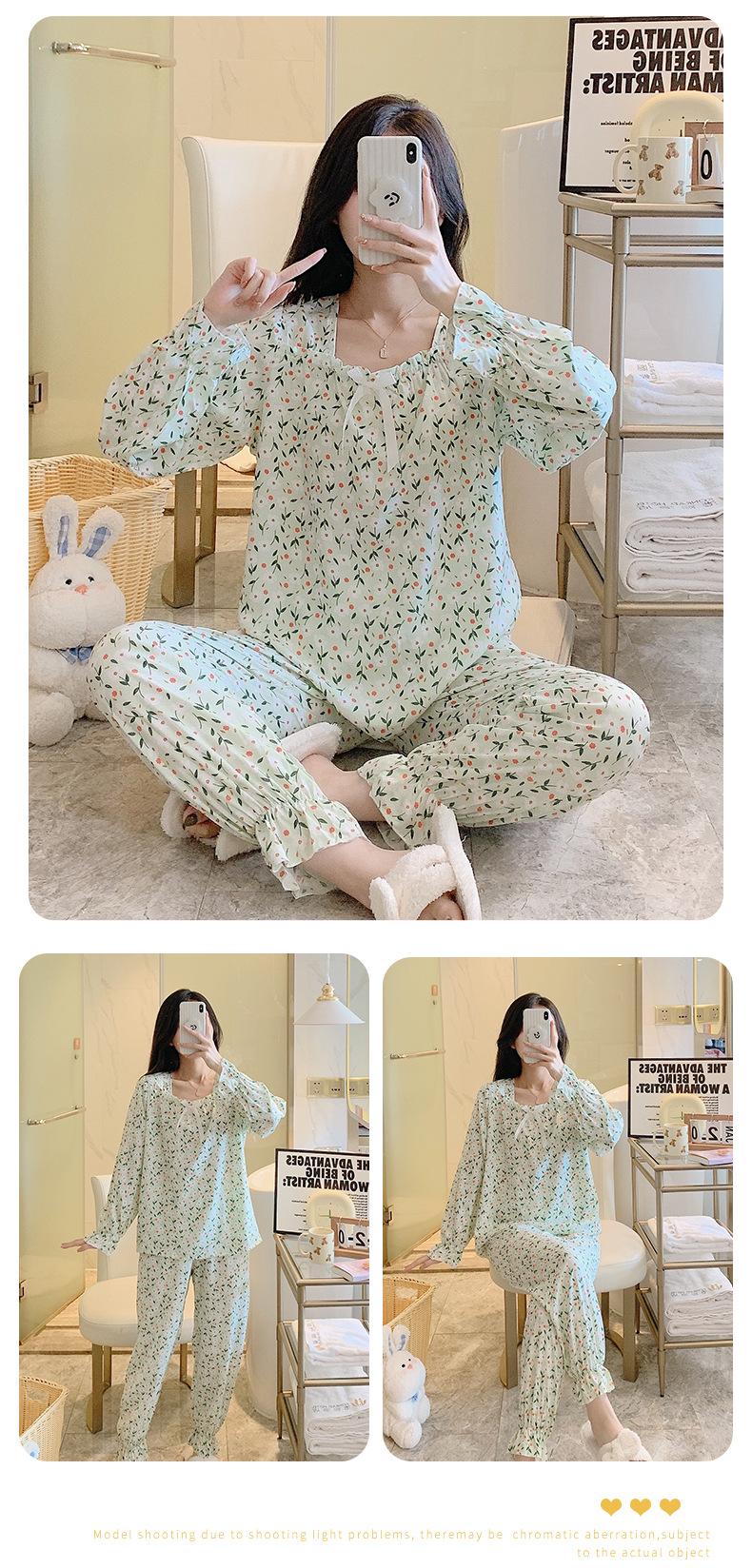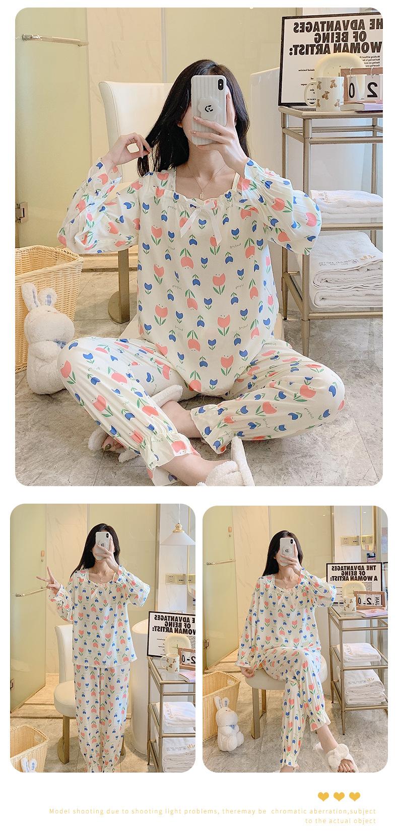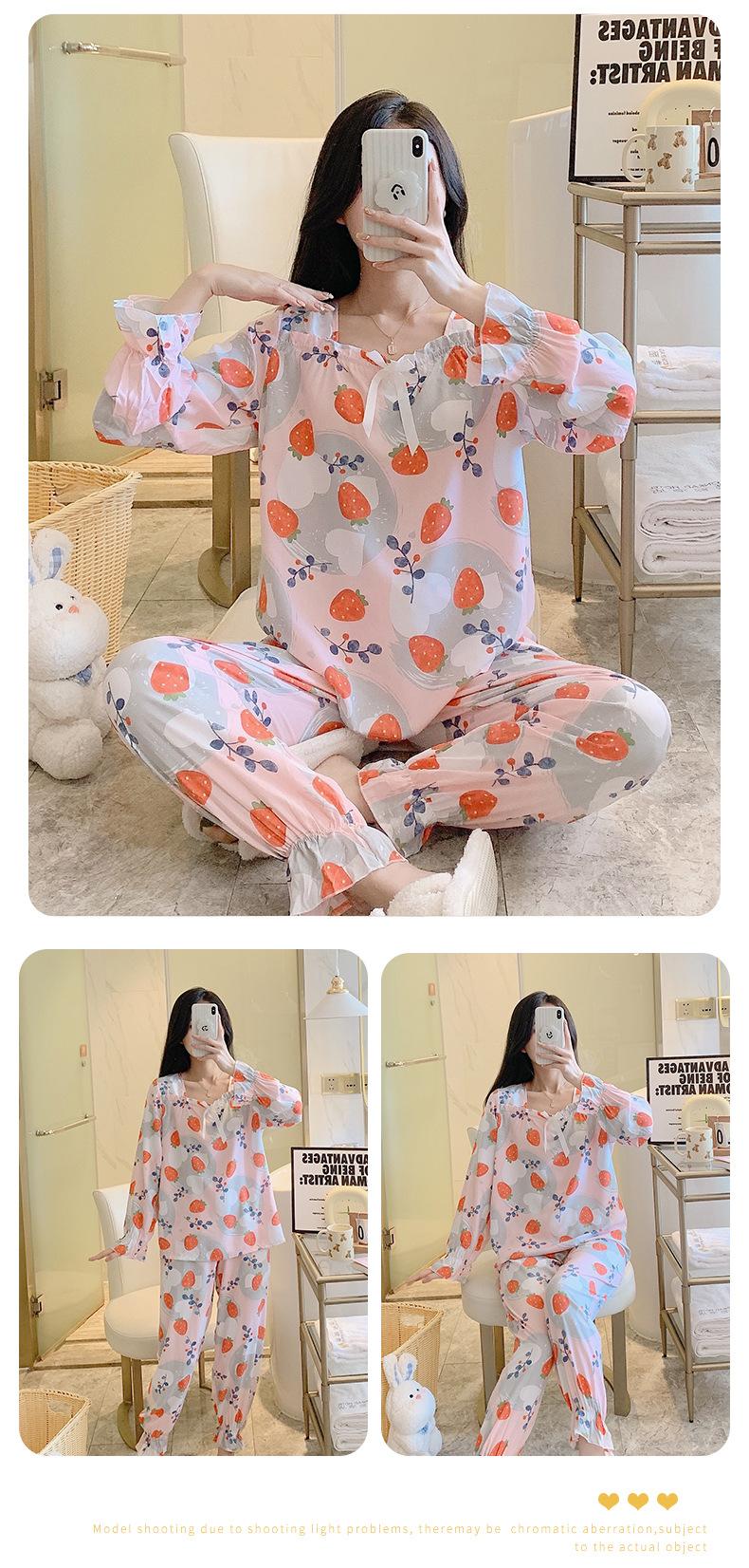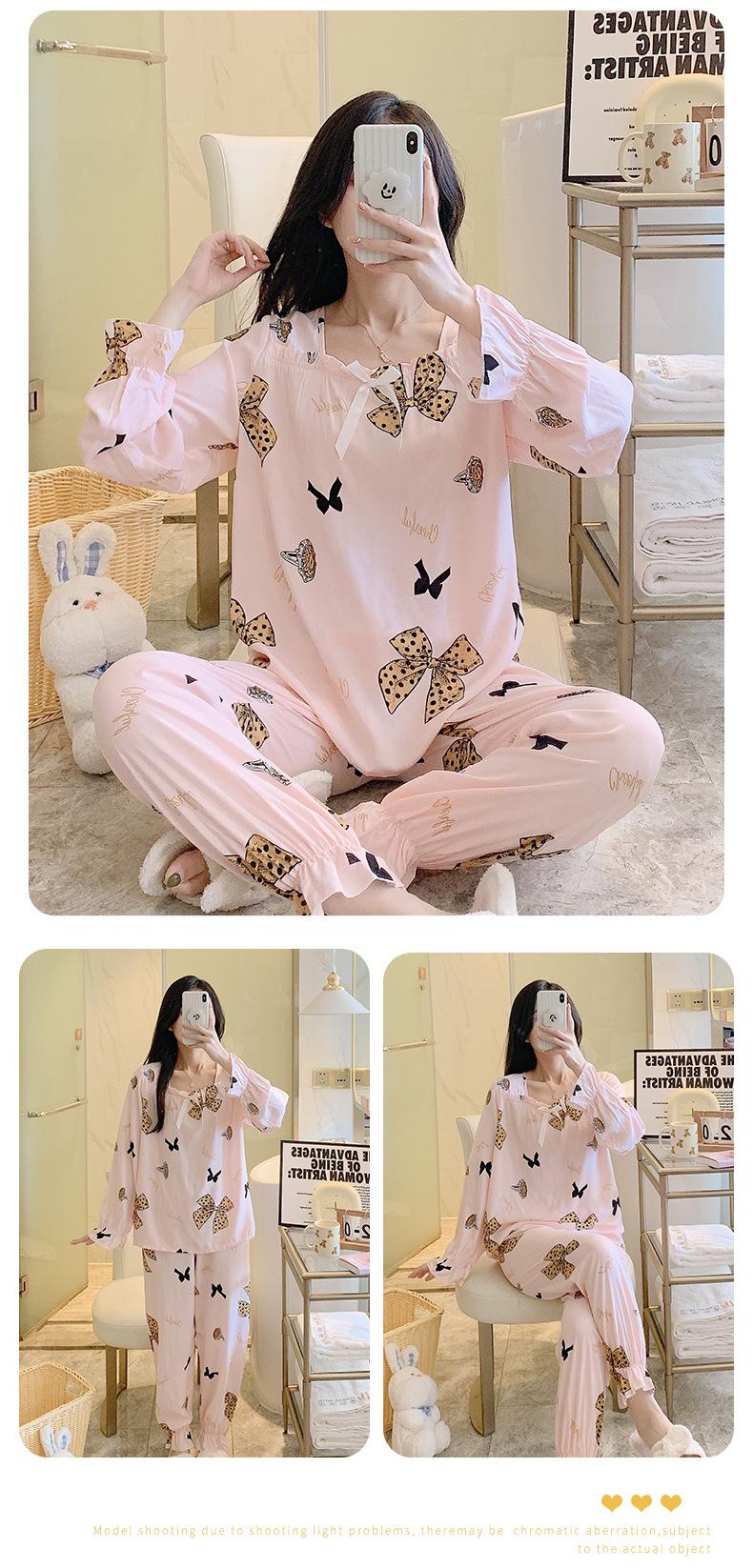 Pijama de Algodón Seda para Día de Primavera y Otoño para Mujer de Manga Larga Delgada Algodón Seda Traje Estilo Coreano Algodón Artificial Suelto Ropa para el Hogar Talla Grande
