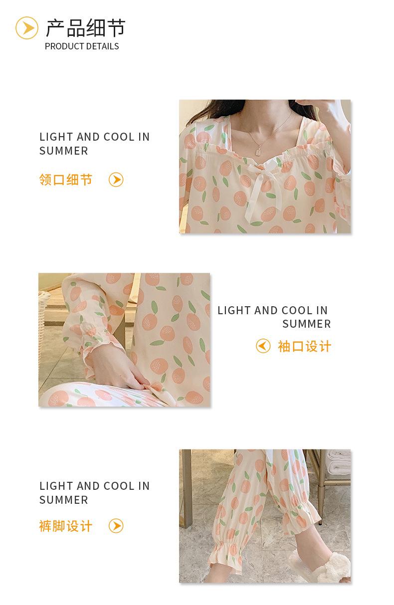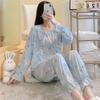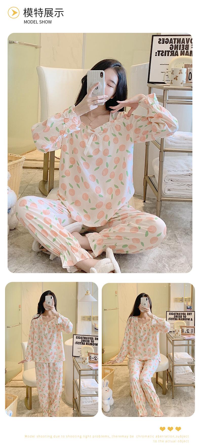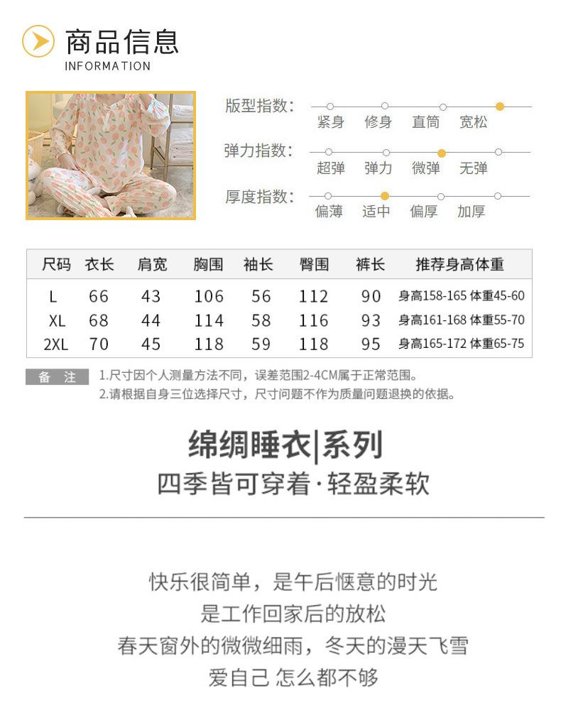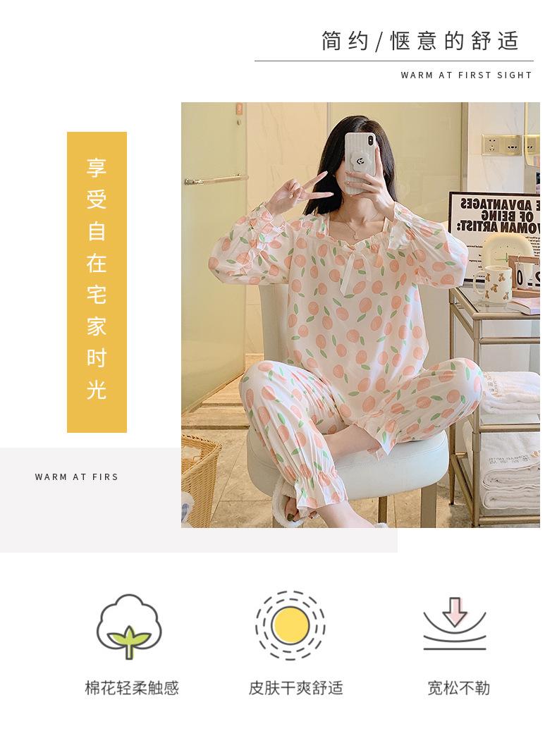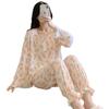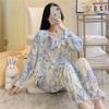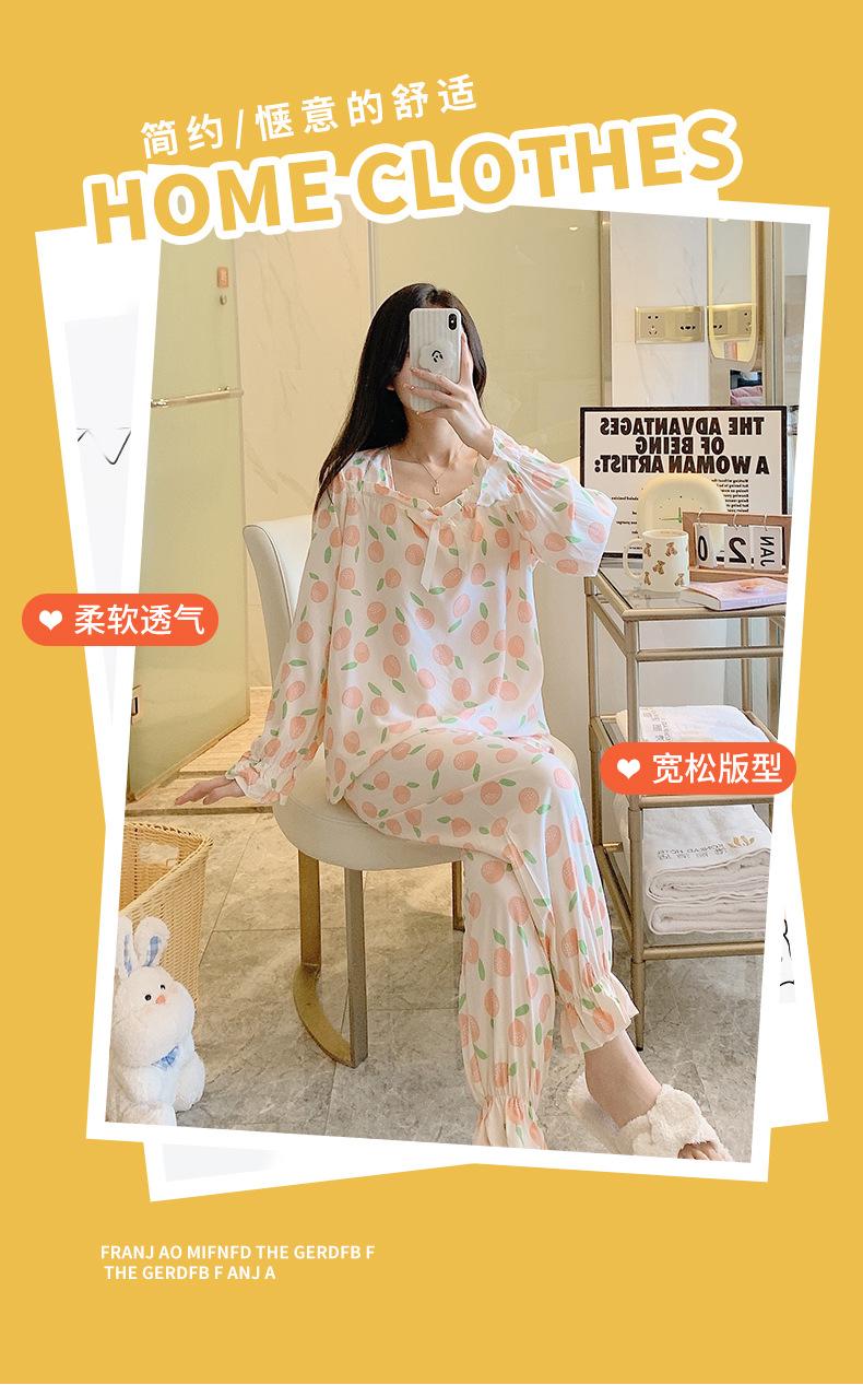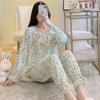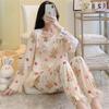 Pijama de Algodón Seda para Día de Primavera y Otoño para Mujer de Manga Larga Delgada Algodón Seda Traje Estilo Coreano Algodón Artificial Suelto Ropa para el Hogar Talla Grande
