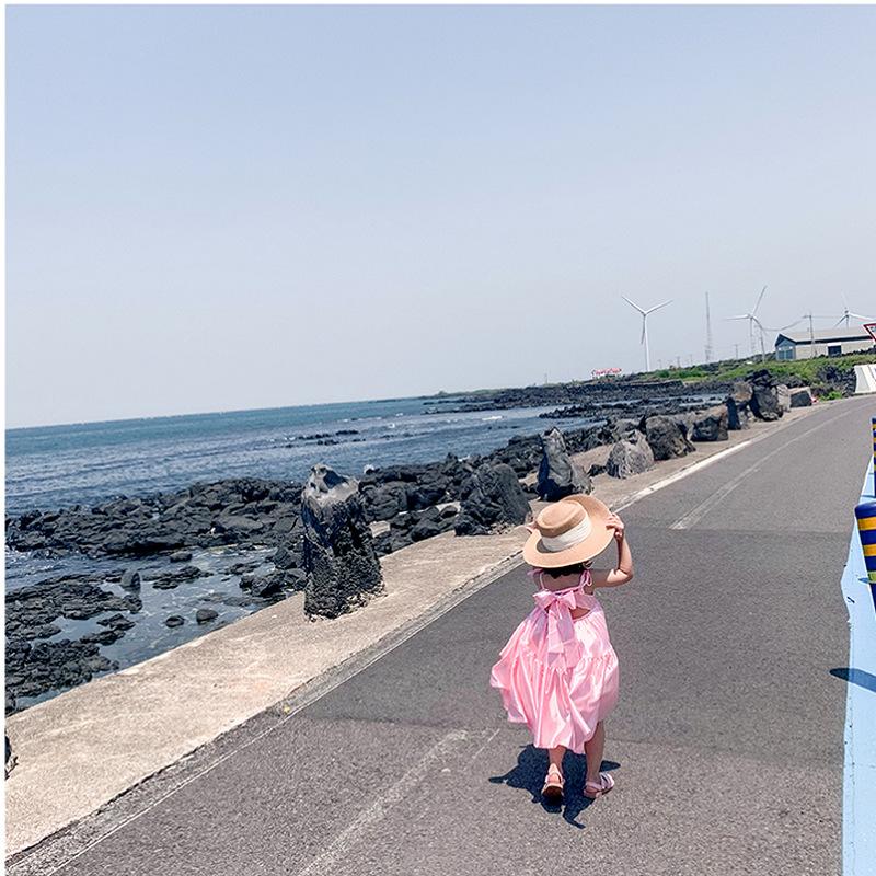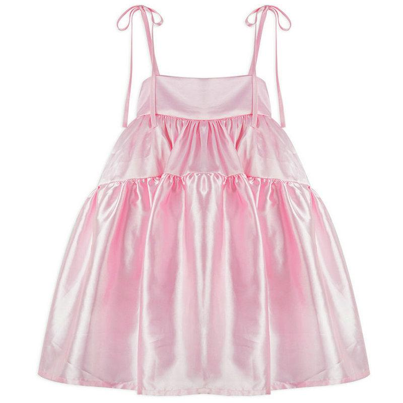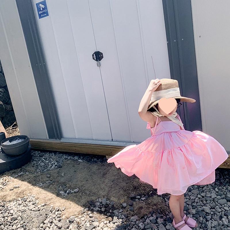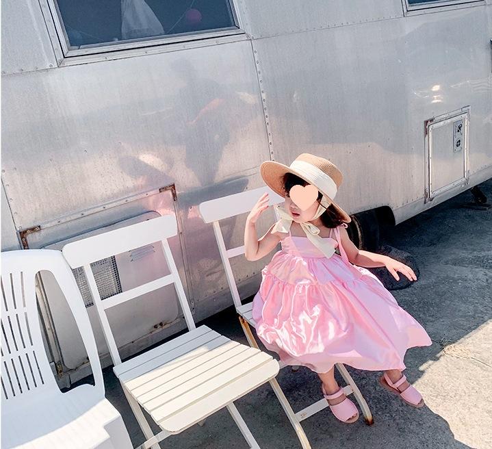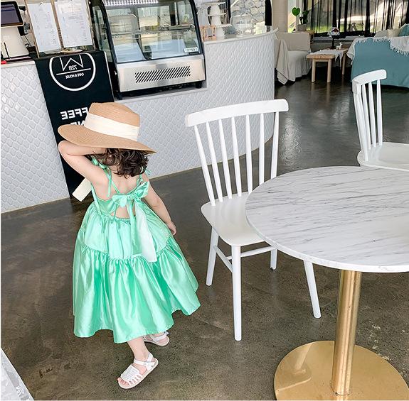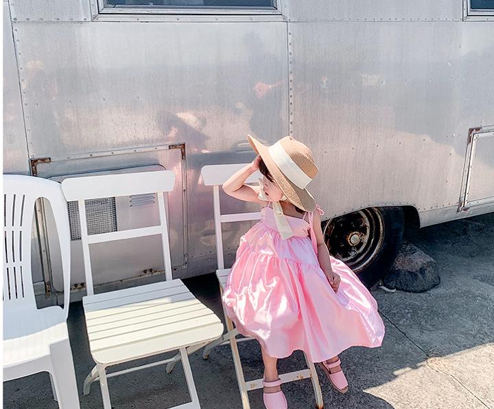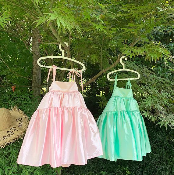 Vestido de Princesa de Seda para Niñas con Tirantes Espagueti y Lazo 25 Primavera Verano Nuevo Comercio Exterior Ropa Infantil al por Mayor