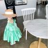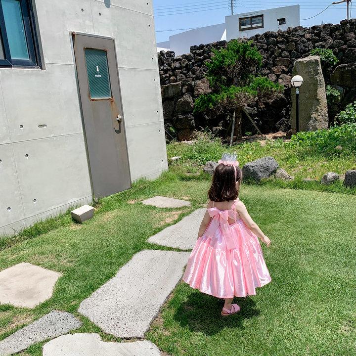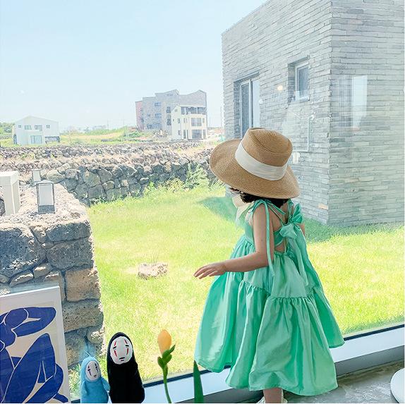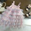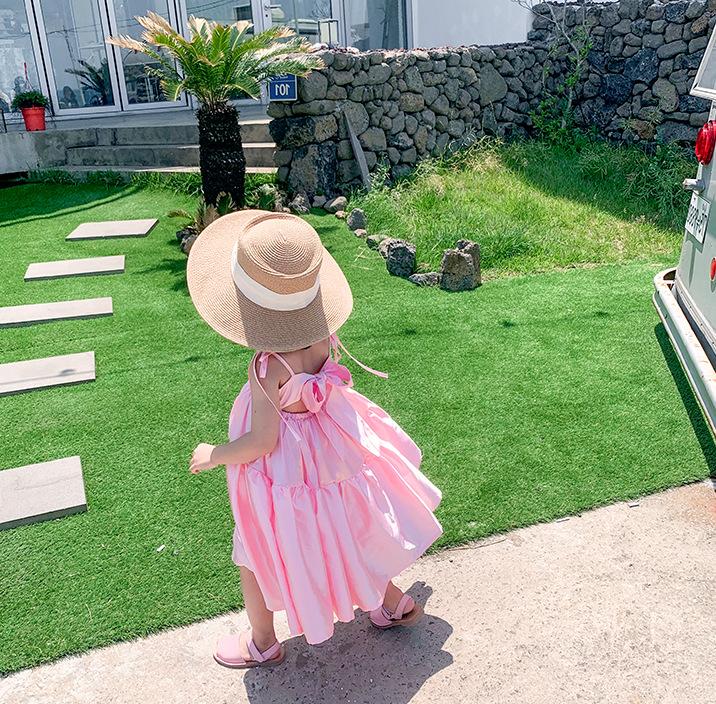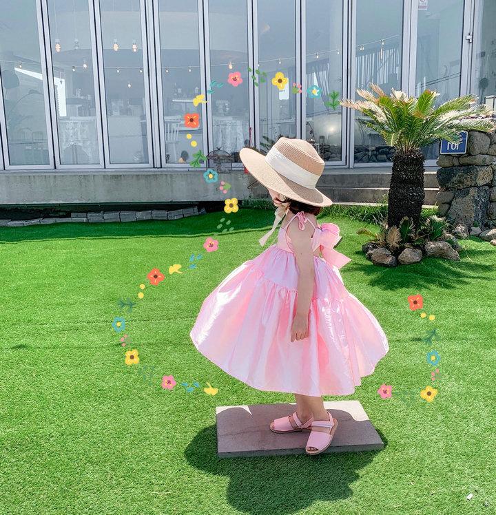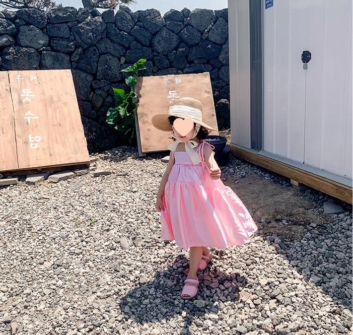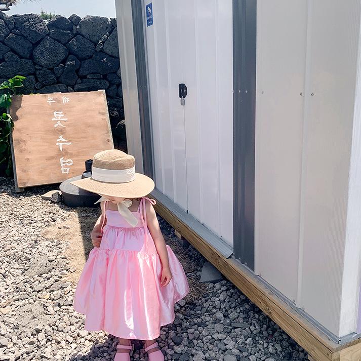 Vestido de Princesa de Seda para Niñas con Tirantes Espagueti y Lazo 25 Primavera Verano Nuevo Comercio Exterior Ropa Infantil al por Mayor