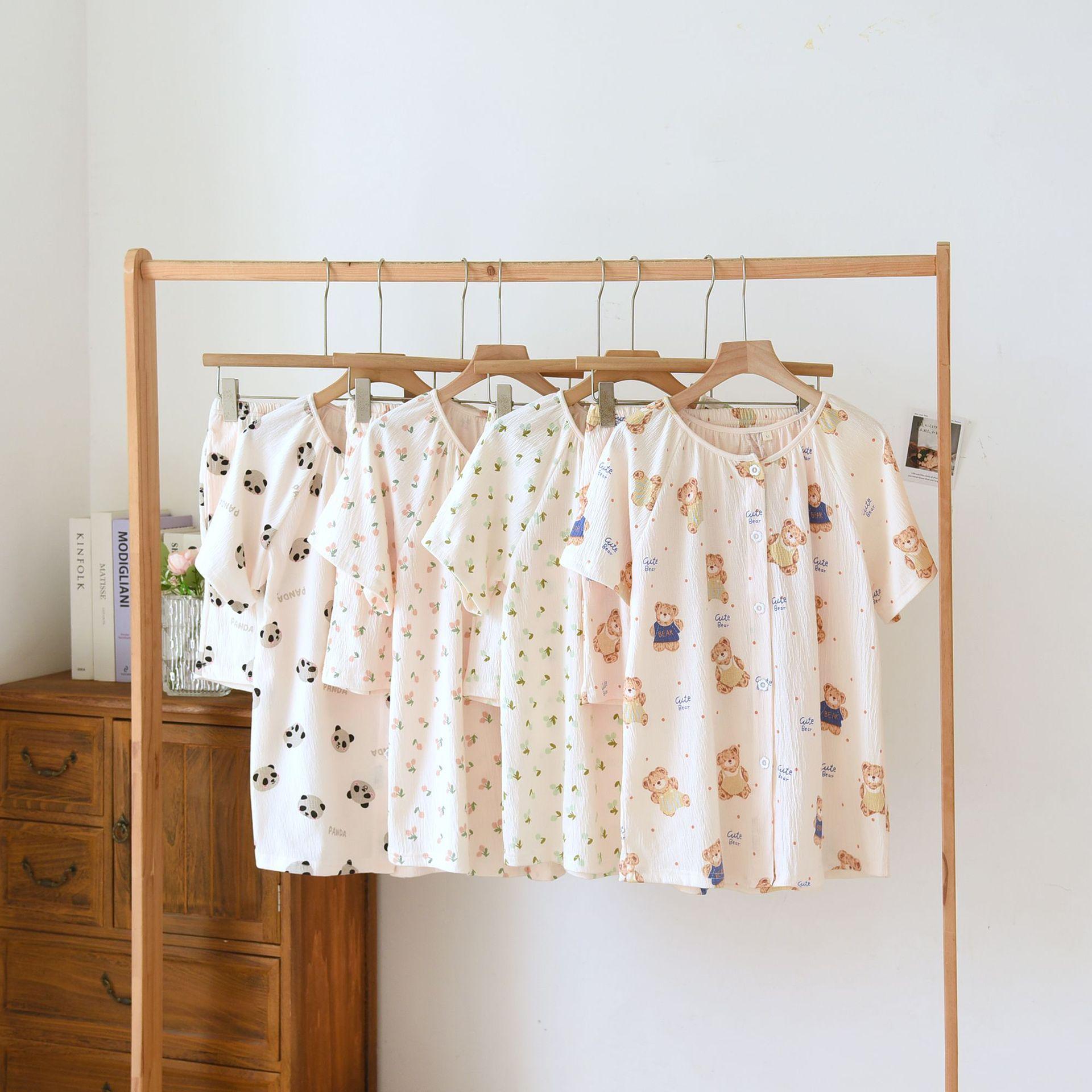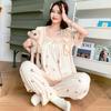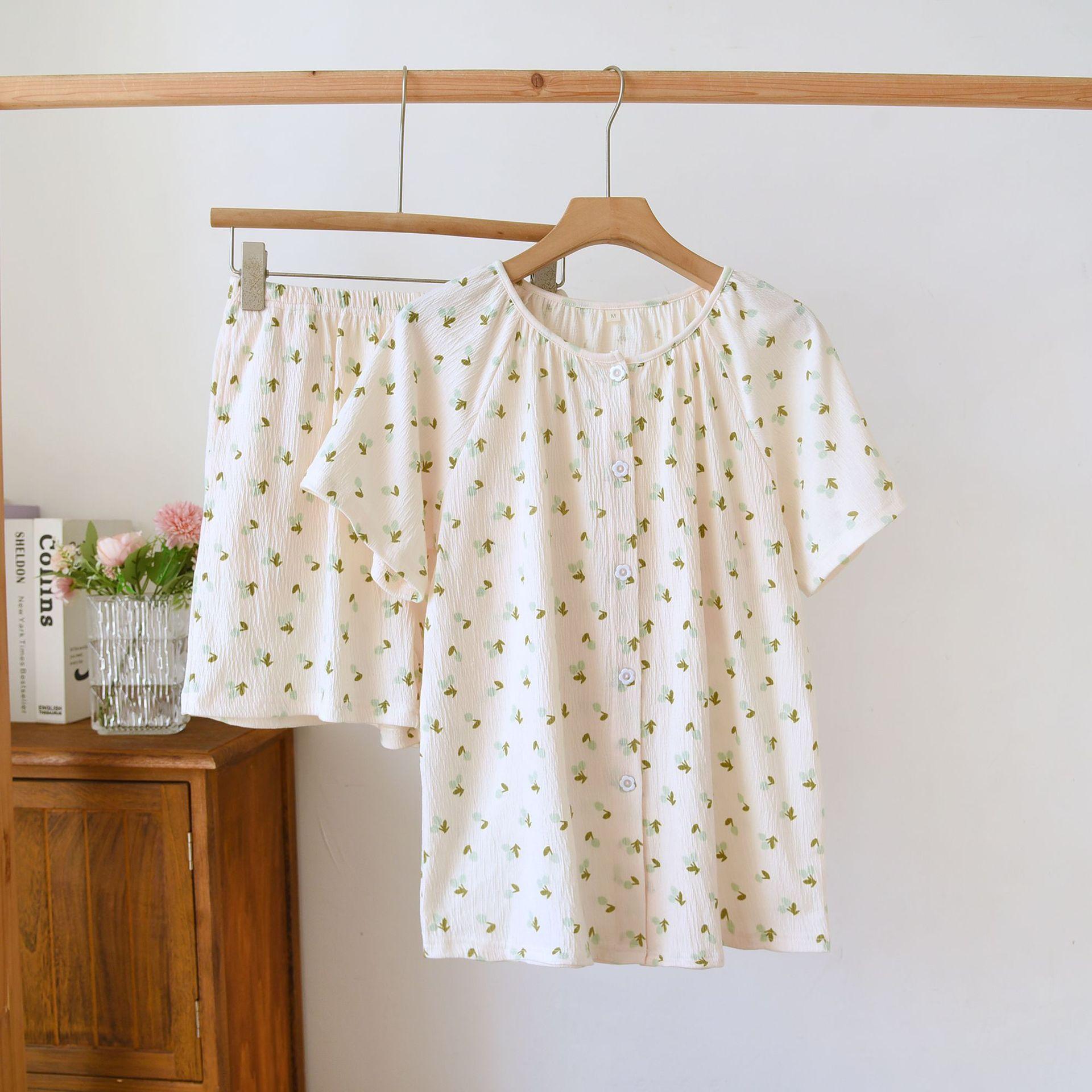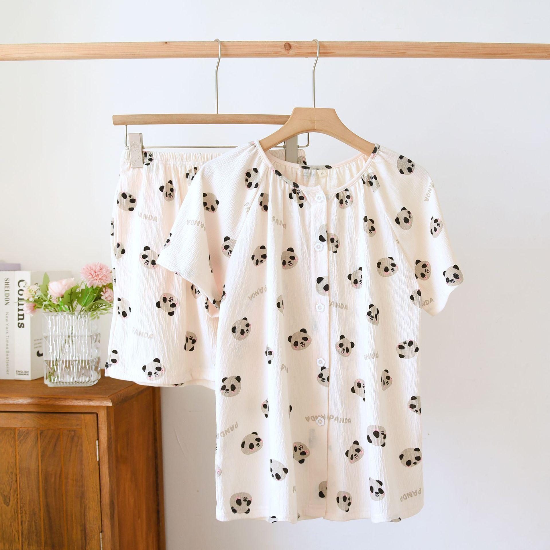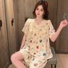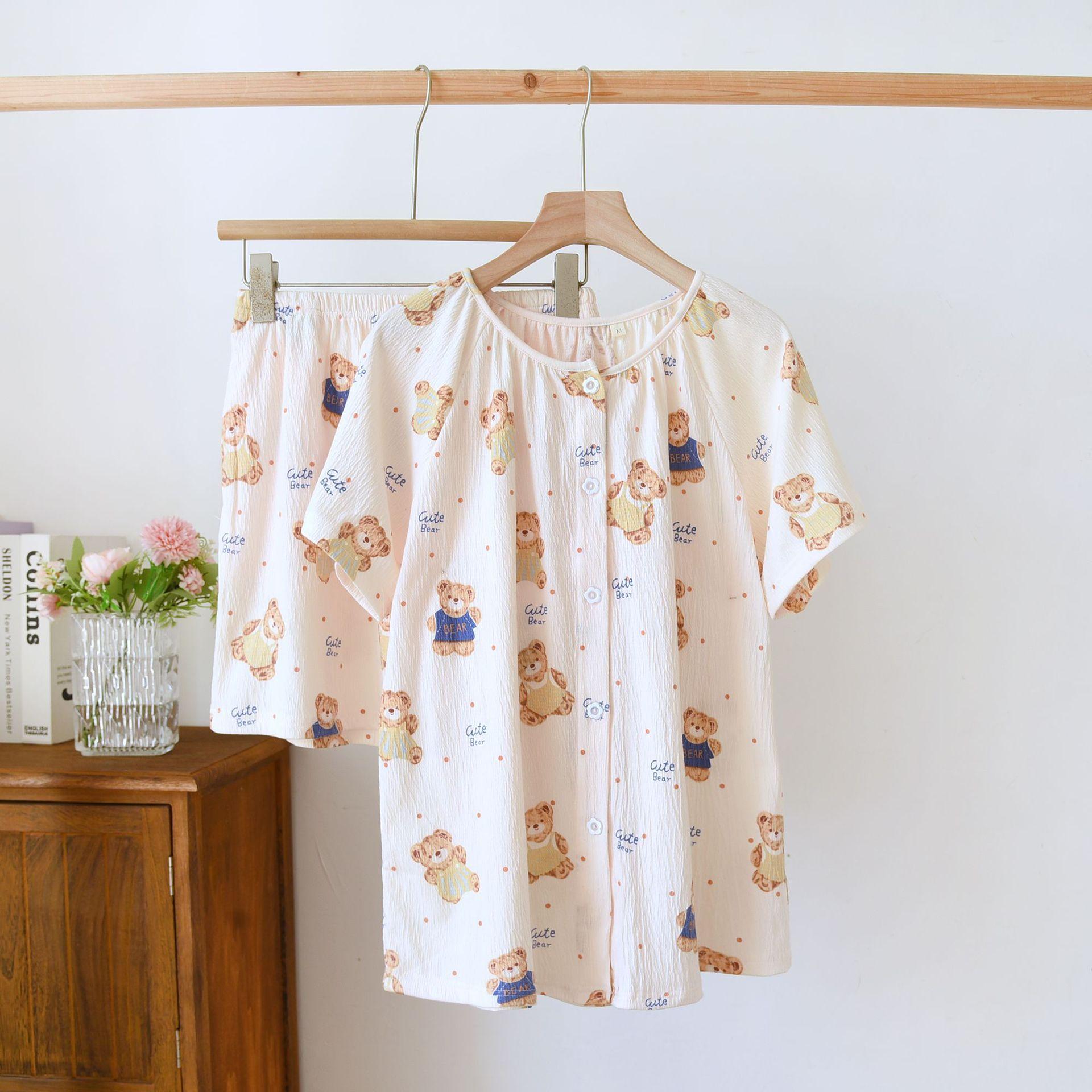 Pantalones cortos de verano de manga corta, pijamas de mujer de talla grande, ropa de casa, traje elástico, pantalones de tres piezas de media manga de algodón de dibujos animados suaves y finos