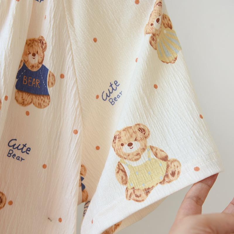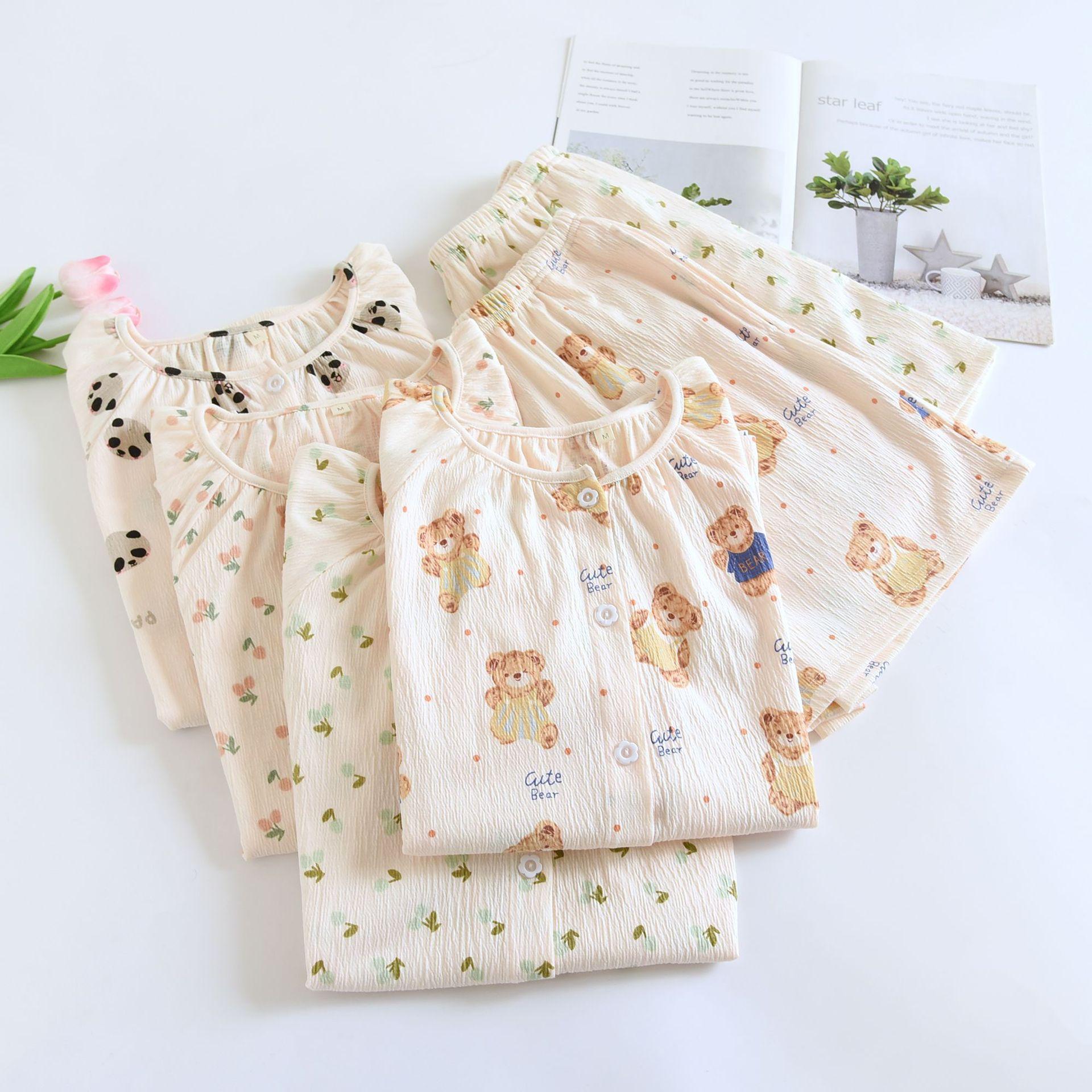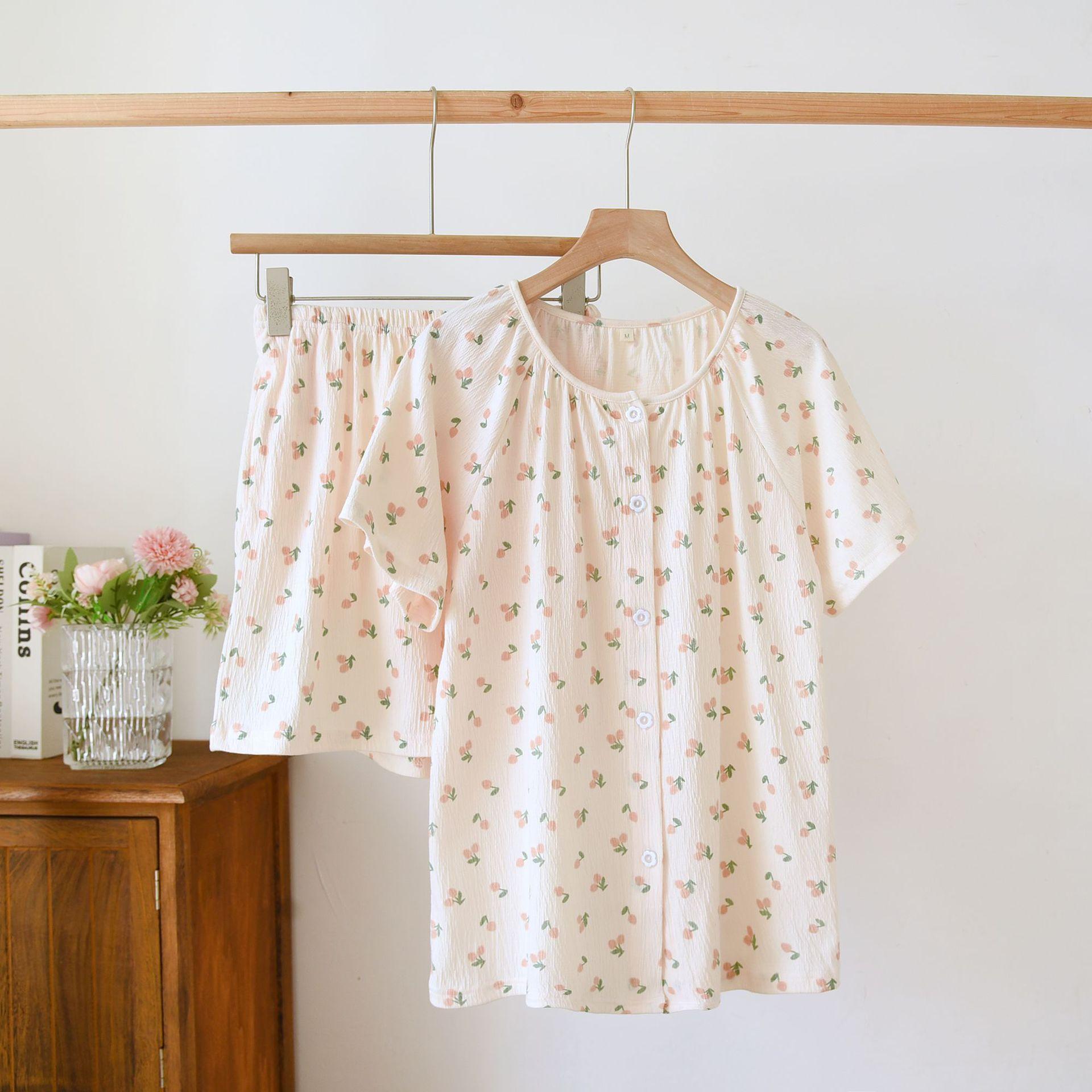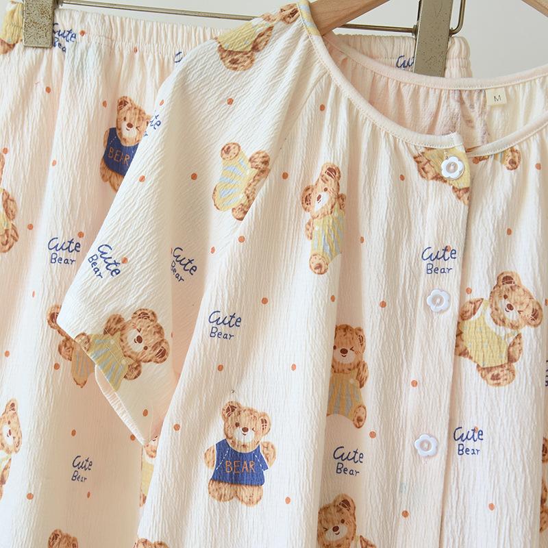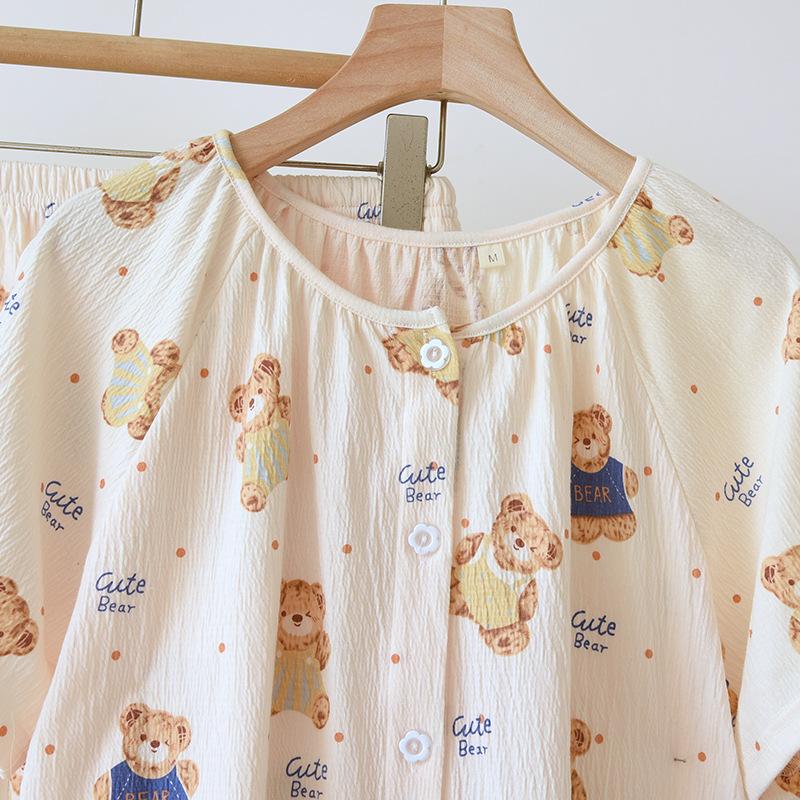Pantalones cortos de verano de manga corta, pijamas de mujer de talla grande, ropa de casa, traje elástico, pantalones de tres piezas de media manga de algodón de dibujos animados suaves y finos