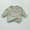 Nueva Camiseta Base de Manga Larga para Niños de Primavera, Cómoda Camiseta para Bebé, Top a Rayas Estilo Coreano con Cuello Redondo para Niños y Niñas, Algodón