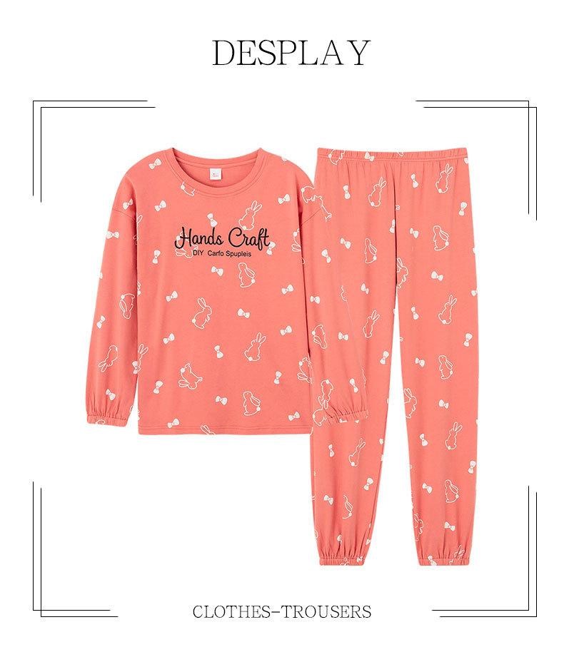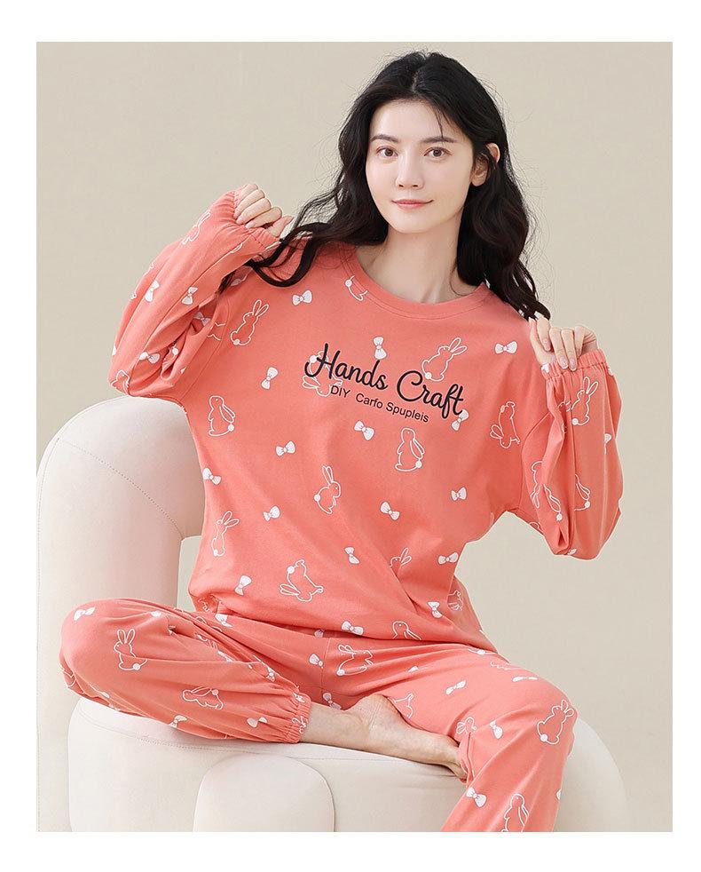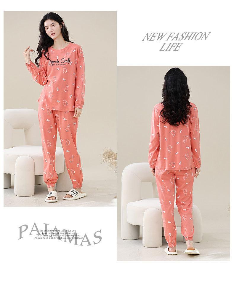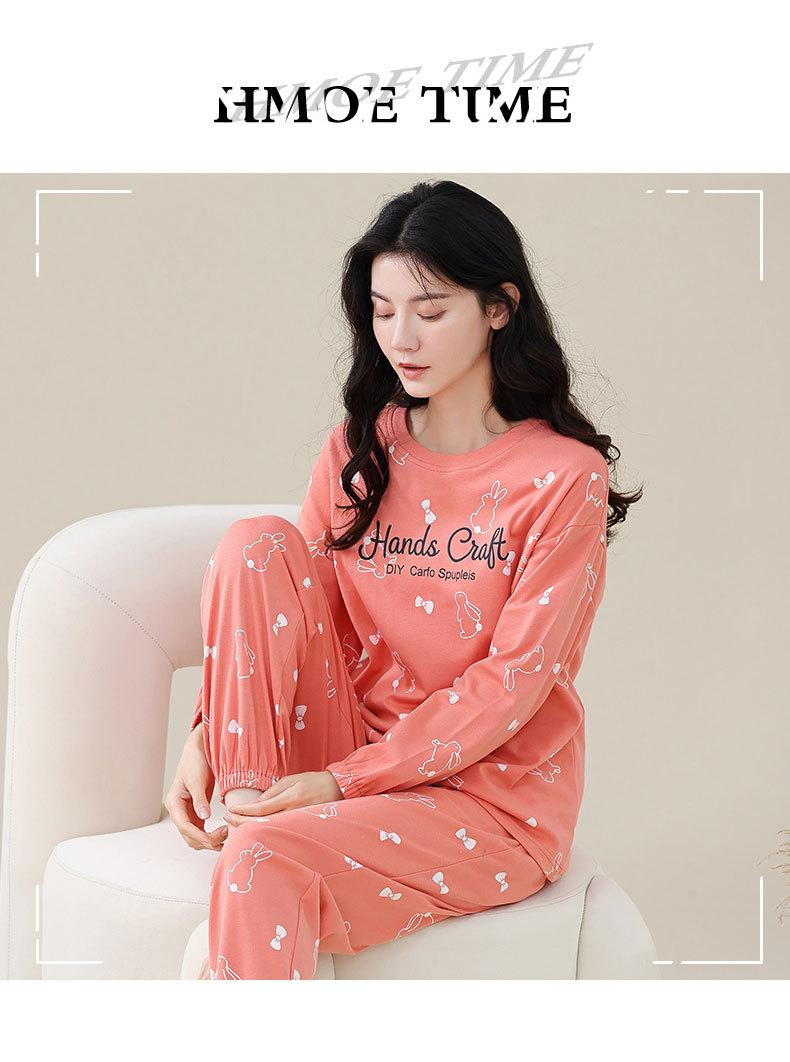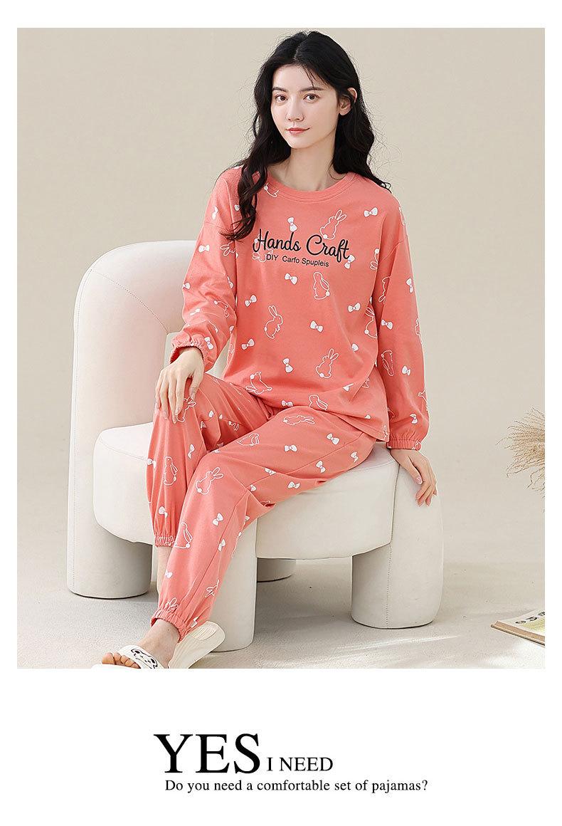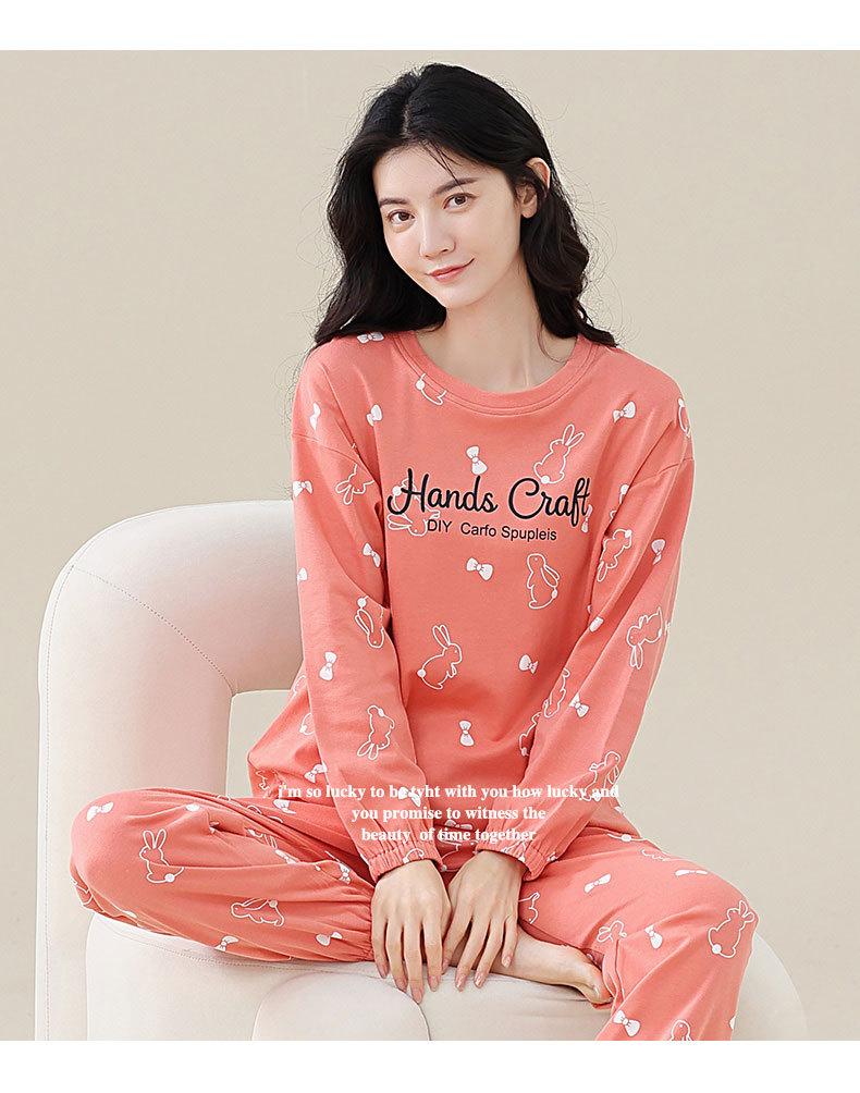 Pijamas de mujer de primavera y otoño de algodón de manga larga, ropa de casa, sencillo e informal, holgado y cómodo para exteriores.