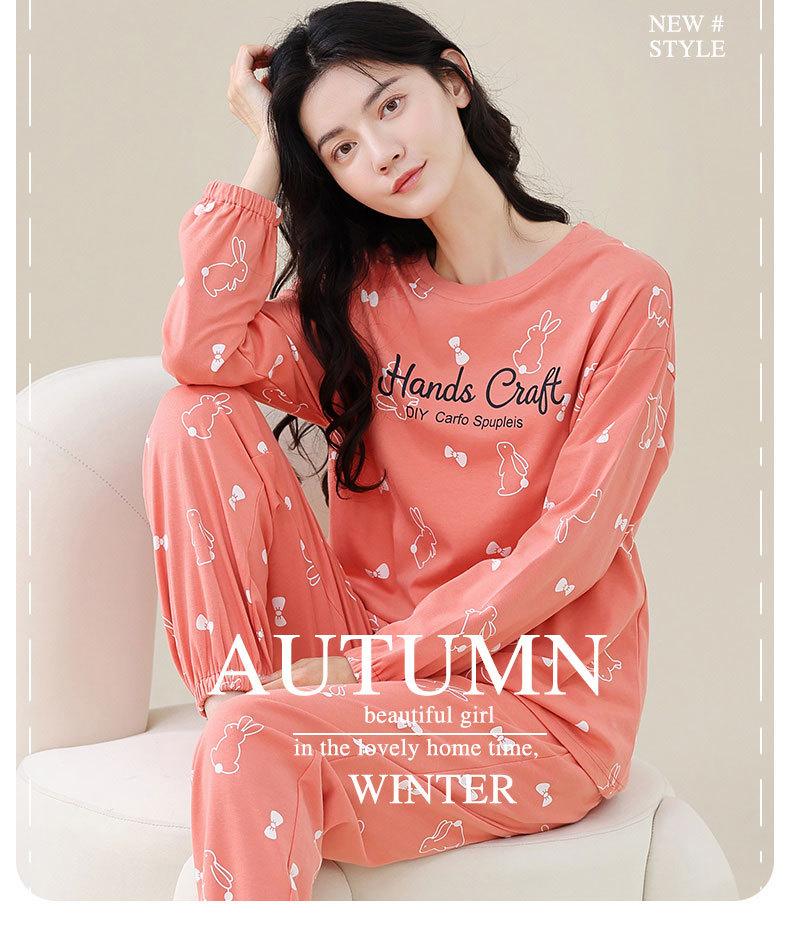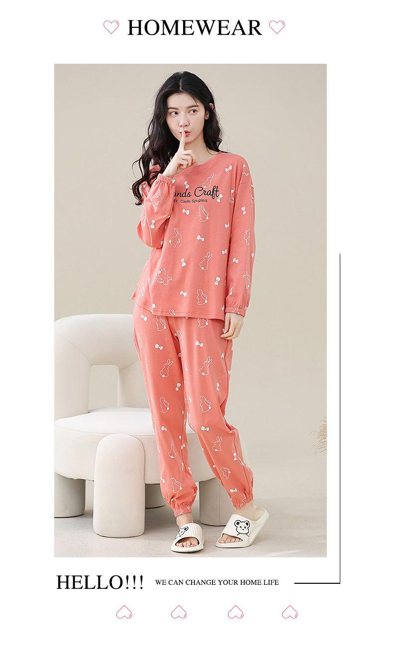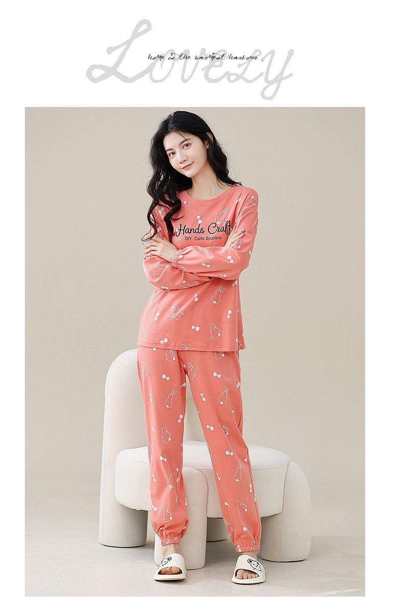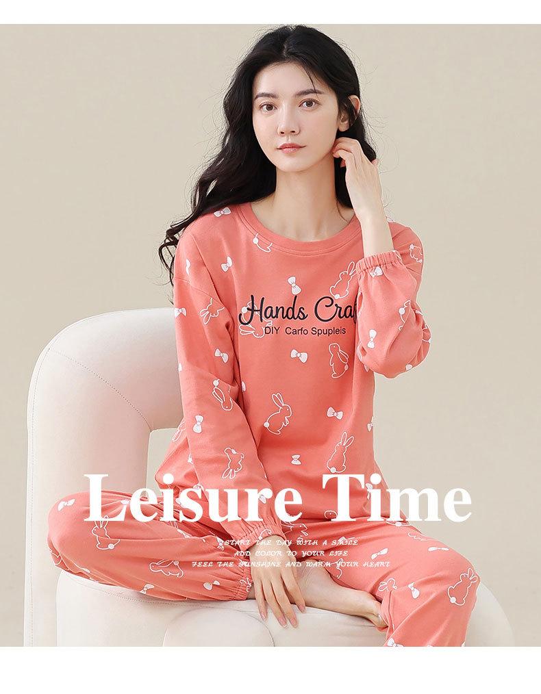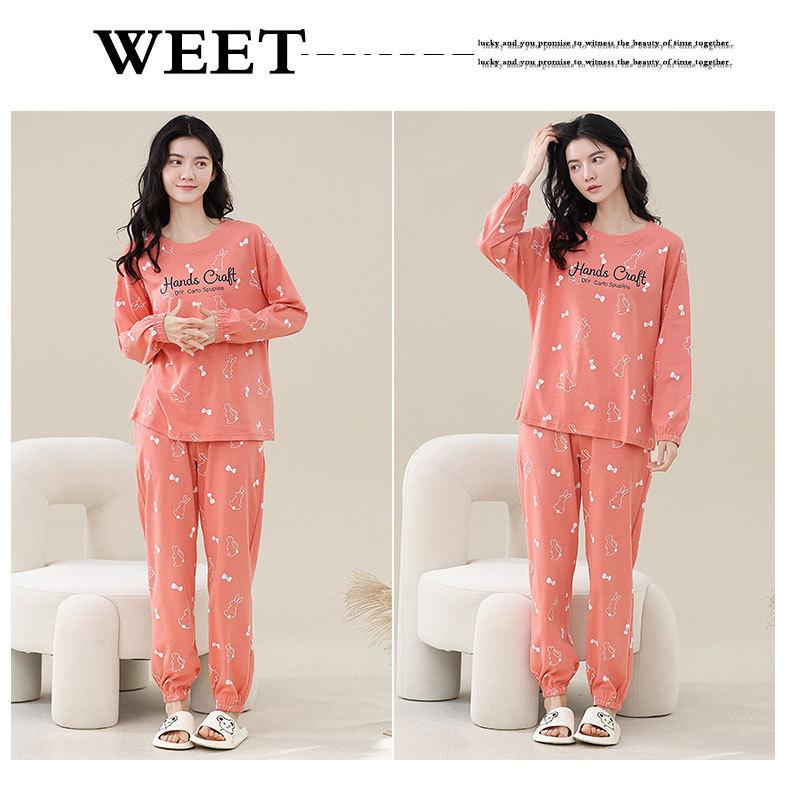 Pijamas de mujer de primavera y otoño de algodón de manga larga, ropa de casa, sencillo e informal, holgado y cómodo para exteriores.