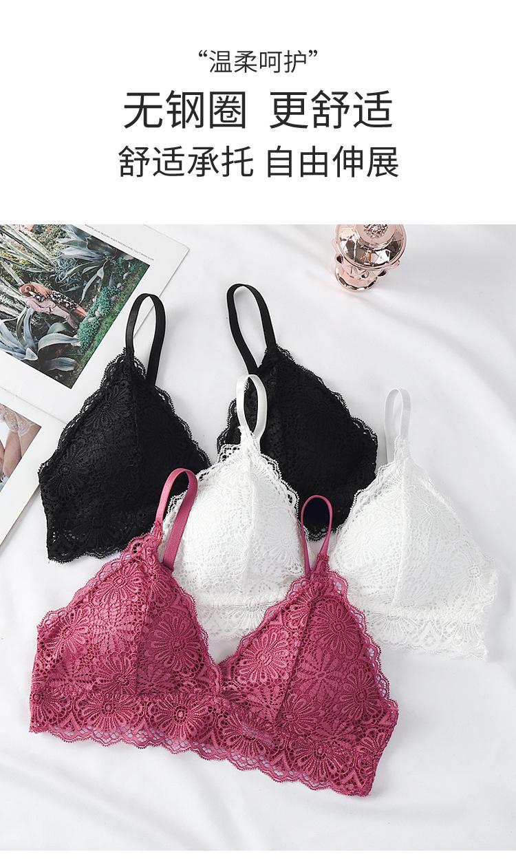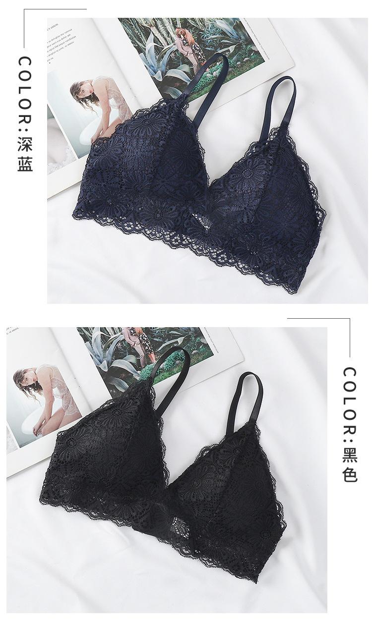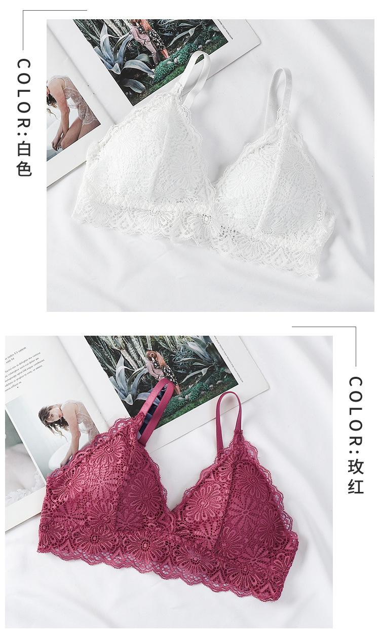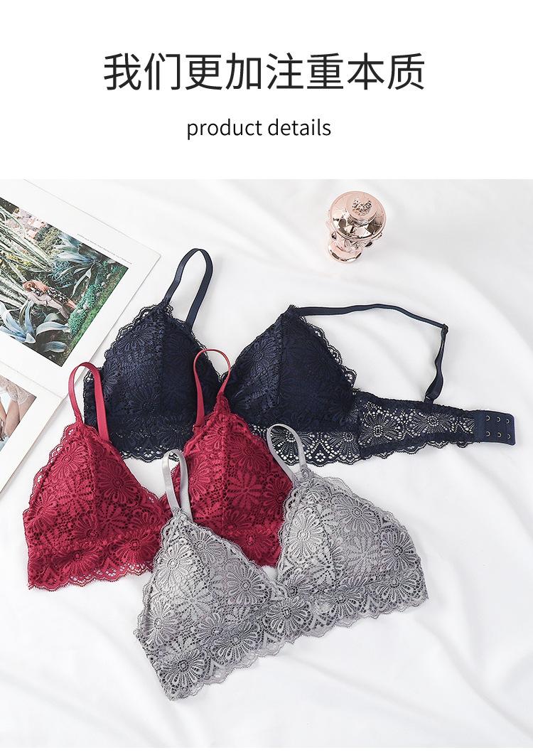 Sujetador sexy elegante con espalda de encaje, escote en V profundo, suave, agradable para la piel, ligero, transpirable, cómodo y sin aros.