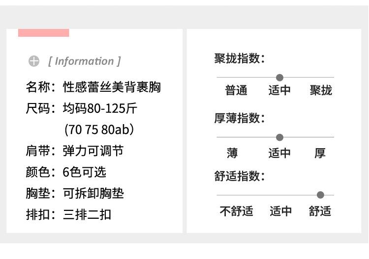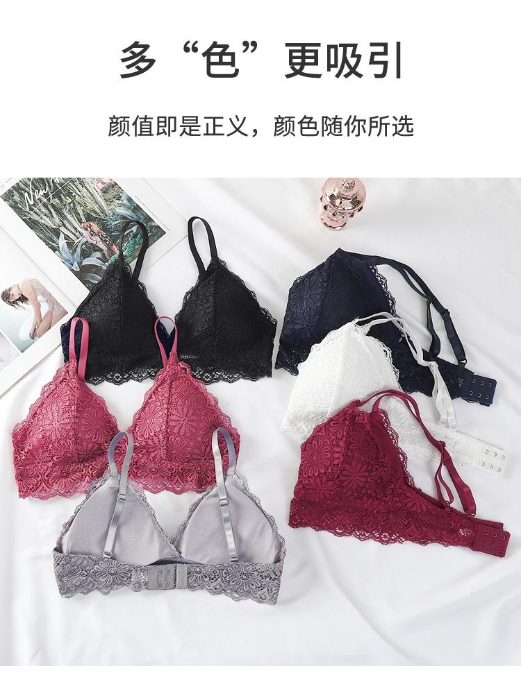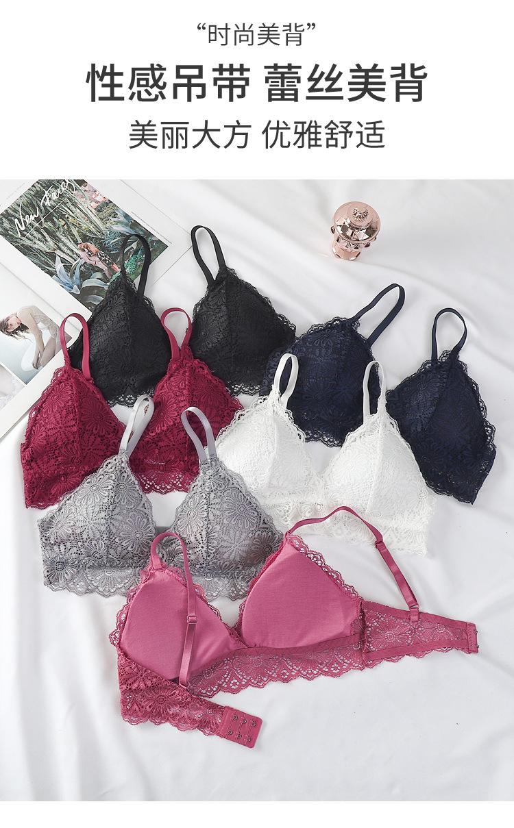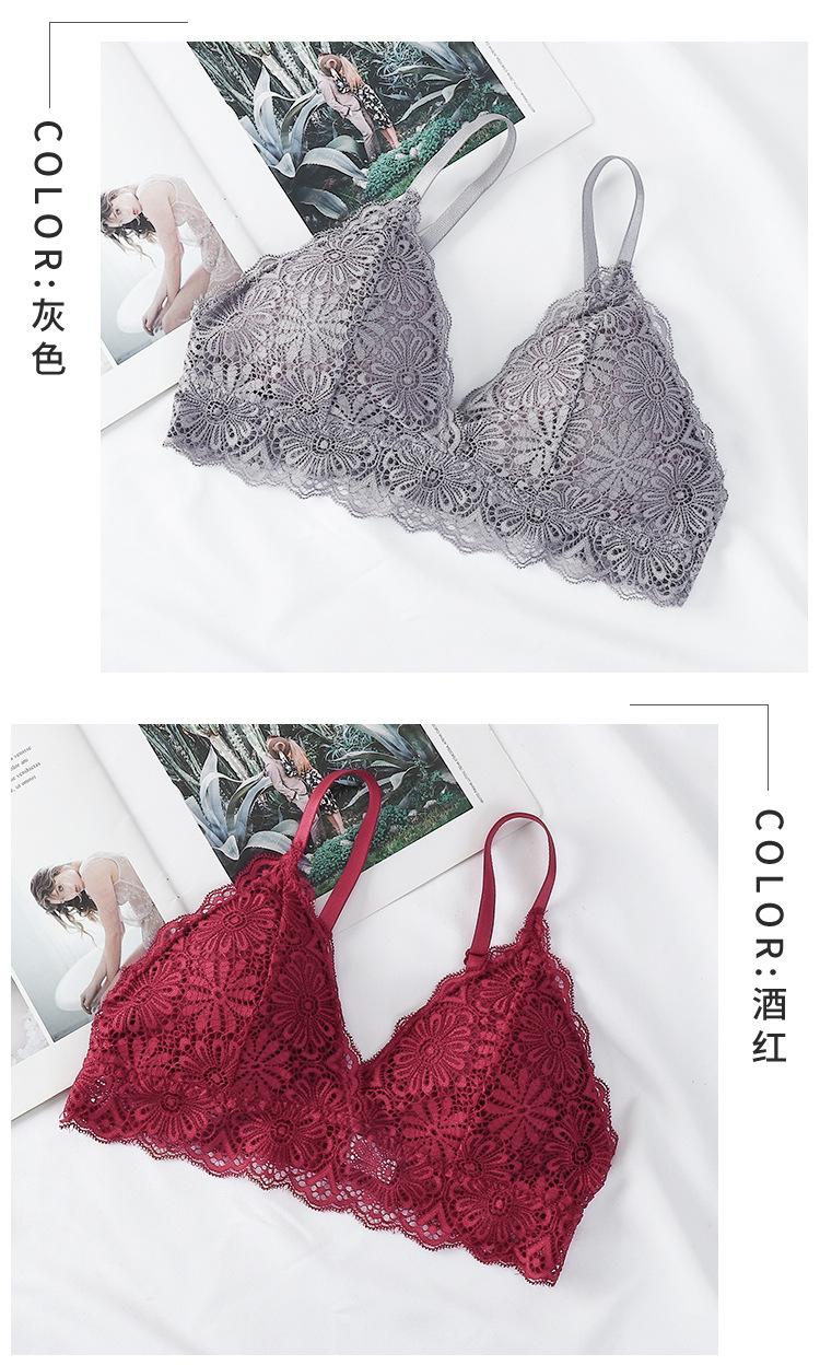 Sujetador sexy elegante con espalda de encaje, escote en V profundo, suave, agradable para la piel, ligero, transpirable, cómodo y sin aros.