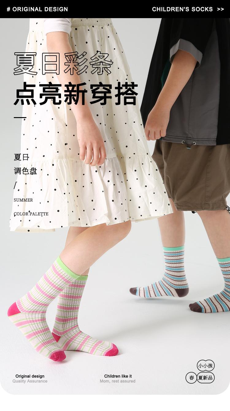 Calcetines para niños al por mayor primavera y verano delgados a juego de colores a rayas calcetines de malla de seda transpirables sin costuras para niños y niñas calcetines de media pantorrilla Algodón