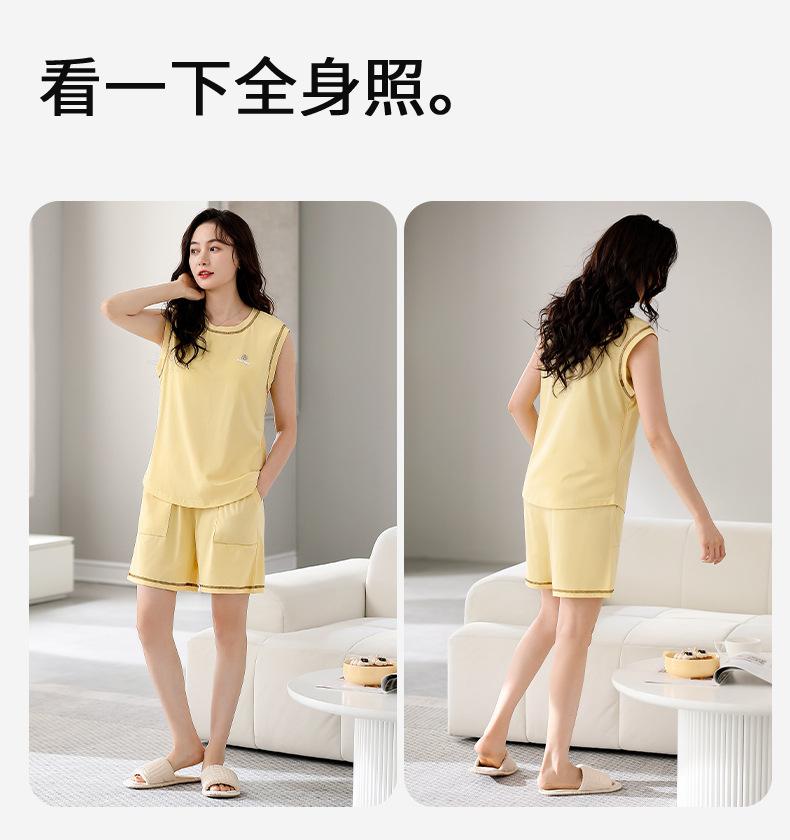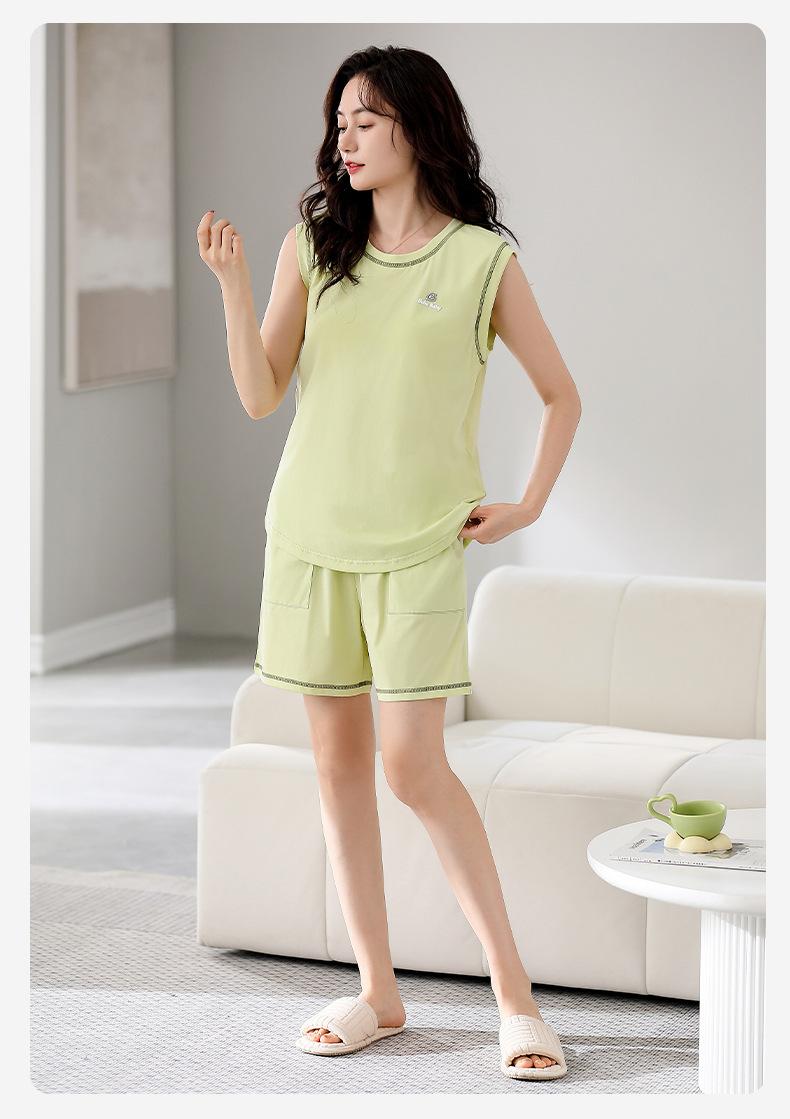 Pijama de modal para mujer, chaleco con almohadilla para el pecho, pantalones cortos sencillos y finos antigolpes, ropa de casa de algodón fresco para mujer.