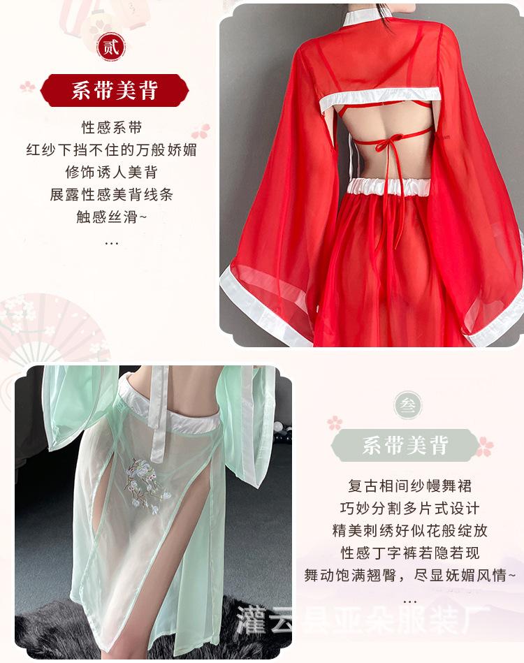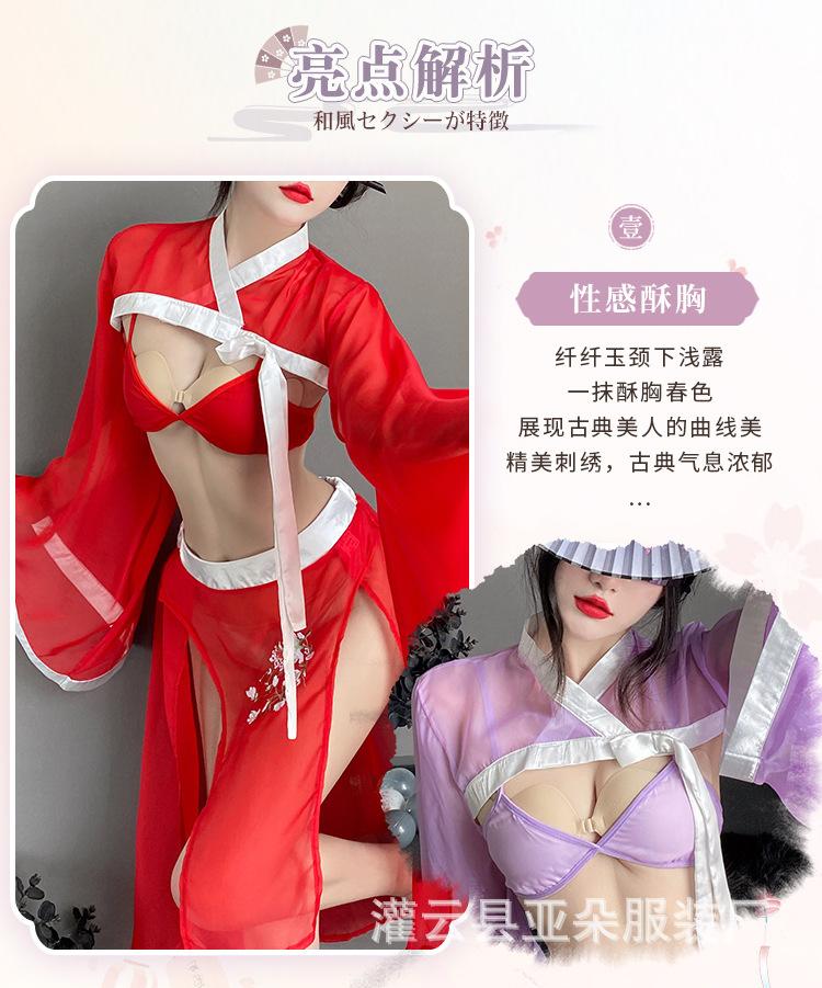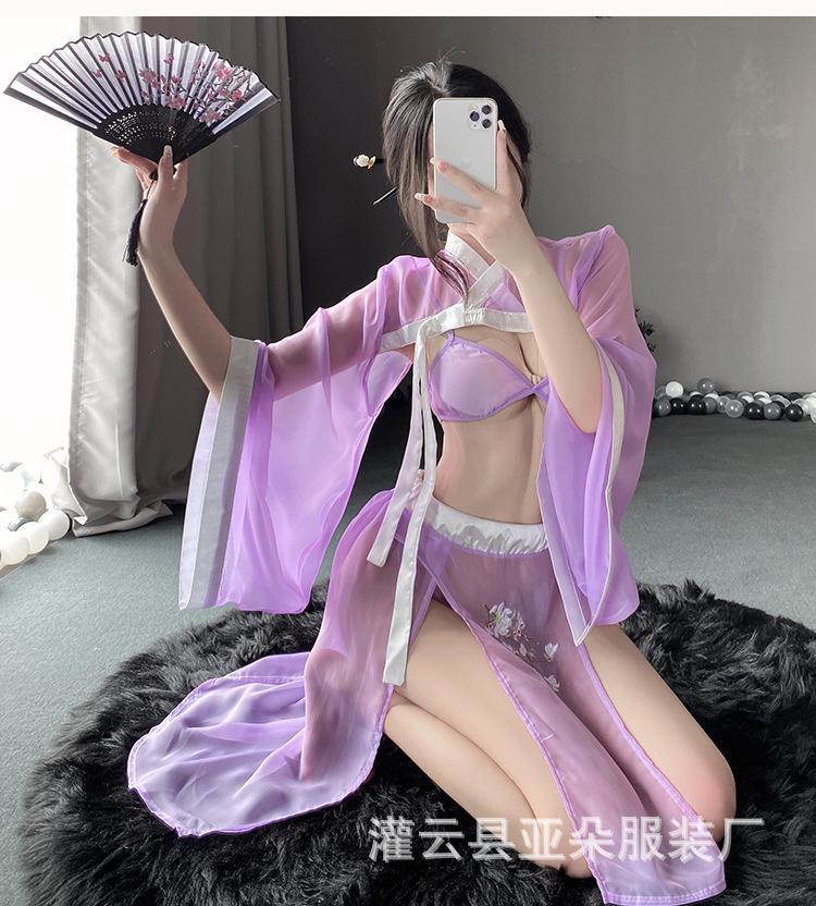 Ropa interior sexy de alta gama, pijama Hanfu antiguo, tentación, pasión, cheongsam, uniforme de puro deseo, conjunto 2589