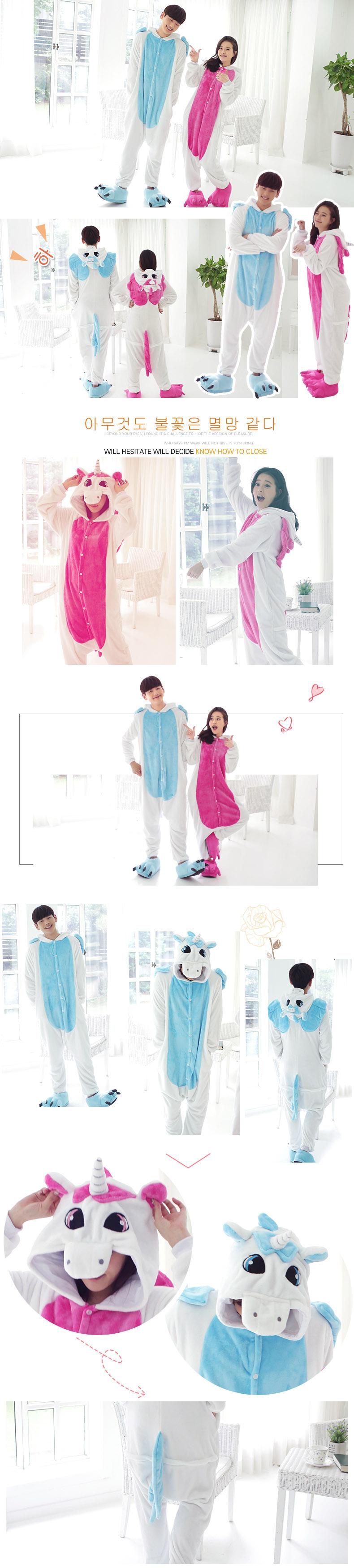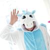 Pijama Onesie de Animal Unicornio Azul de Franela Invierno Manga Larga Coral para Mujer Hogar Pareja Vellón Coral Cálido