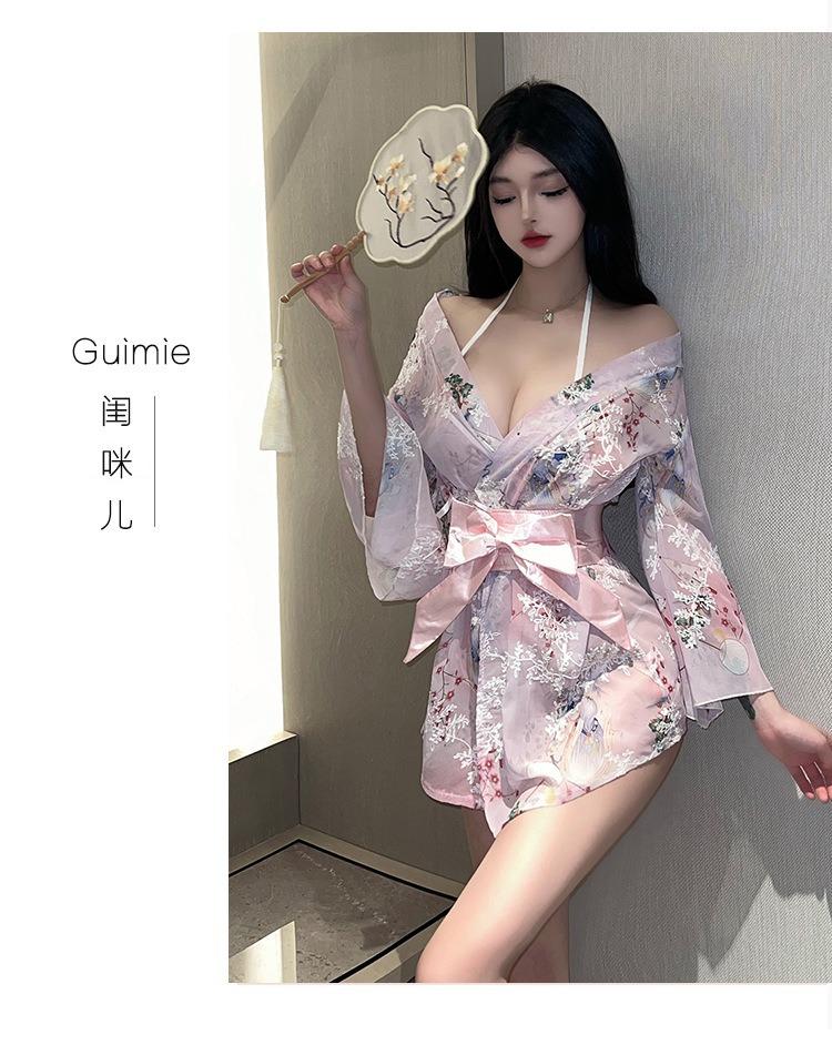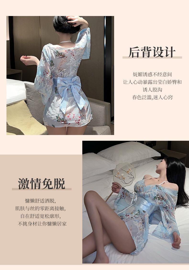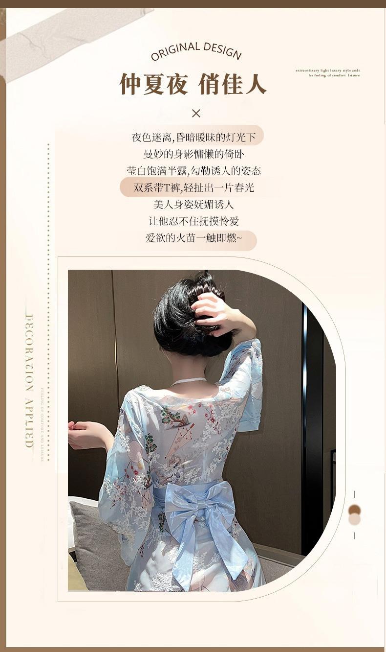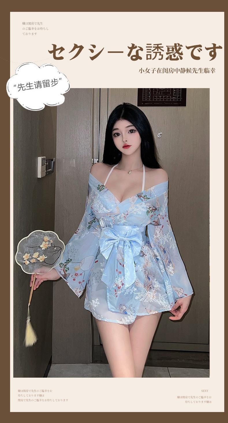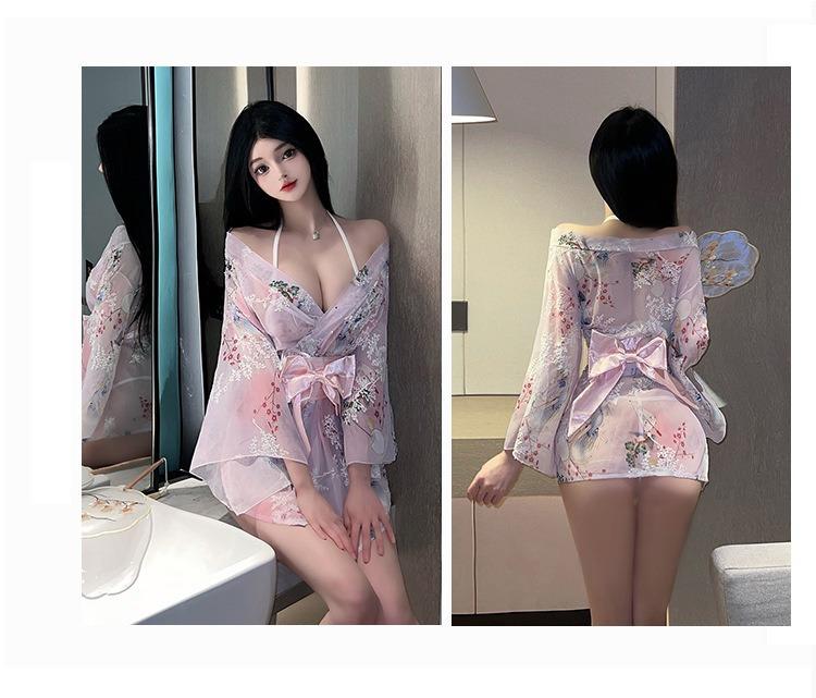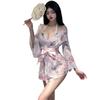 Lencería sexy para mujer, kimono, bata de baño, uniforme, tentación, estampado, lazo japonés, pijama japonés sexy