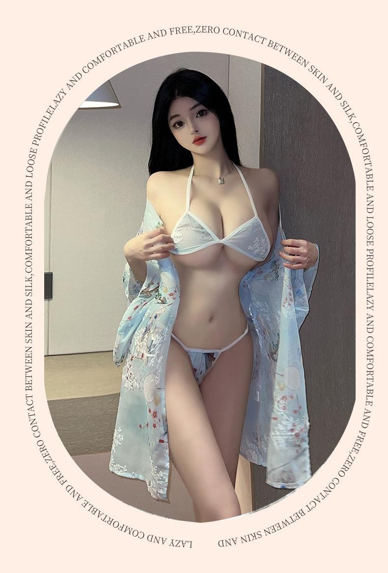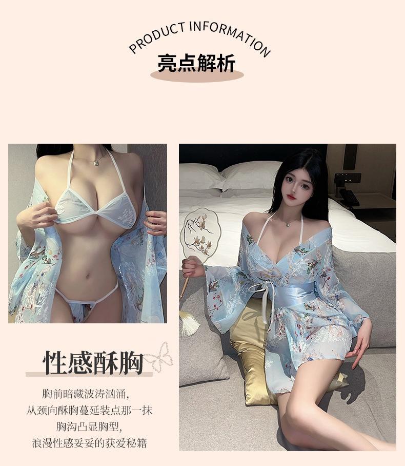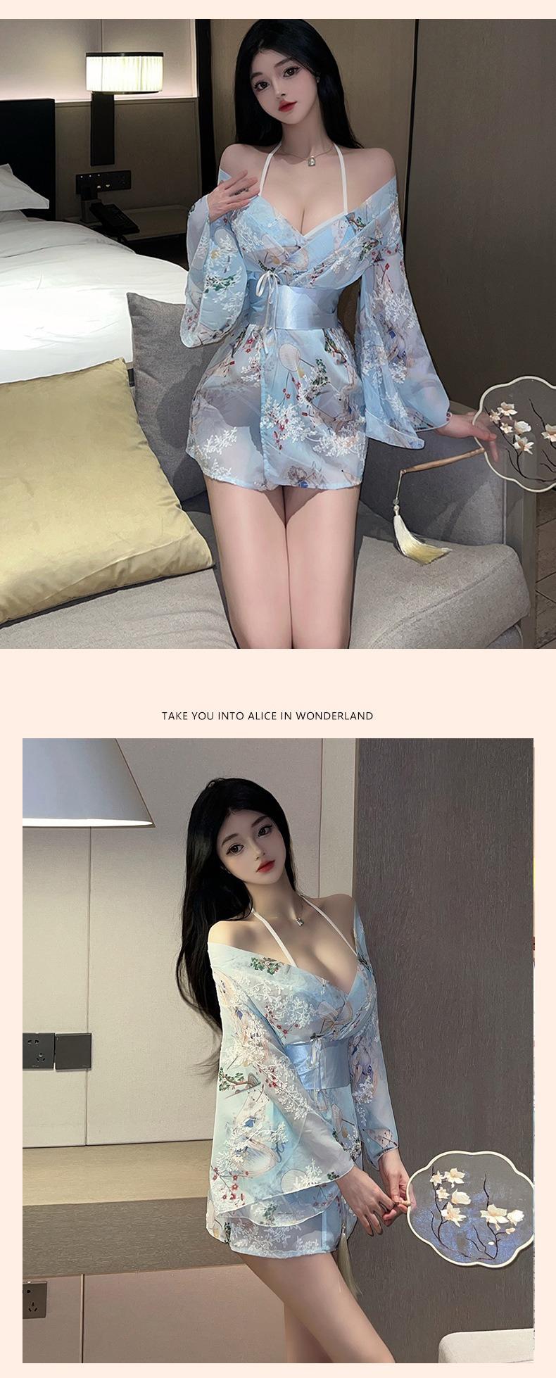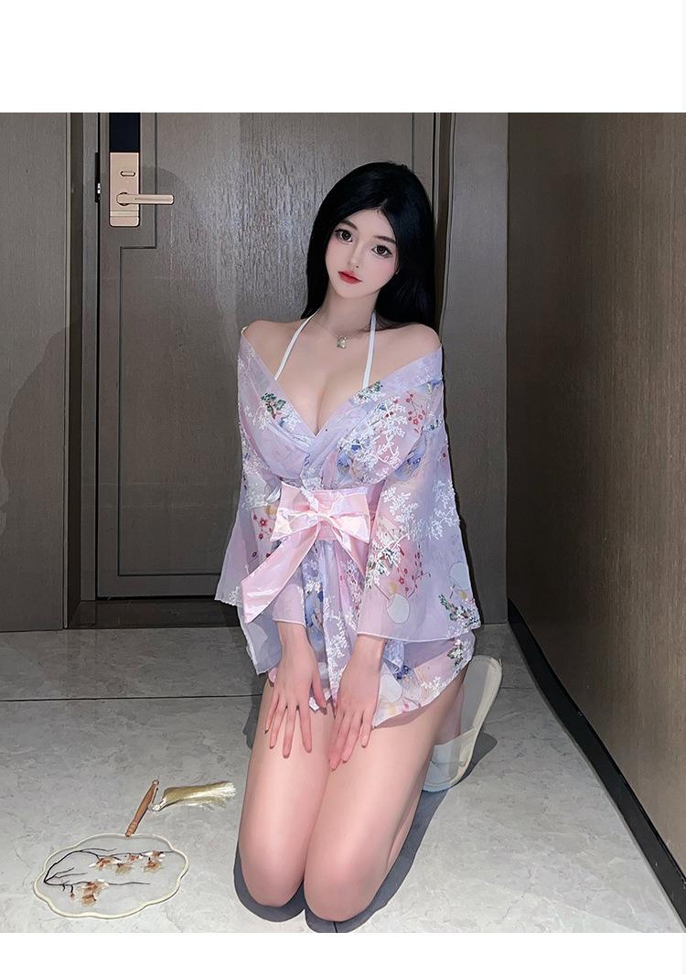 Lencería sexy para mujer, kimono, bata de baño, uniforme, tentación, estampado, lazo japonés, pijama japonés sexy