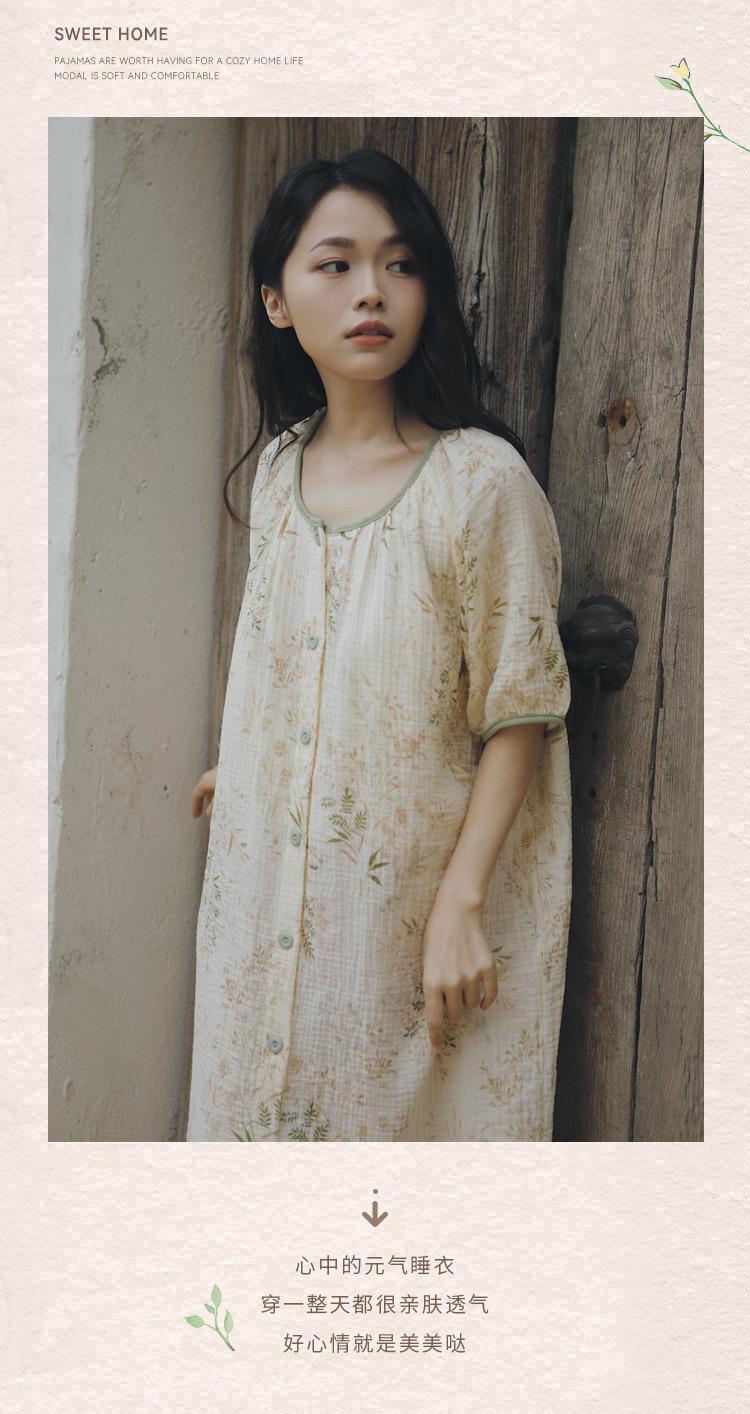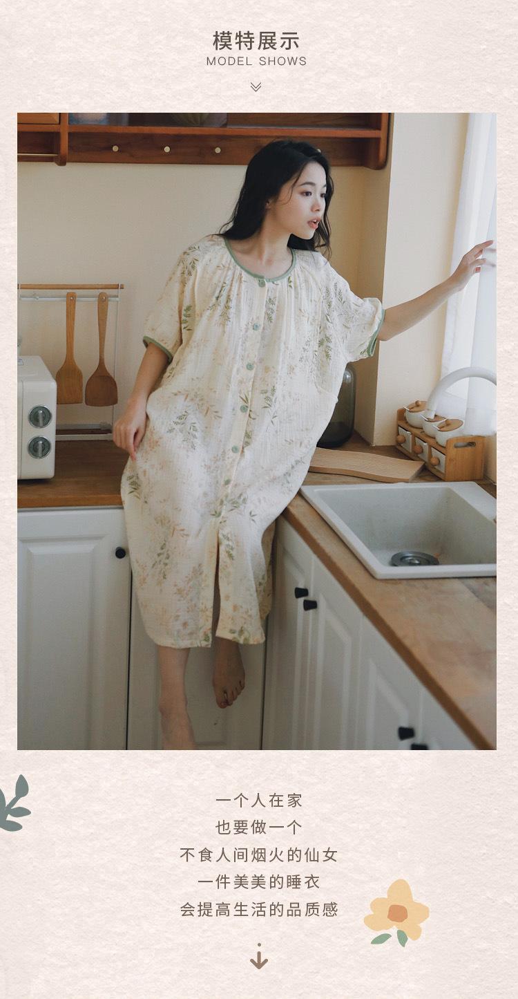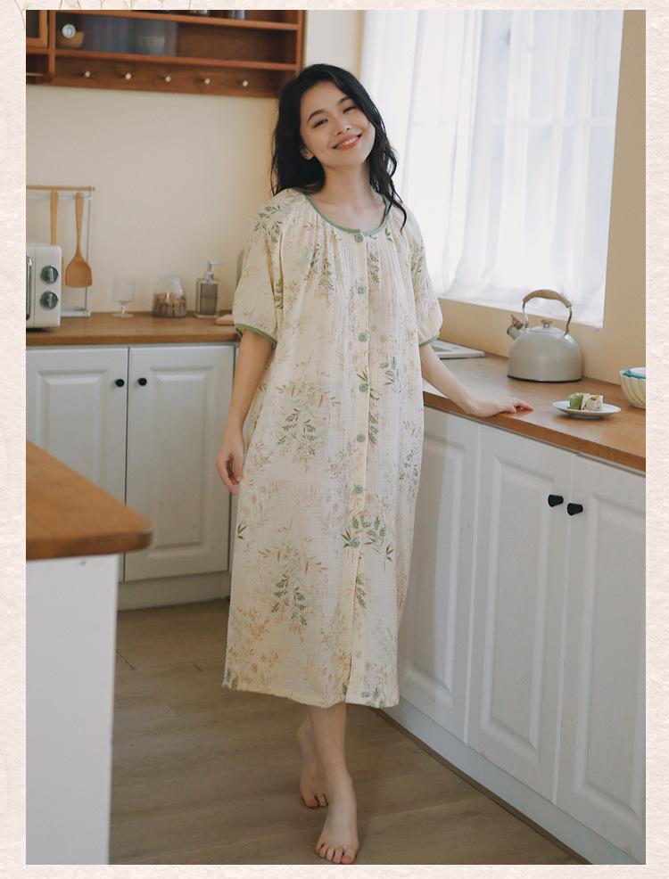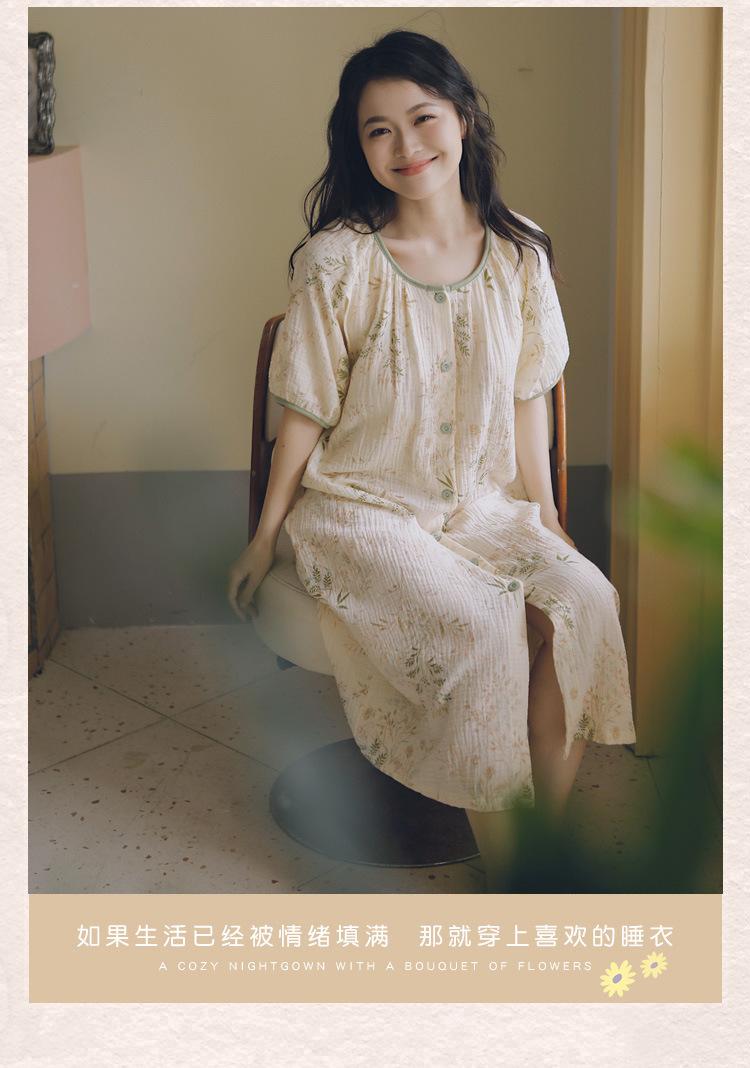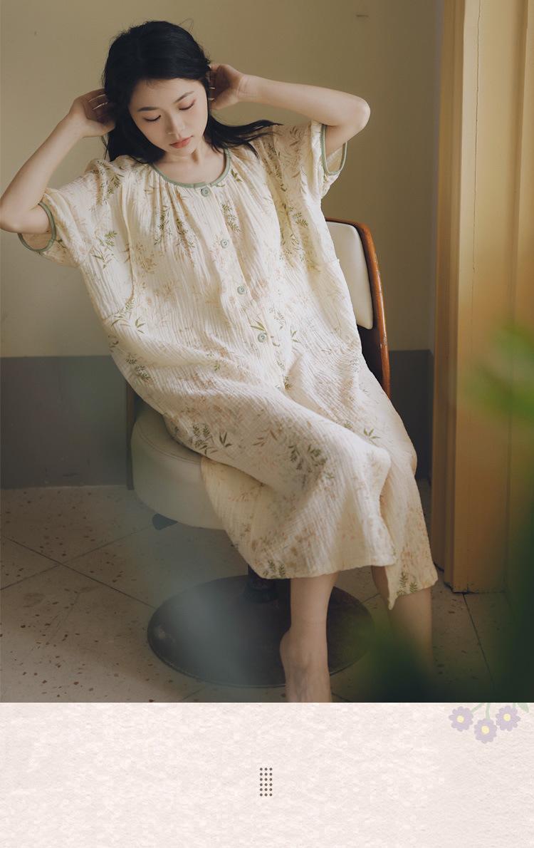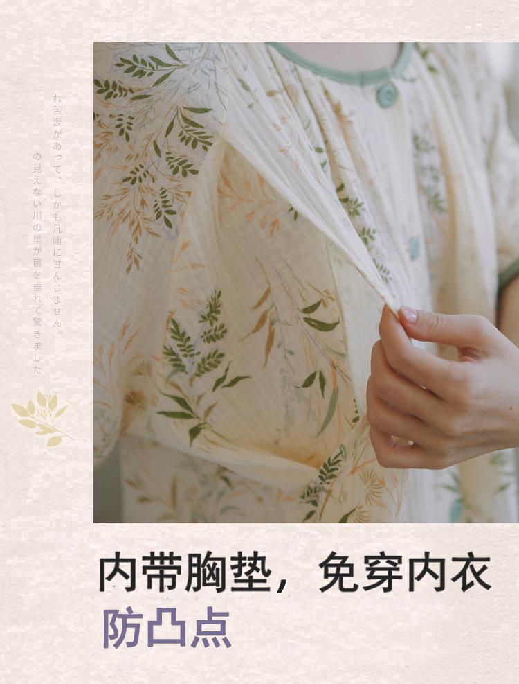 Camisón de Maternidad y Lactancia de Algodón Puro Arrugado Gasa Verano Manga Corta Ropa Postparto Vestido de Verano para Revisión de Maternidad
