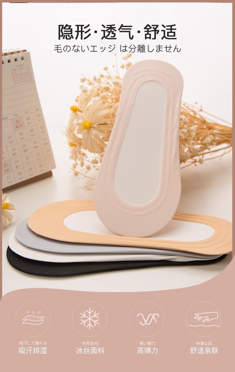 Calcetines Invisibles de Seda de Hielo sin Costuras Color Sólido Combinable Calcetines Invisibles para Mujer Silicona Antideslizante Calcetines de Barco para Mujer Boca Baja Calcetines Cortos Calcetines Casuales