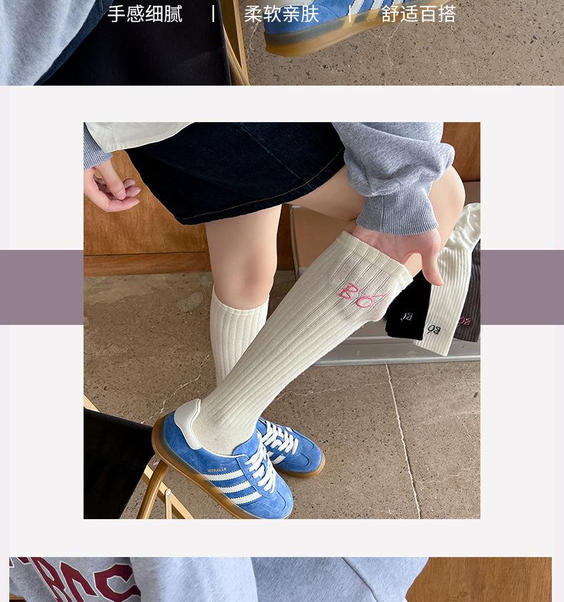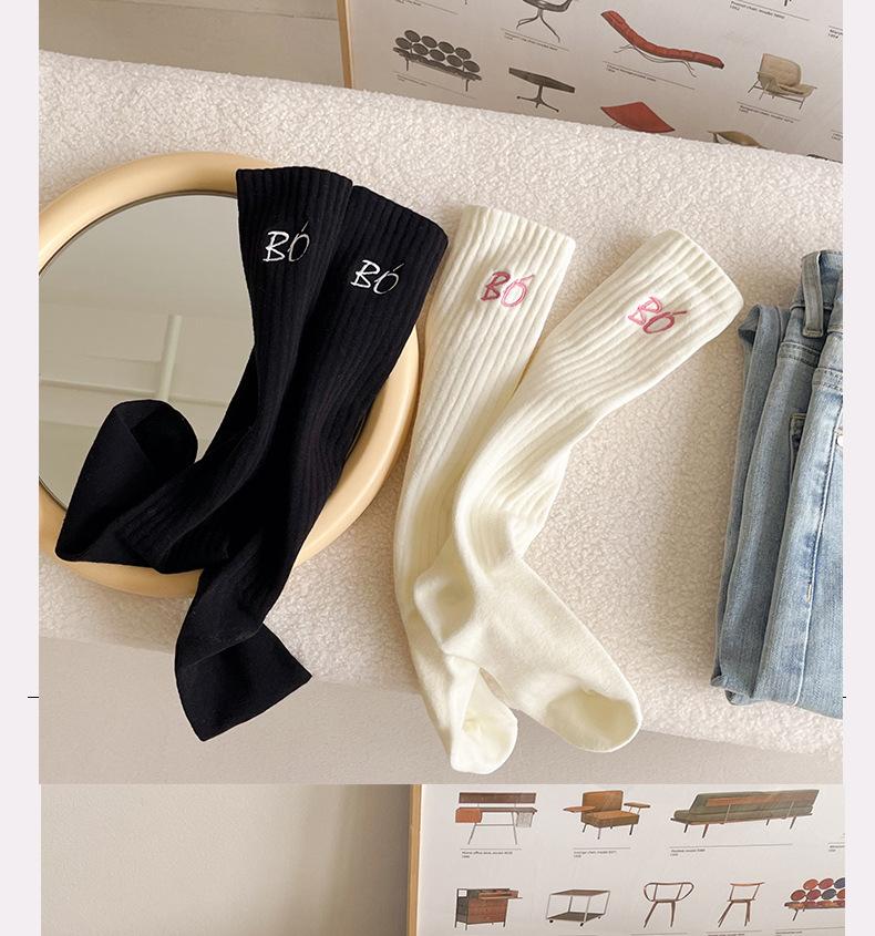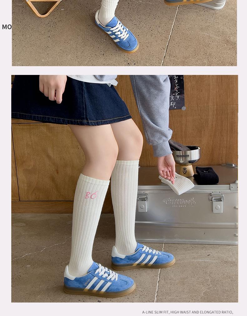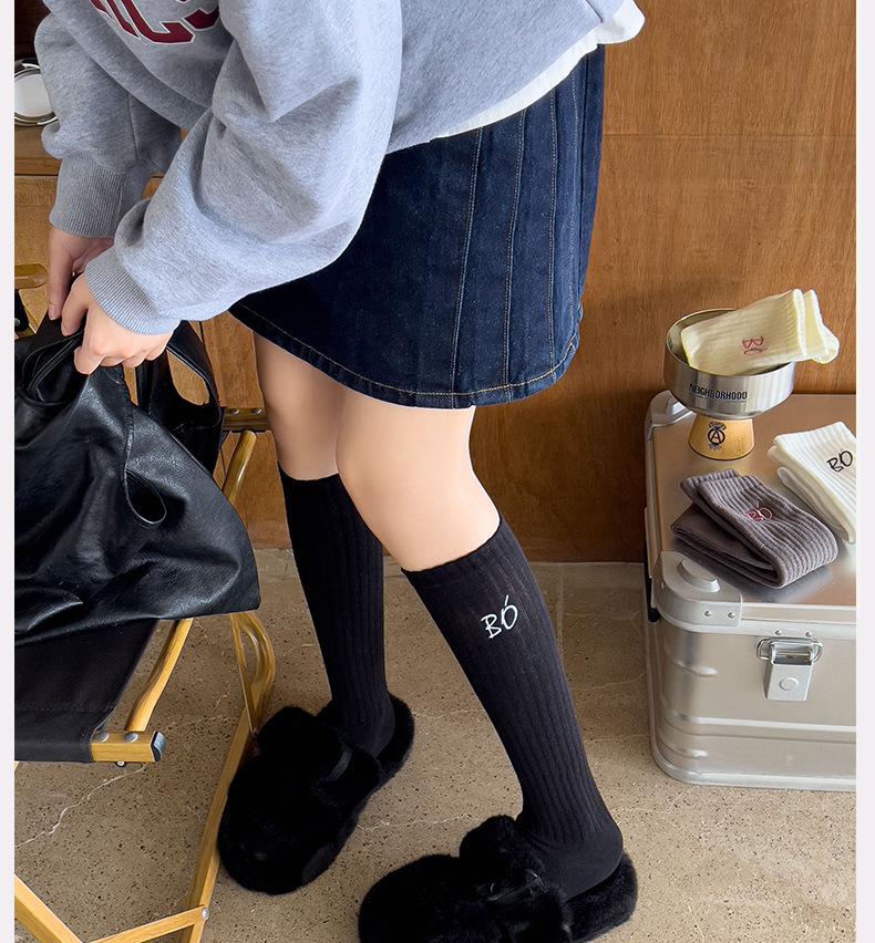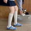 Calcetines blancos de pantorrilla JK para mujer, de algodón a rayas negras, para primavera y otoño, medias marrones y calcetines grises hasta la rodilla.