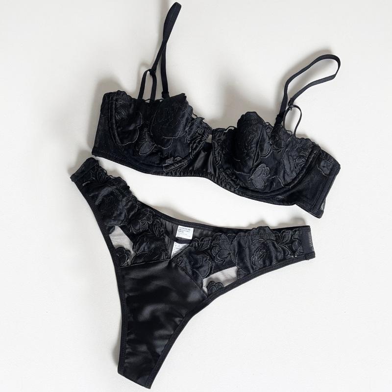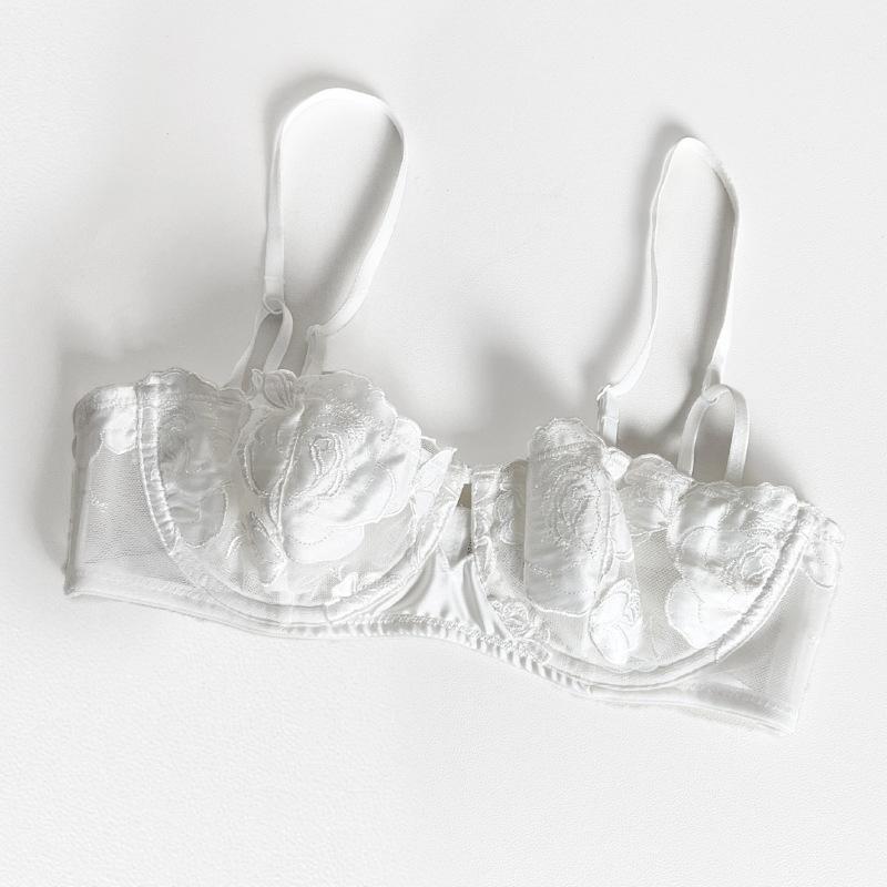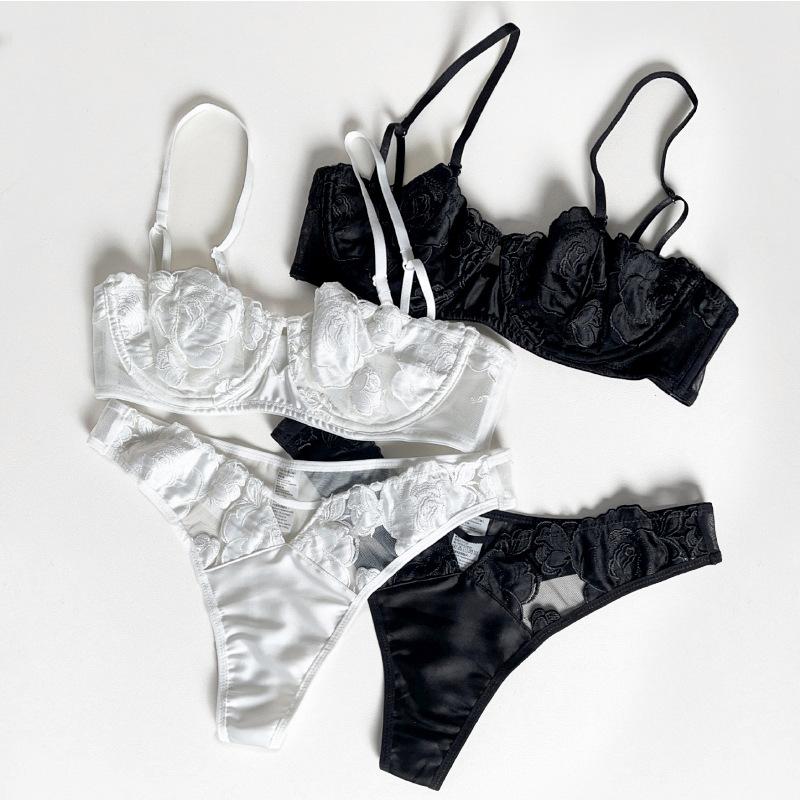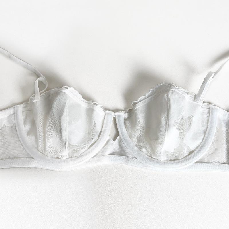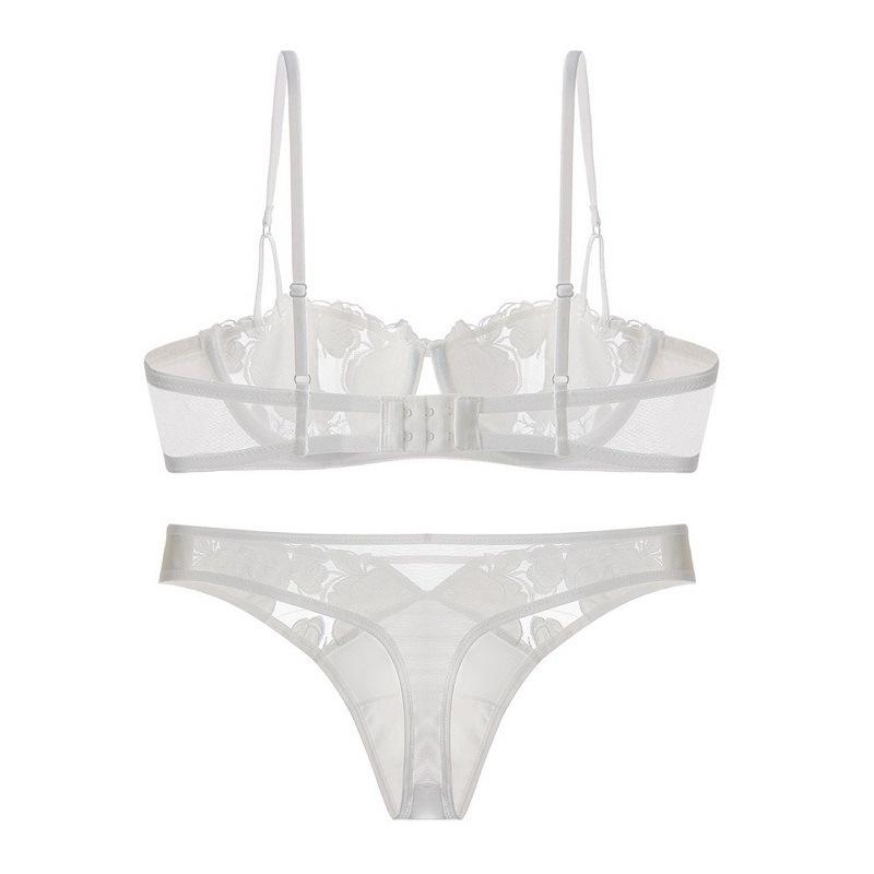 Lencería sexy transfronteriza de verano, lencería bordada de malla con perspectiva ultrafina, conjunto de sujetador antiflacidez pequeño con pecho grande |