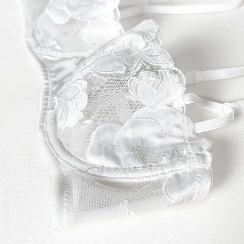 Ropa interior de encaje francés, perspectiva ultrafina, flocado, malla estampada, ropa interior sexy, sujetador de lazo sexy para niña |