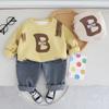 Traje para niños Primavera y otoño 2024 Nuevo conjunto de dos piezas de manga larga de estilo occidental de moda para 3 niños Ropa casual para niños de 6 años