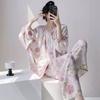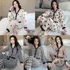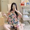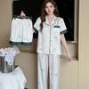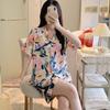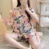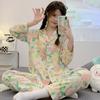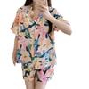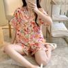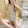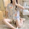 Pijamas populares de algodón y seda para mujer de primavera y verano Nuevo conjunto de dos piezas de cárdigan de manga corta Estampado de dibujos animados Talla grande Ropa para el hogar Transpirable