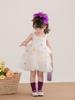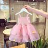 Vestido de Princesa para Niñas Verano Jacquard Tridimensional Arcoíris Pompones de Piel Tirantes Tutú Malla Vestido de Hada para Bebé