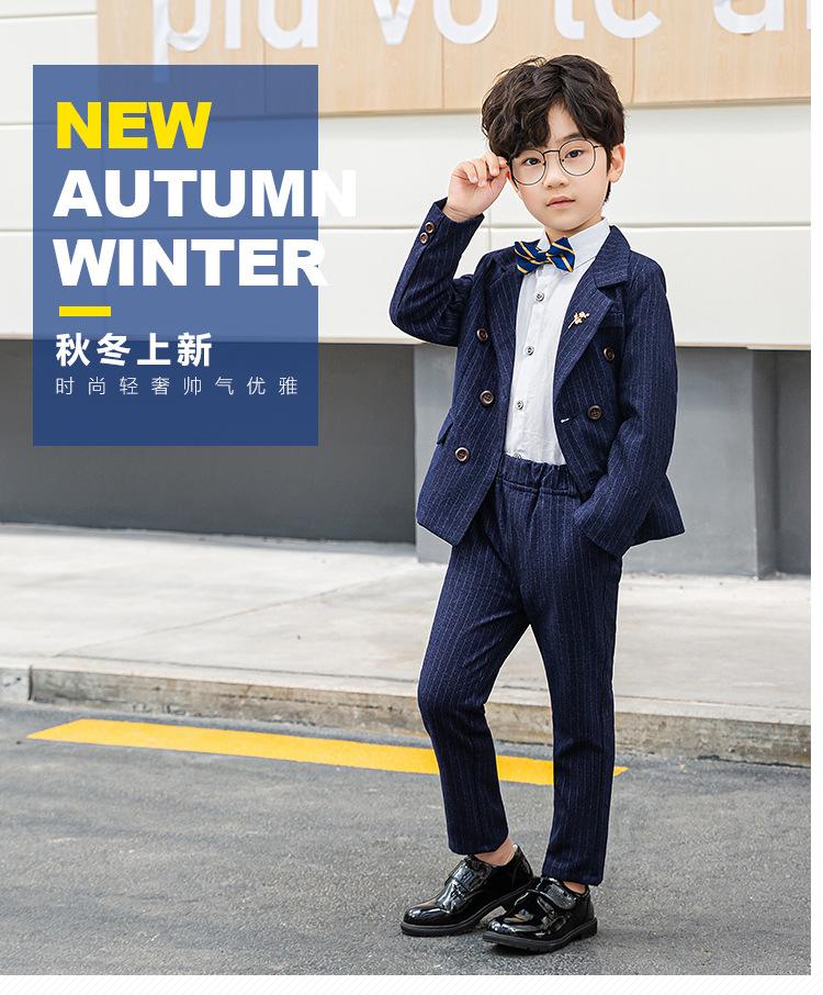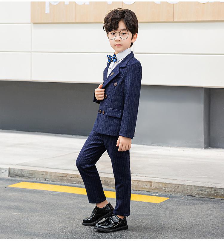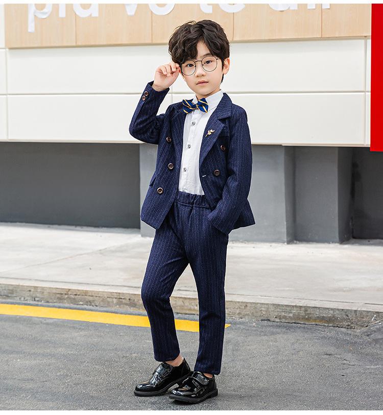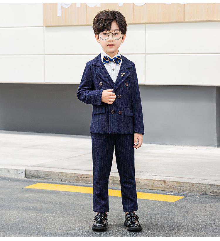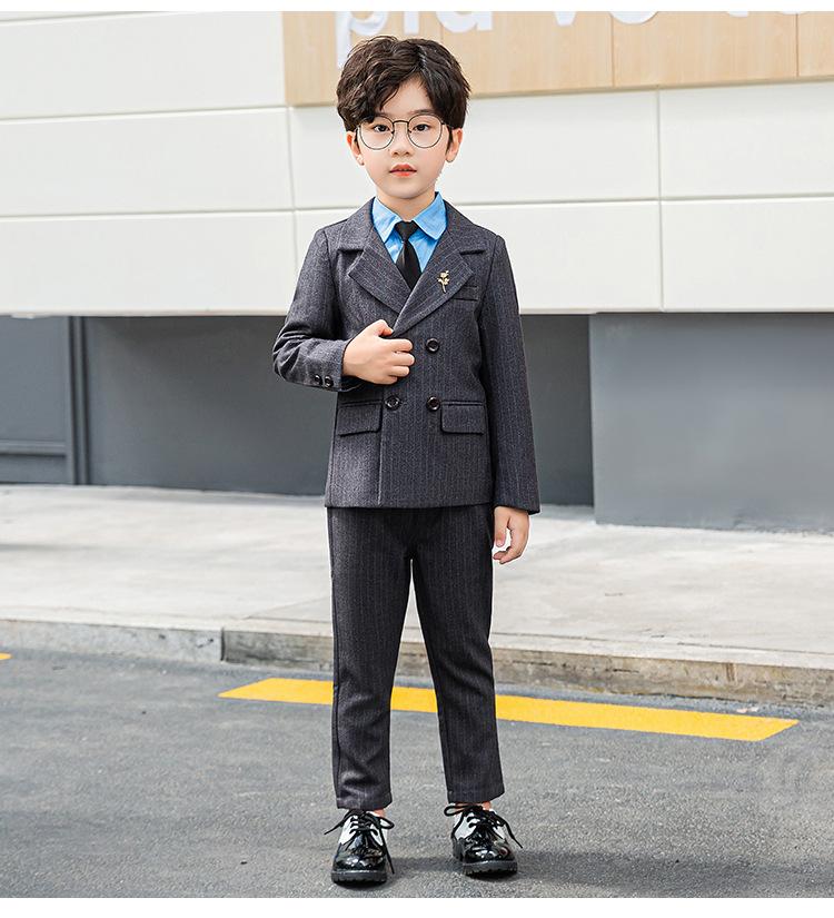 Traje Vestido para Niños Primavera y Otoño Nuevo Caballero Británico Rayado Trajecito Traje Niño Anfitrión Recitación Ropa para Actuación