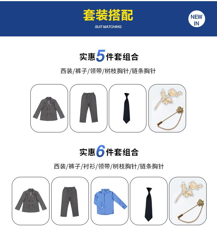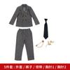 Gray jacket pants blue shirt (send bow tie, brooch)