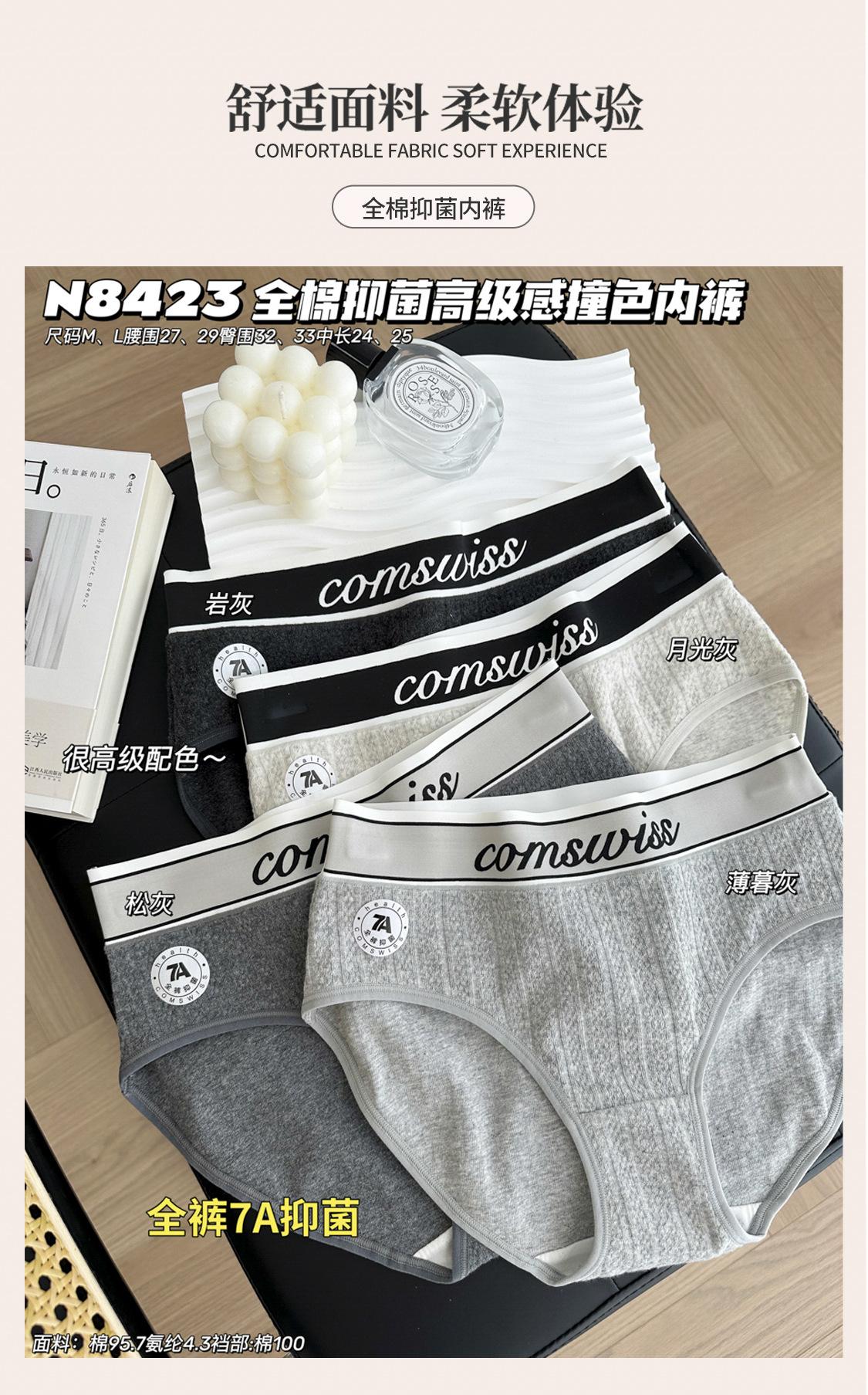 N8423 Pantalón gris de cuatro grados 7A Ropa interior femenina antibacteriana Clase A Algodón Jacquard Avena Ligeramente Cepillado Estilo Deportivo Algodón Puro