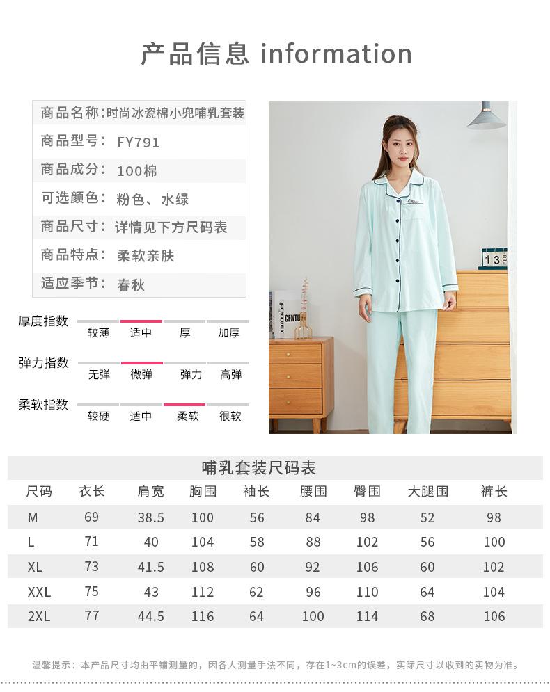 Pijama de lactancia premamá para primavera y otoño, moda, algodón porcelana de hielo, cálido, traje de lactancia premamá, bolsillo pequeño, set de lactancia