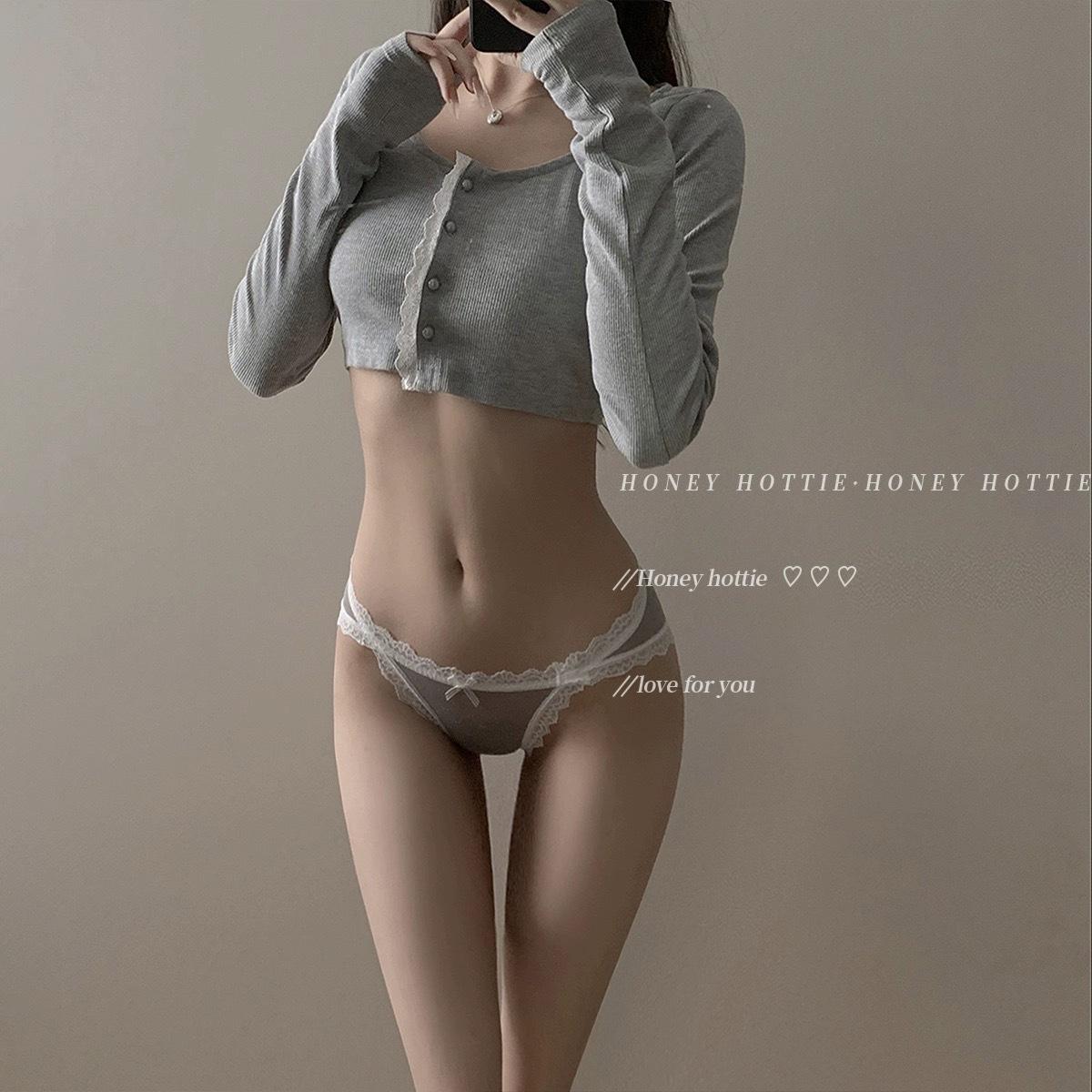 Ropa interior francesa Pure Girl, sexy, de malla con borde de encaje, transpirable, con lazo y cintura baja.