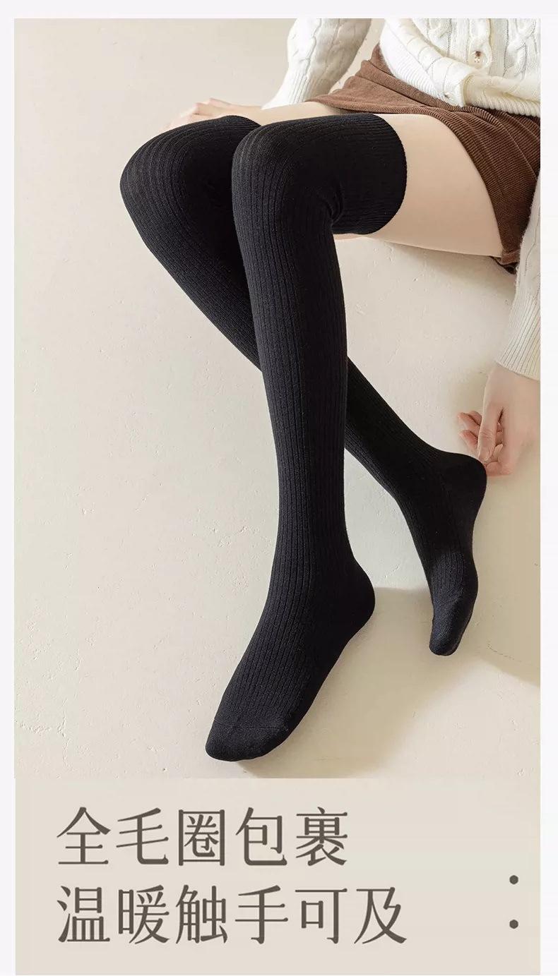 Calcetines hasta la rodilla de doble aguja, Medias para mujer, Otoño e invierno engrosados, Cálidos y antideslizantes, Rodilleras largas para invierno, Calcetines altos blancos