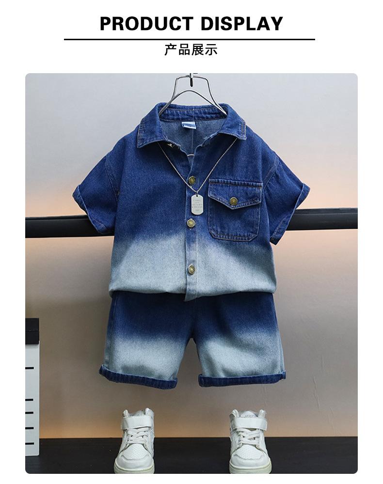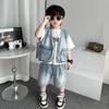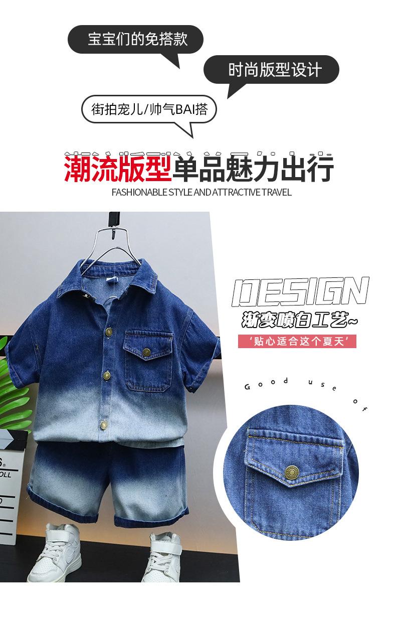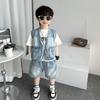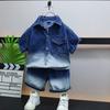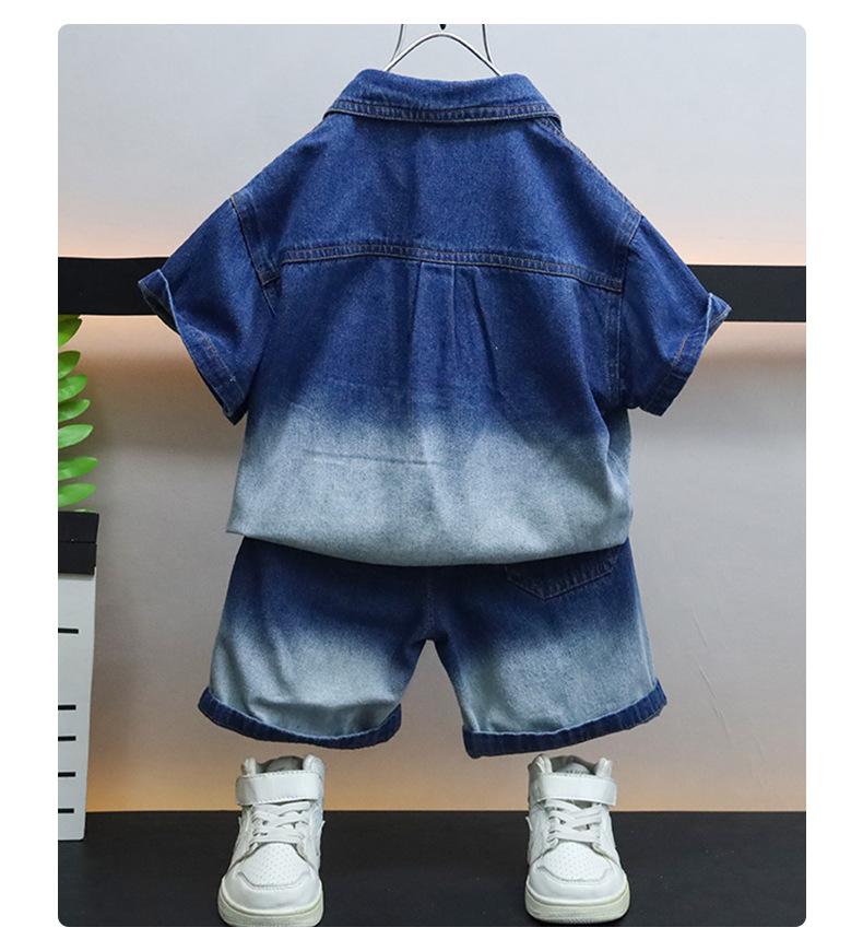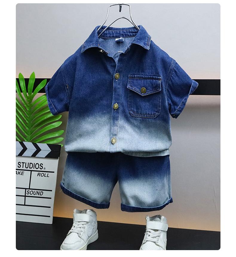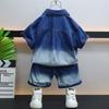 Traje de Manga Corta para Niño, Estilo Delgado de Verano, Ropa de Verano para Niños Nueva y Moderna 2025, Camisa de Mezclilla para Bebé Fresca y Guapa
