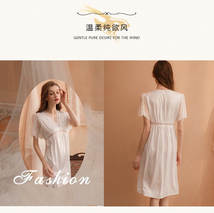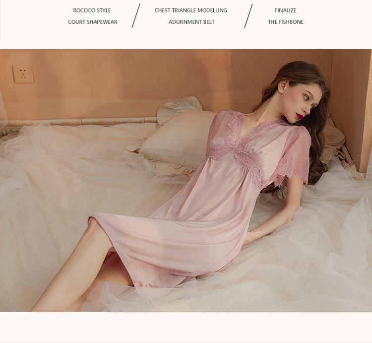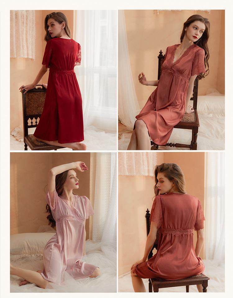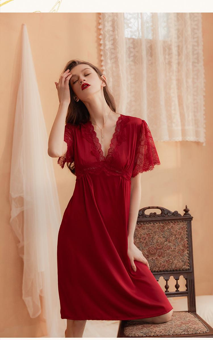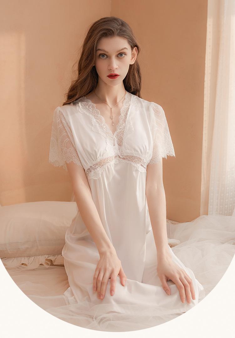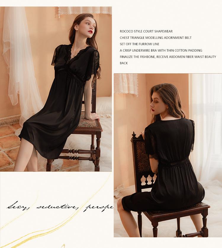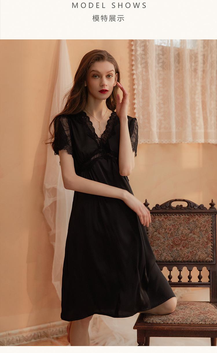 Camisón para Mujer en Verano con Almohadillas para el Busto, Vestido Sexy con Encaje Calado, Estilo Pure Lust Seda de Hielo Sensación Fresca Escote en V Profundo Falda Midi