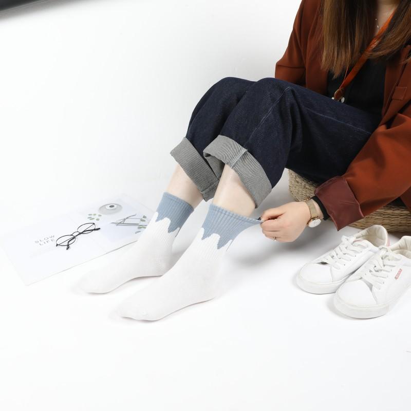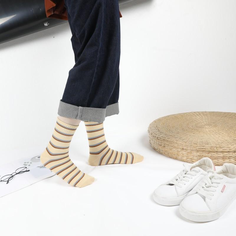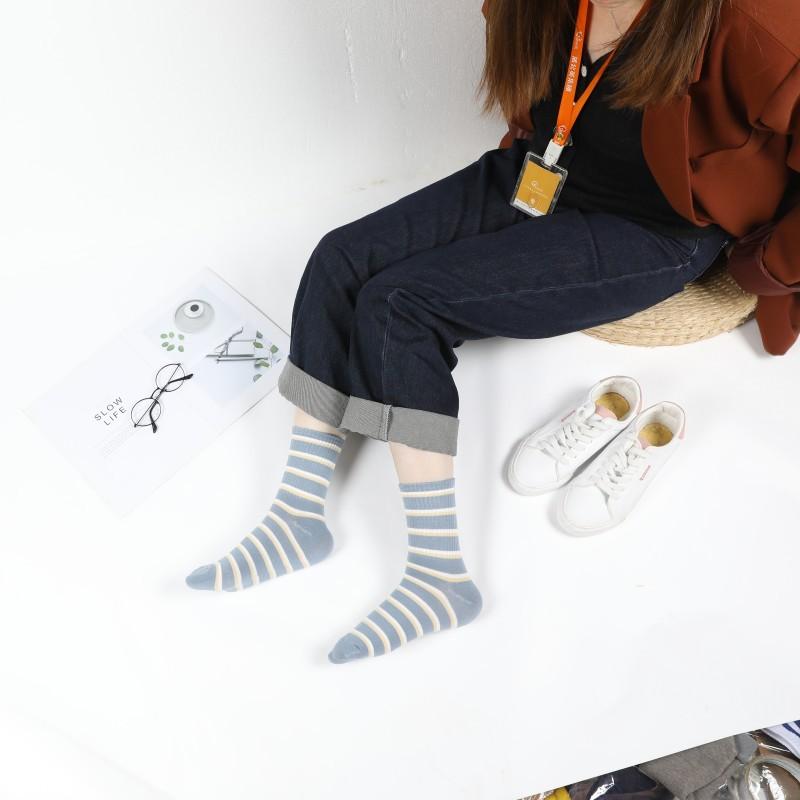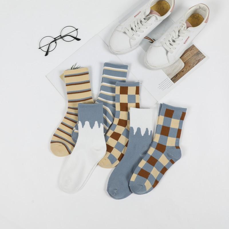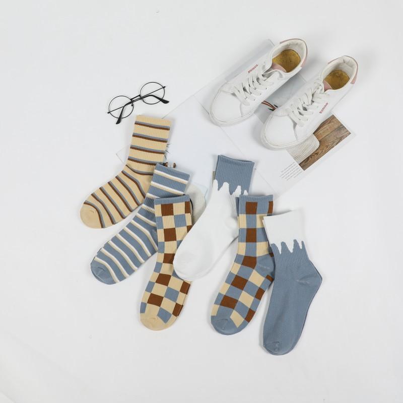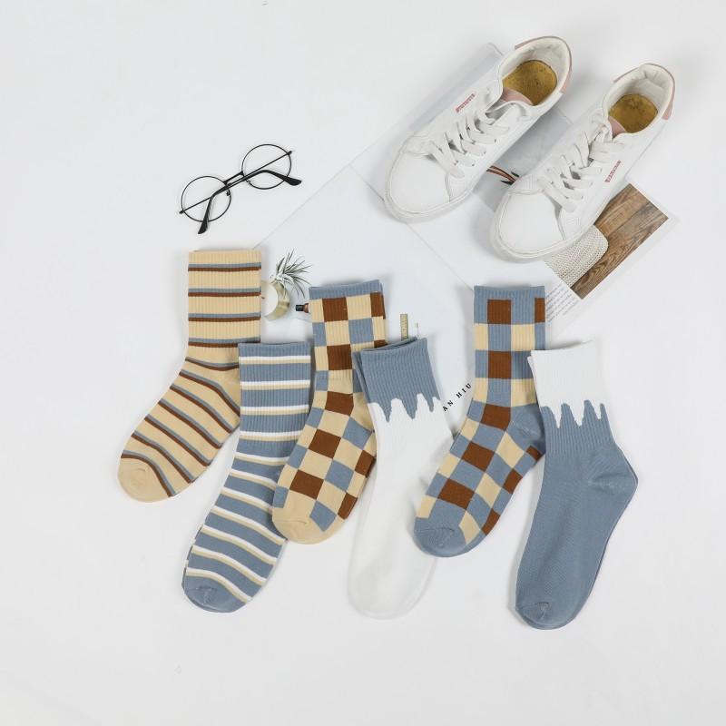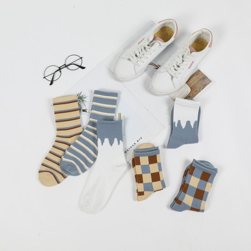 Calcetines de mujer de primavera y otoño, calcetines de tubo a cuadros de rayas azul claro, calcetines bonitos de moda japonesa, al por mayor
