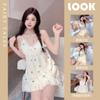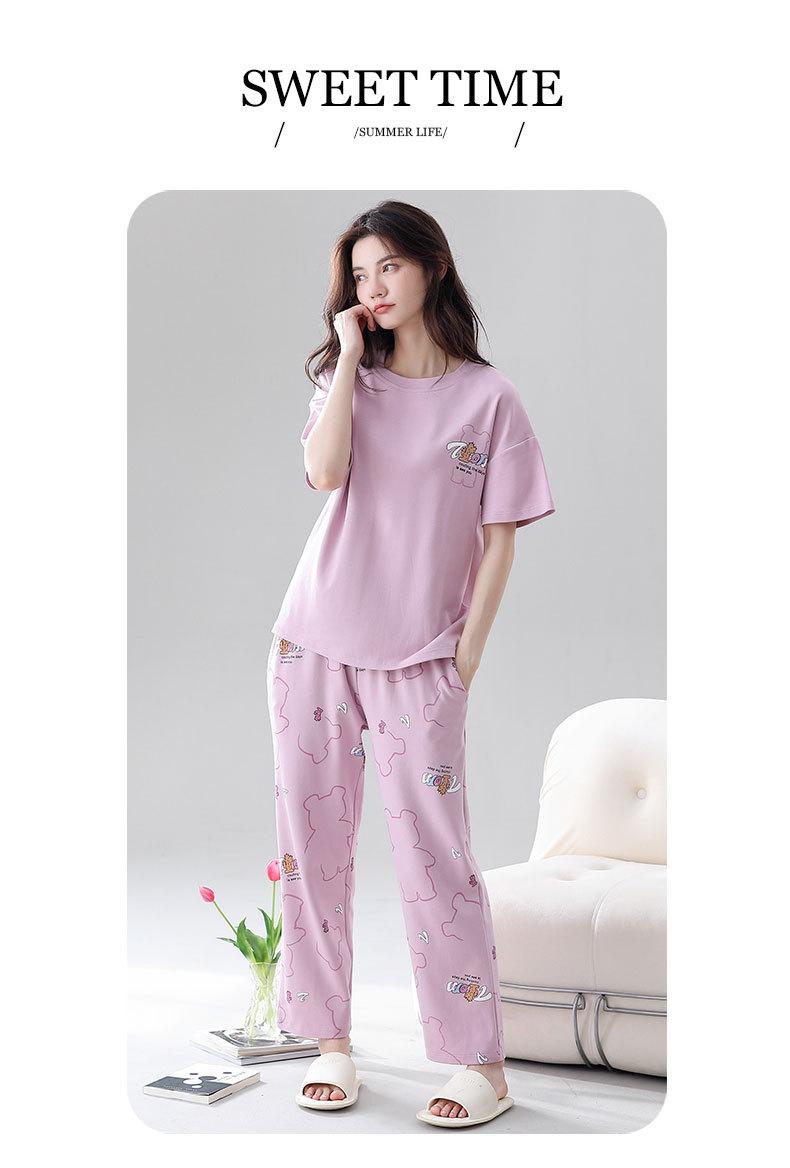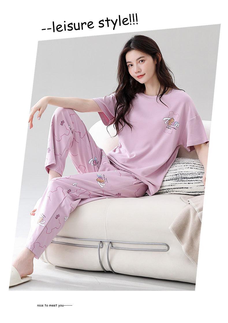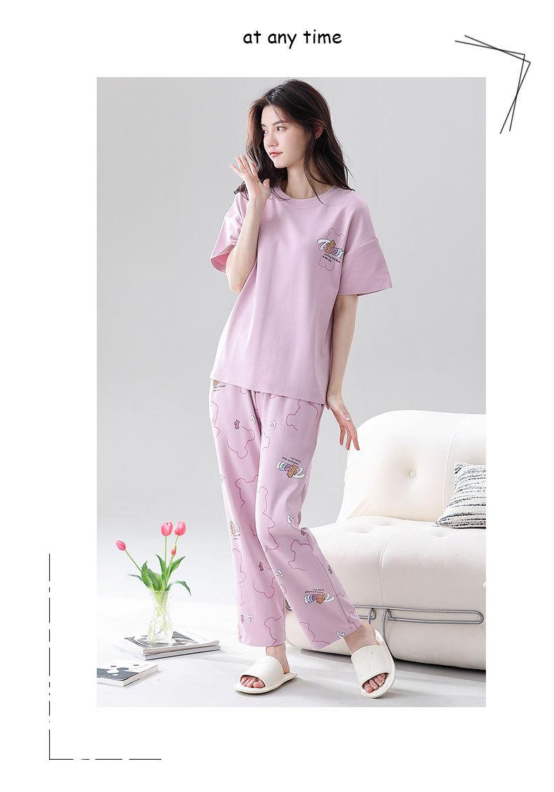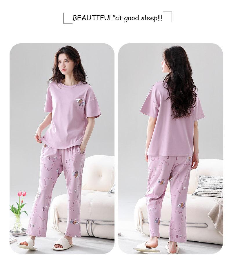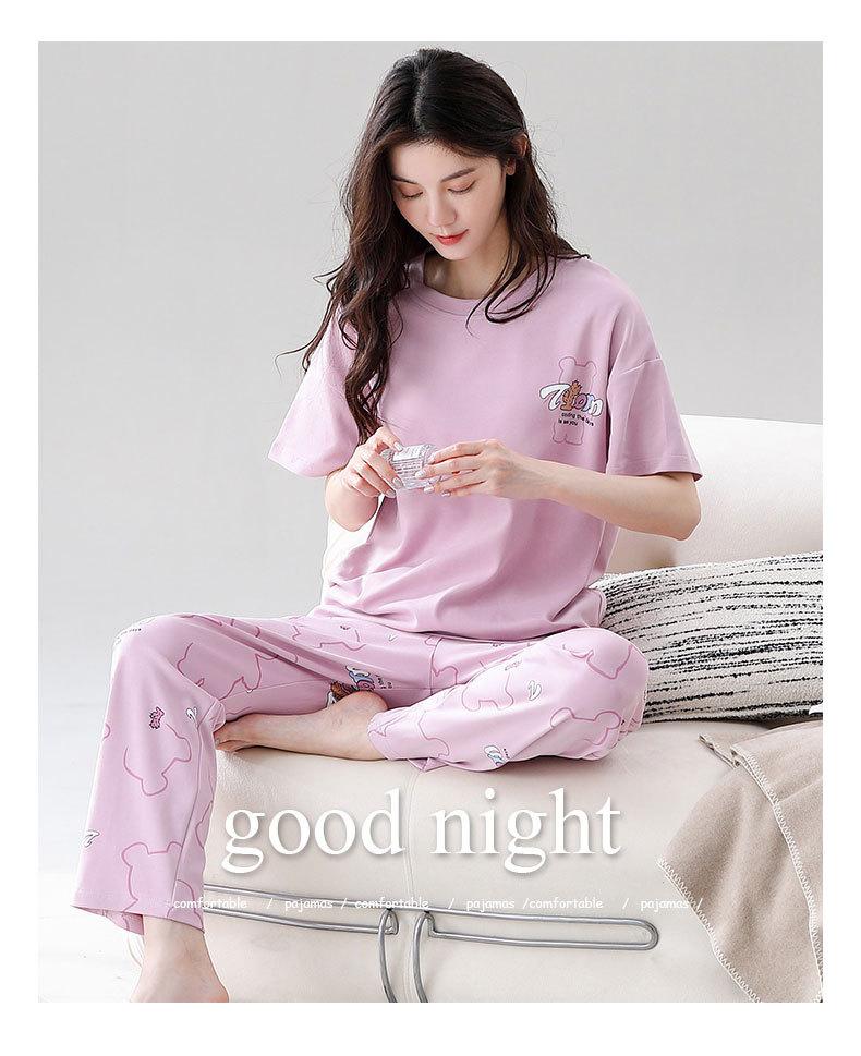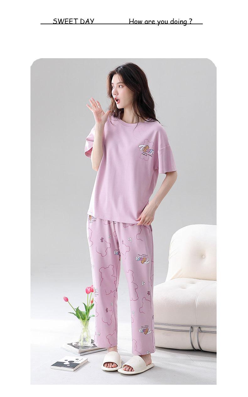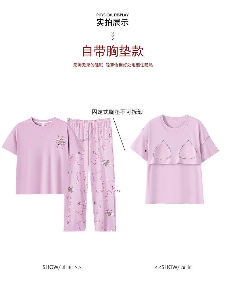 Pijama de algodón fino de verano para mujer, pantalones de manga corta con almohadilla para el pecho, traje de verano fino informal para mujer, ropa de casa