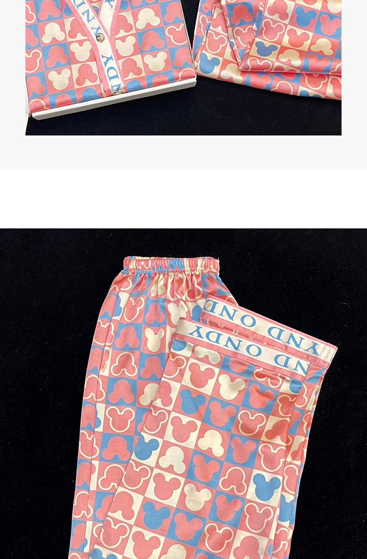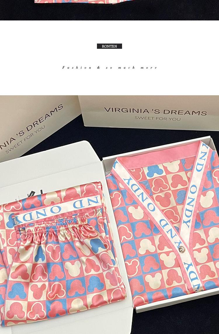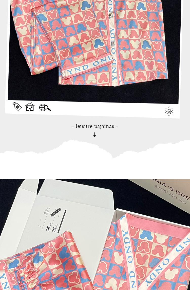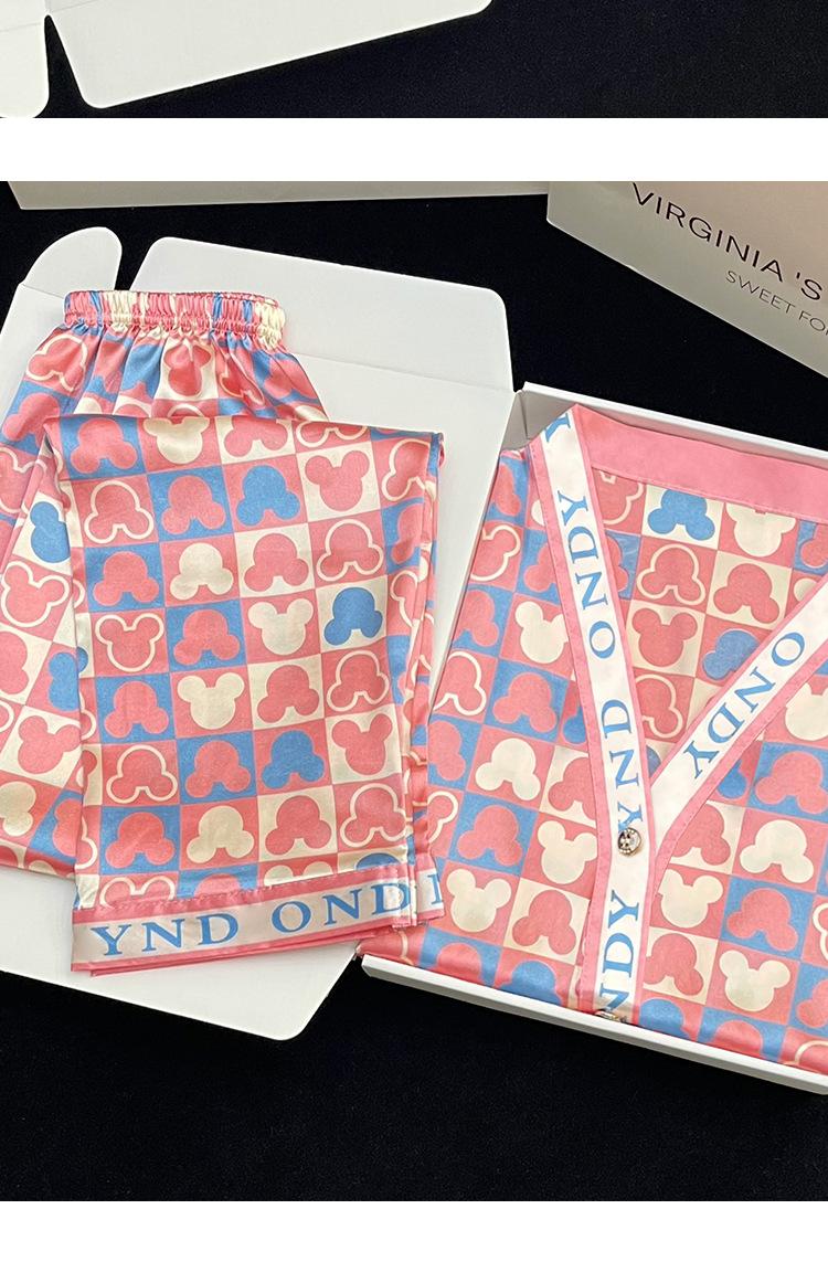 Pantalones Cortos de Verano Lindos de Manga Corta, Pijama Suelto de Seda de Imitación de Dibujos Animados, Pijama Fino para Mujer, Conjunto de Dos Piezas para el Hogar al por Mayor