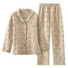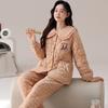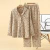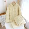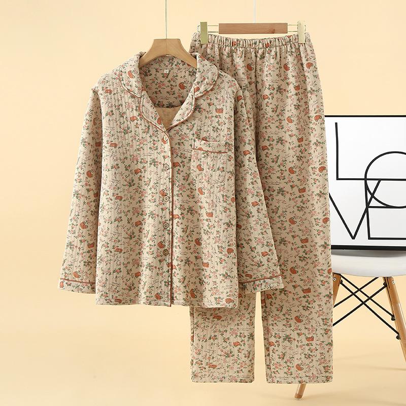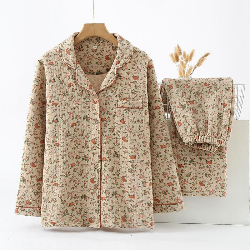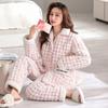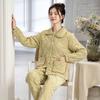 Pijama de algodón aire para mujer otoño e invierno cálido acolchado ropa para estar por casa coreano floral solapa tres capas grueso ropa para el hogar