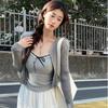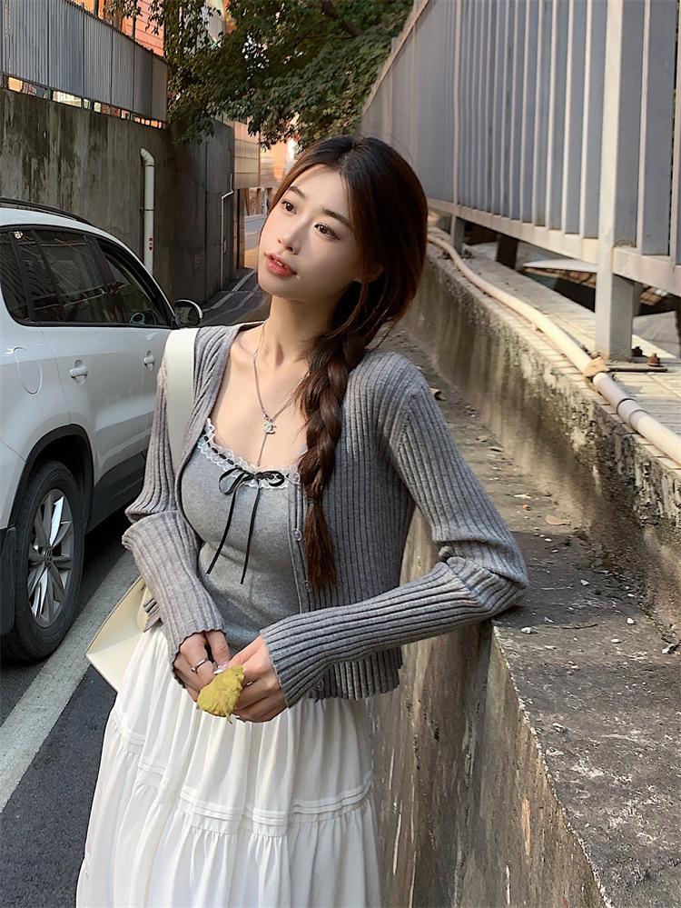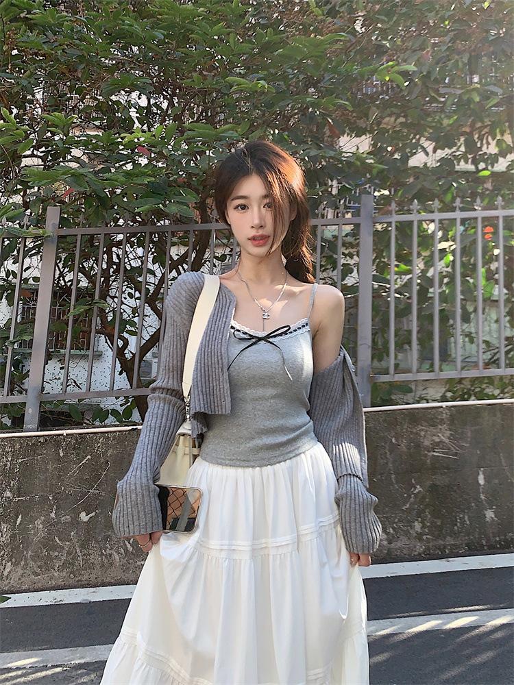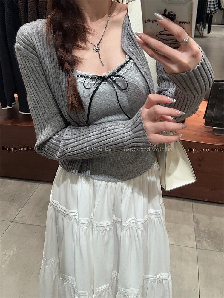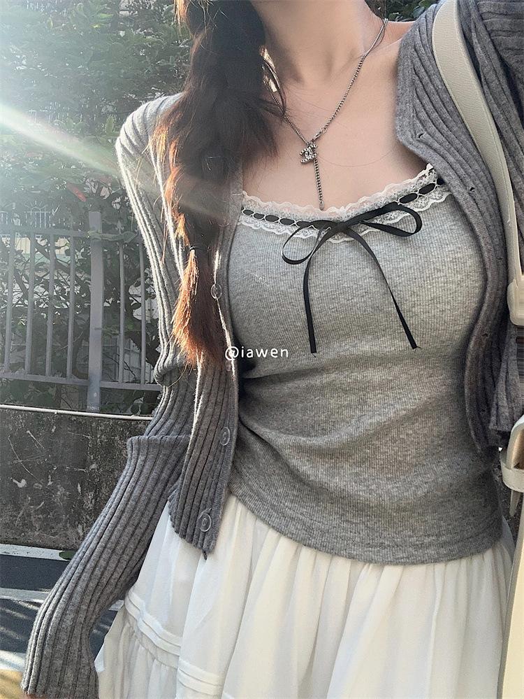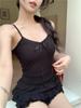 Antinglu Girl Deseo Puro Estilo Ins Camisola Encaje Dulce Versátil Todo en Uno Top con Almohadilla de Busto Fija para Mujer