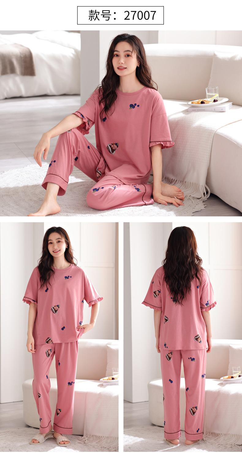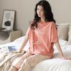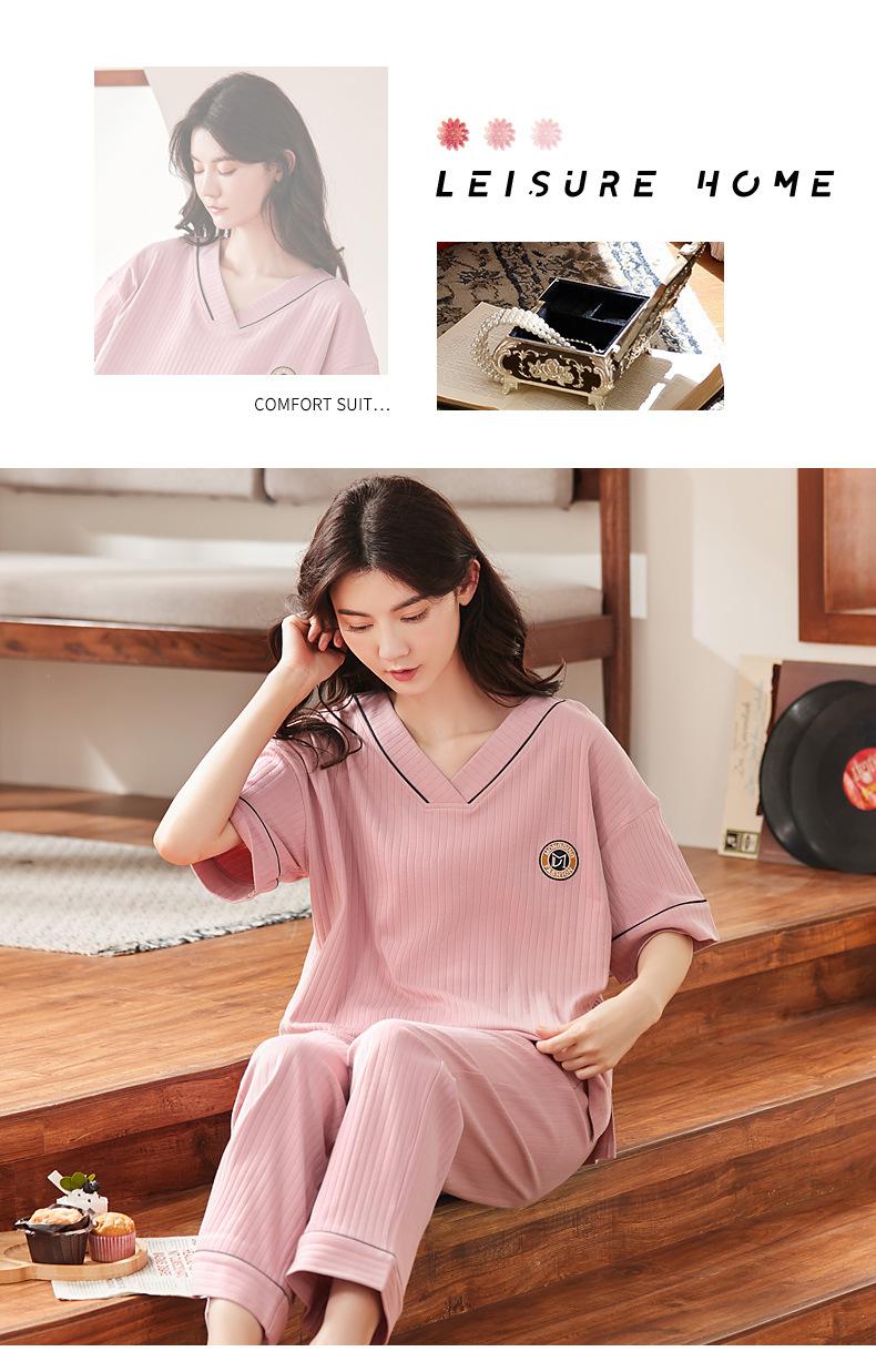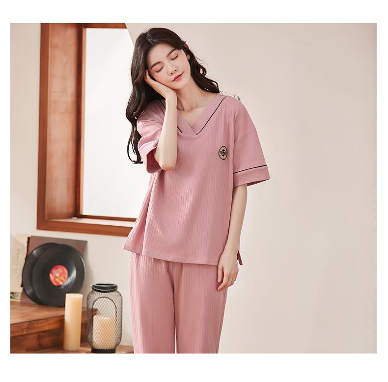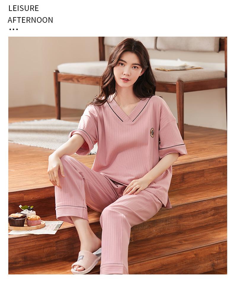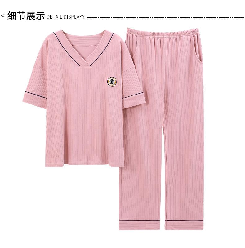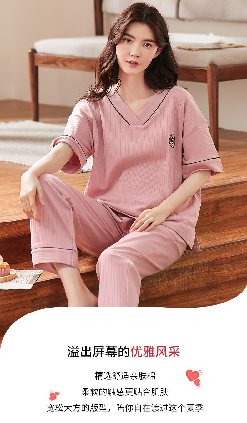 Pijama de verano de algodón puro para mujer, pantalones de manga corta, cuello redondo holgado, estilo holgado, ropa de casa, ropa exterior, traje fino