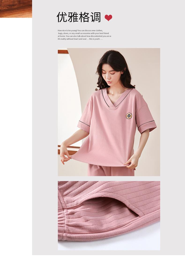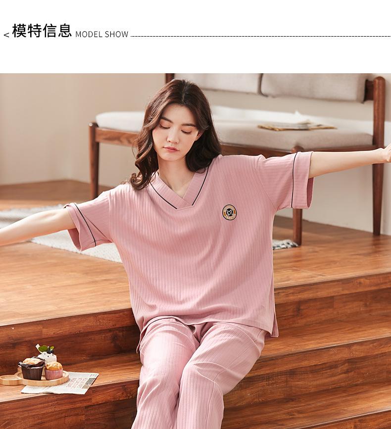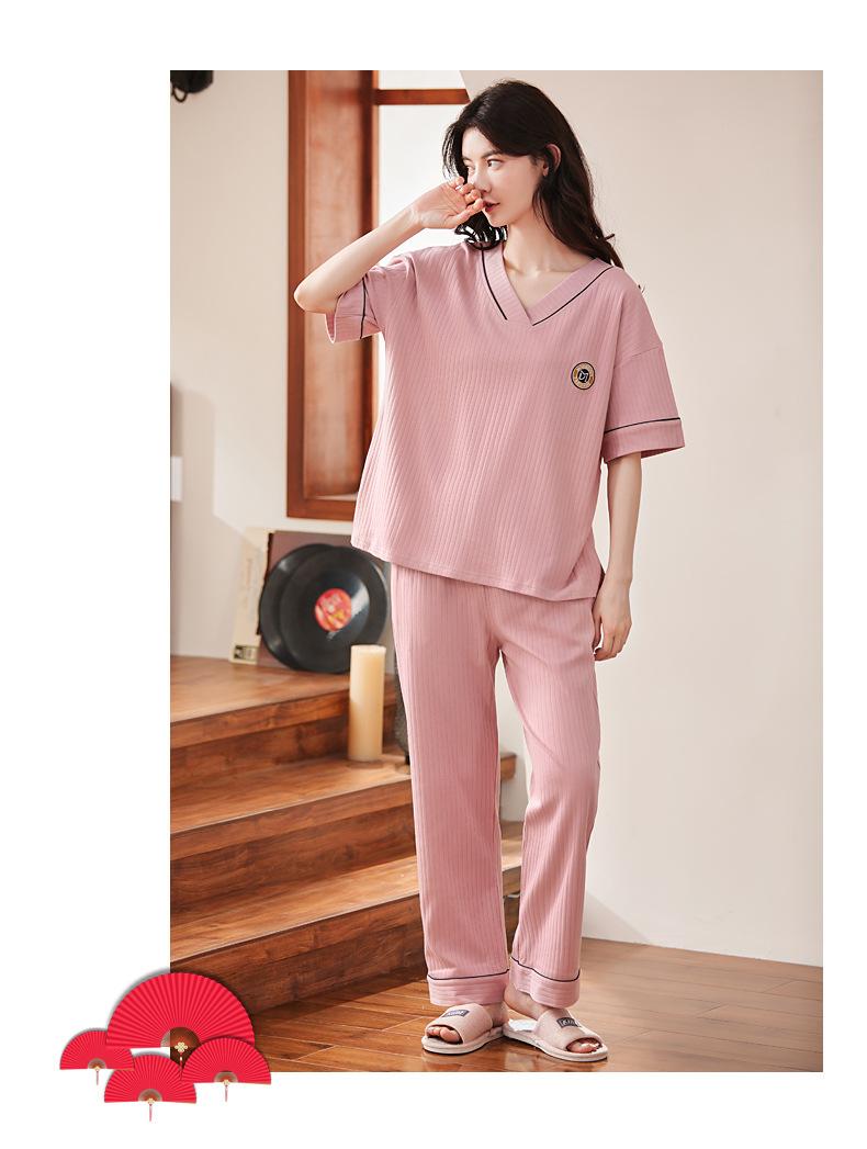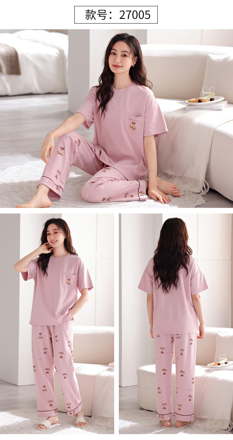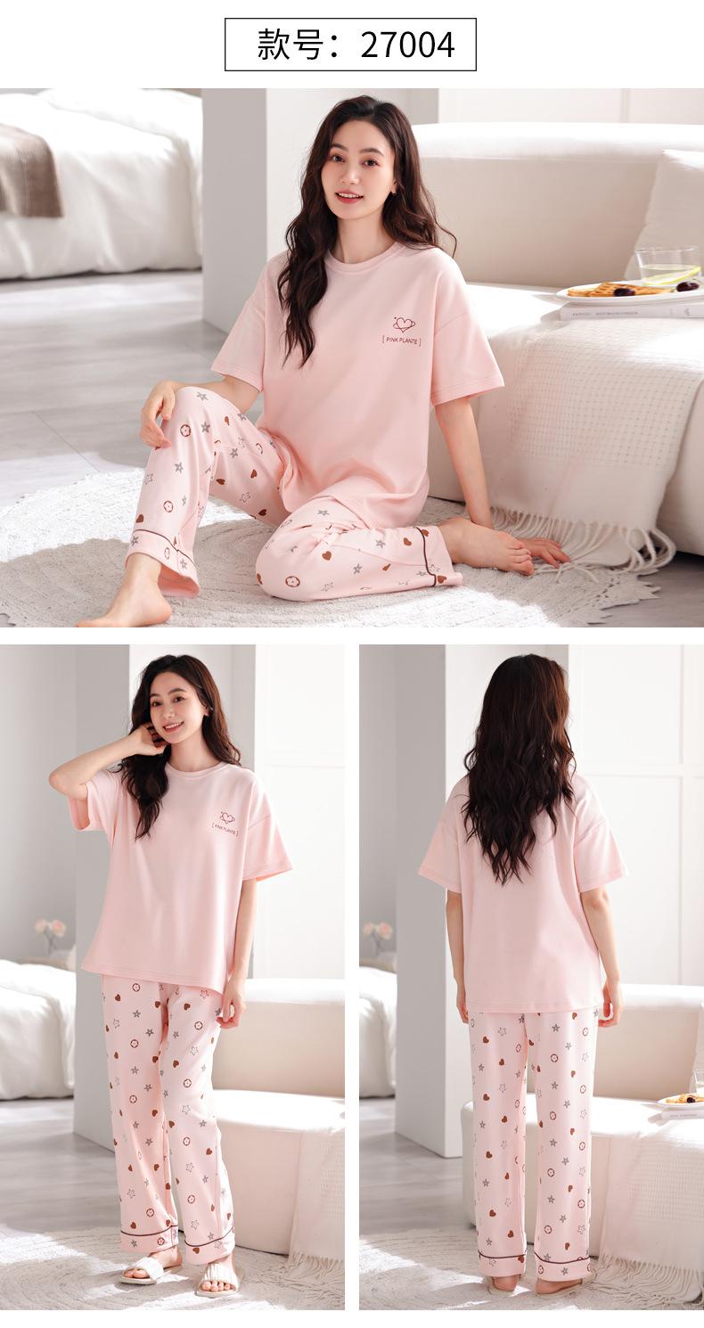 Pijama de verano de algodón puro para mujer, pantalones de manga corta, cuello redondo holgado, estilo holgado, ropa de casa, ropa exterior, traje fino
