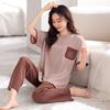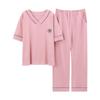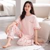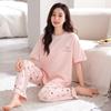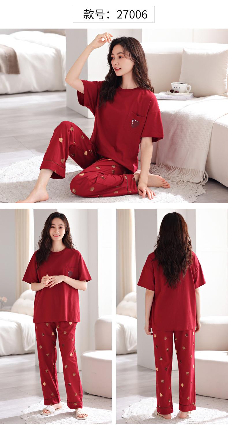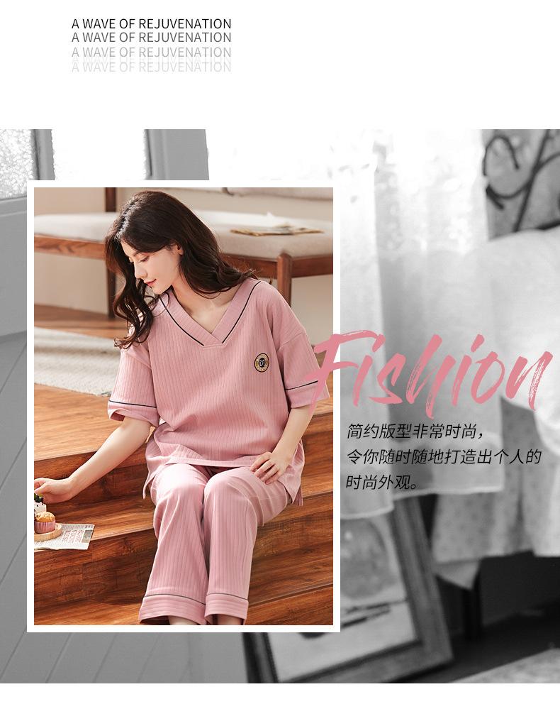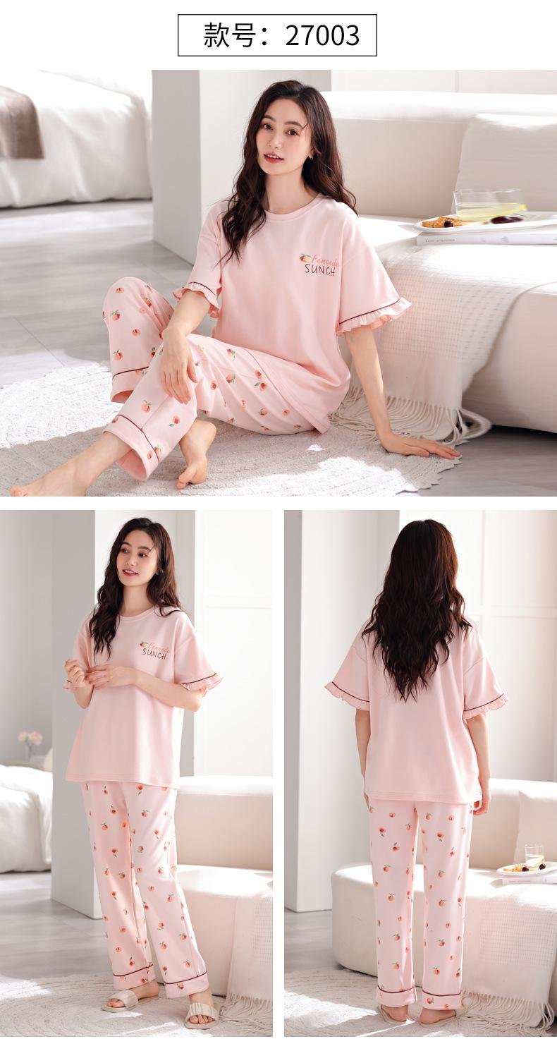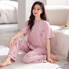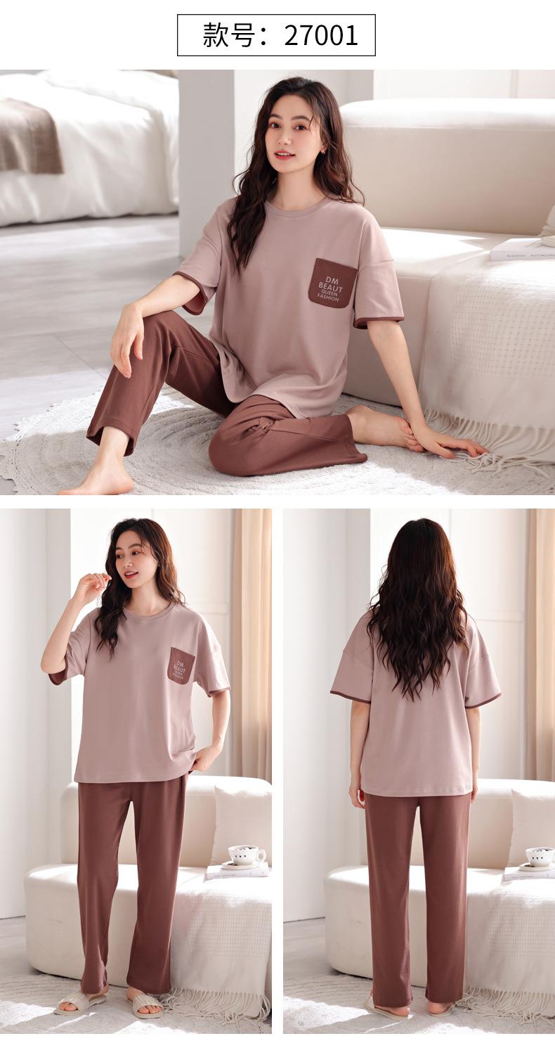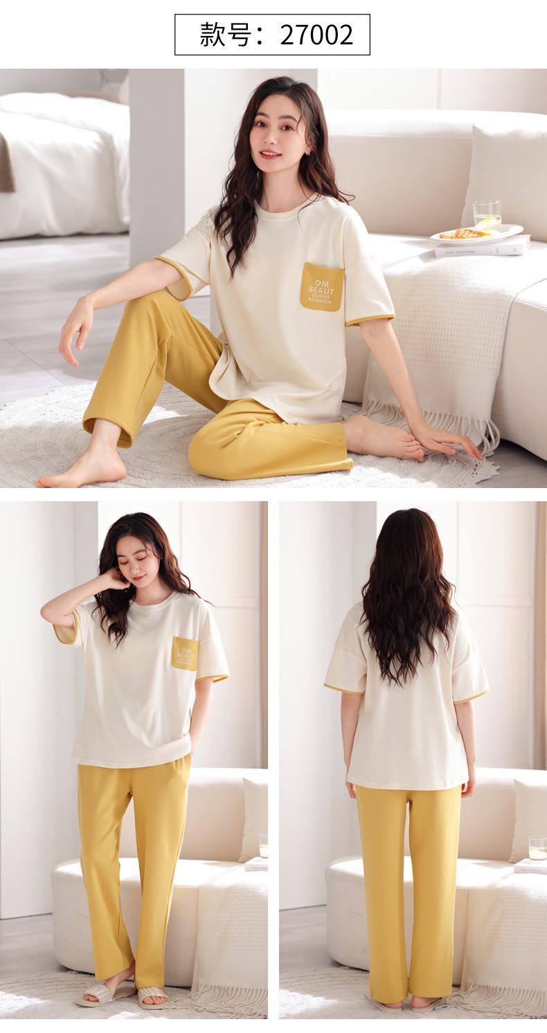 Pijama de verano de algodón puro para mujer, pantalones de manga corta, cuello redondo holgado, estilo holgado, ropa de casa, ropa exterior, traje fino