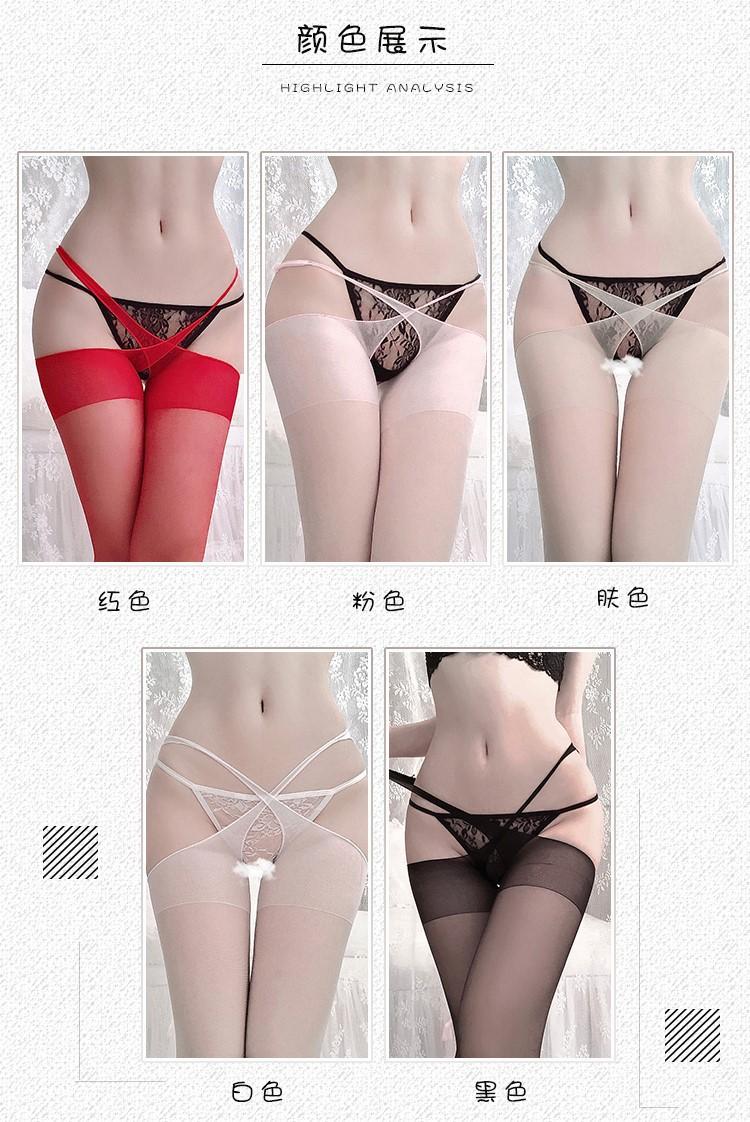 Medias sexys de entrepierna abierta con tentación cruzada, piernas sexys, medias de seda negra con cuatro lados huecos y libres