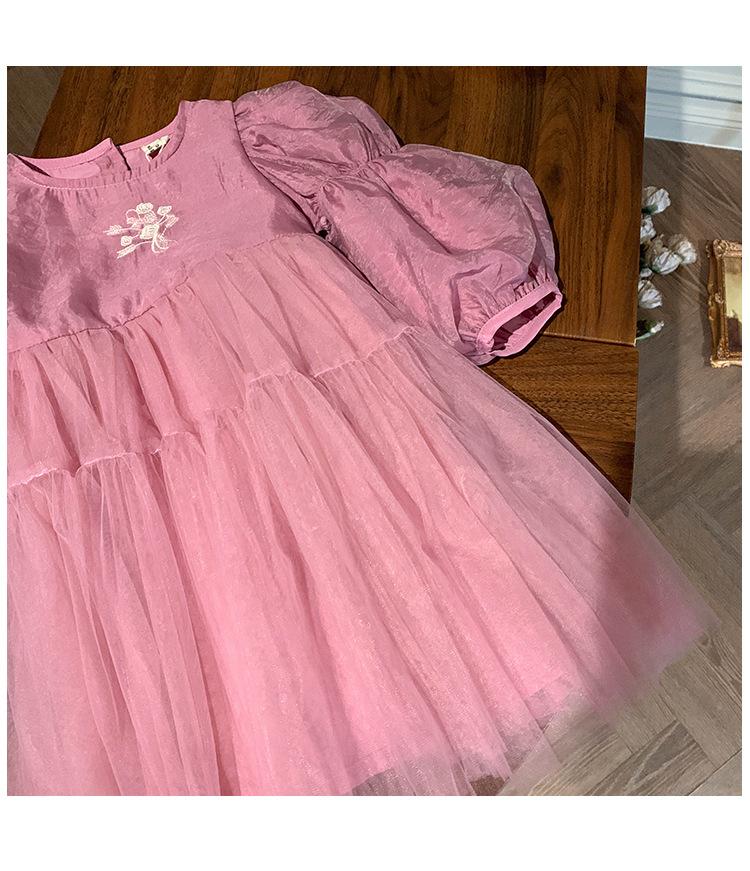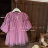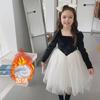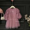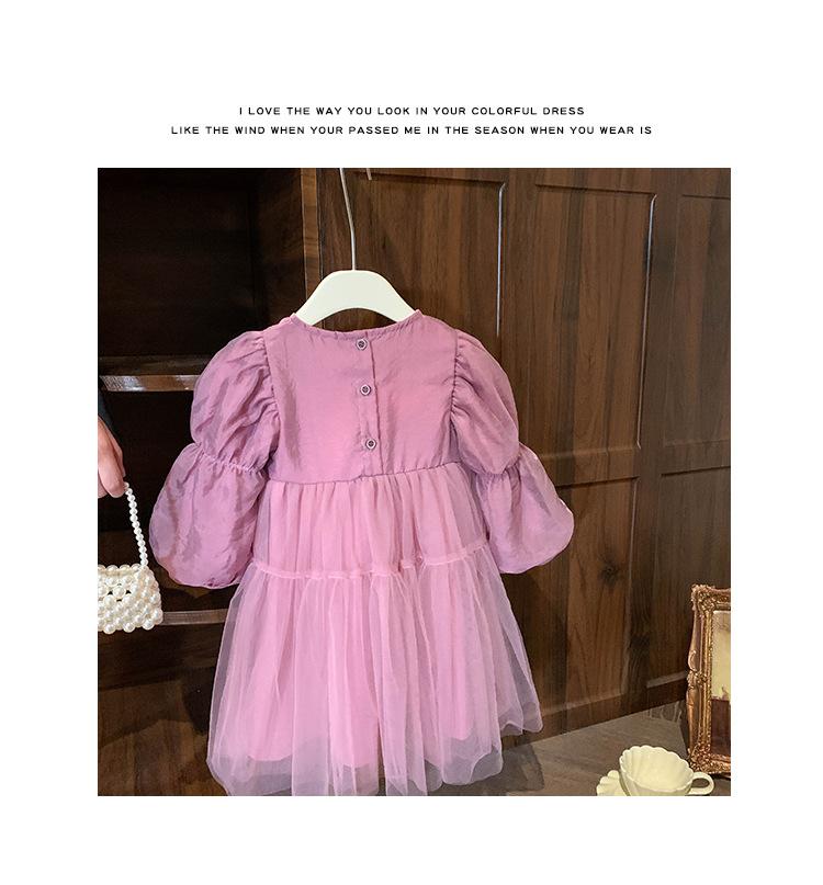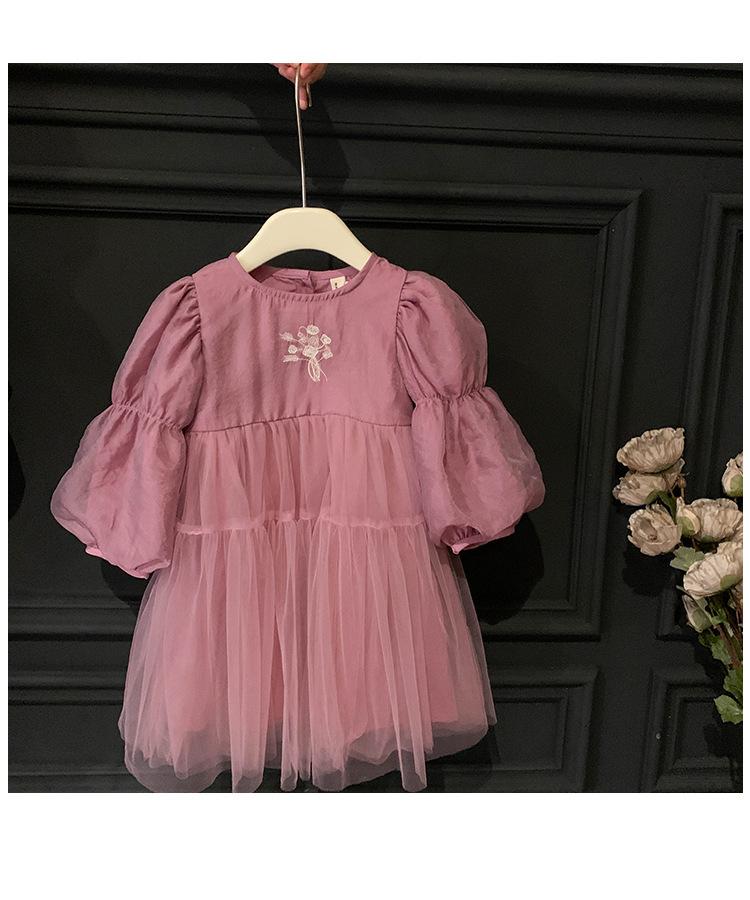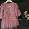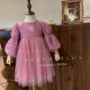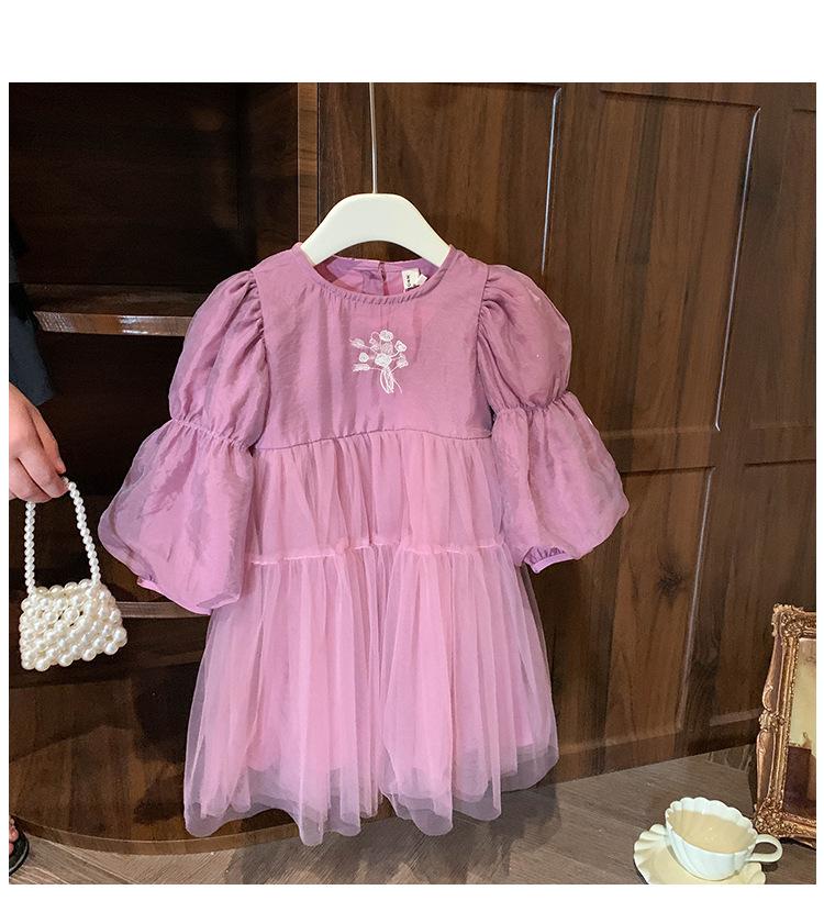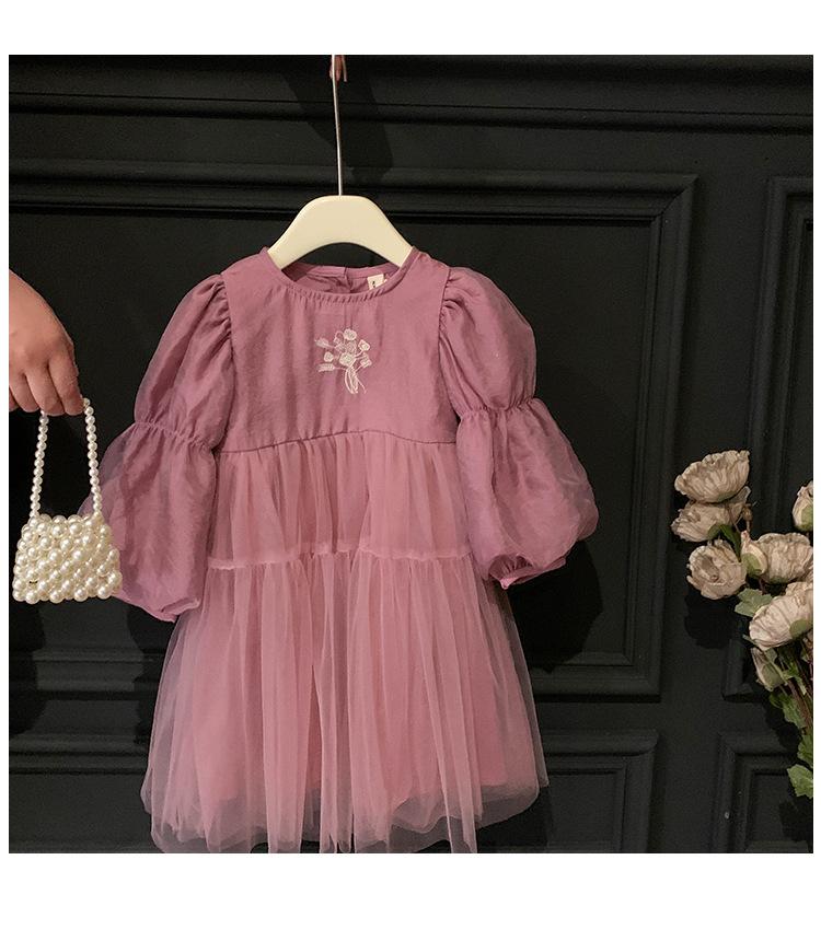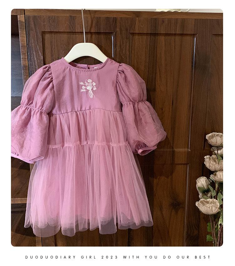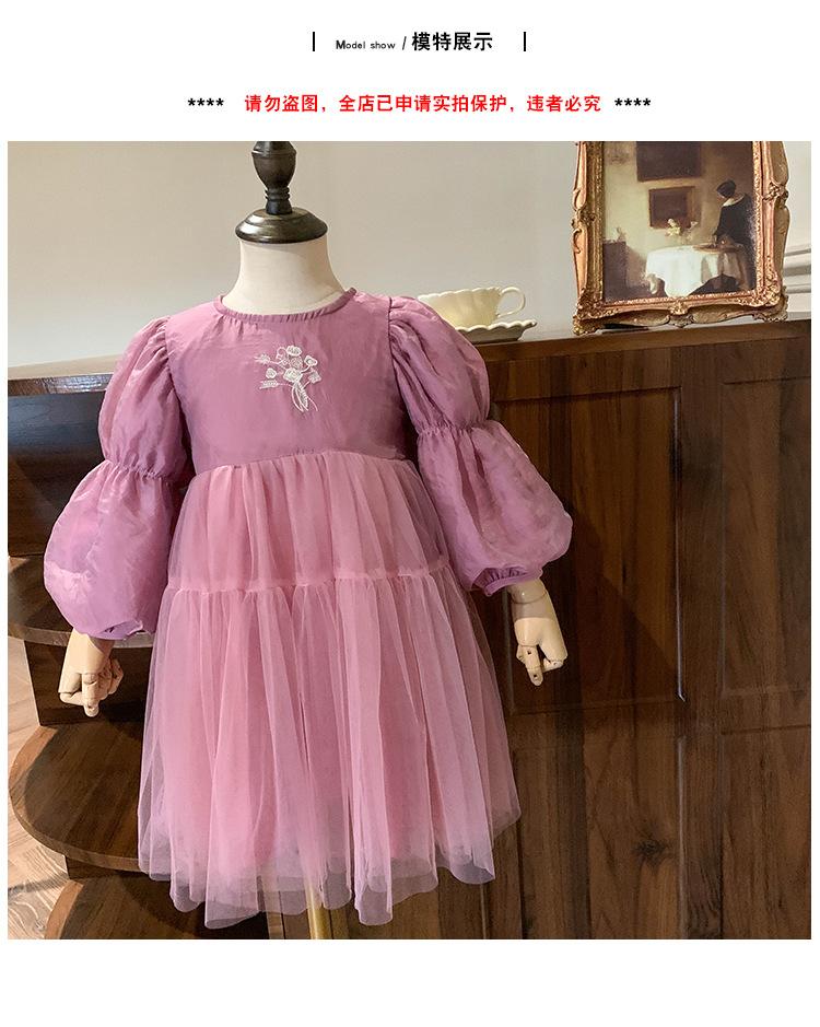 Vestido para niña, otoño 2023, recién llegado, estilo occidental, con cuello de flores, manga larga, hilo abullonado, falda fina
