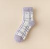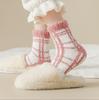 Calcetines de Casa Gruesos de Invierno para Mujer de Terciopelo Coral a Cuadros, Calcetines Cálidos para Mujer hasta la Mitad de la Pantorrilla al por Mayor